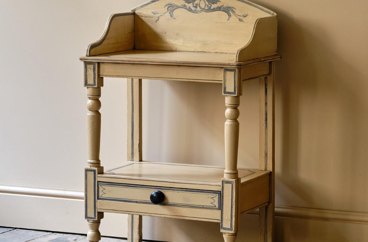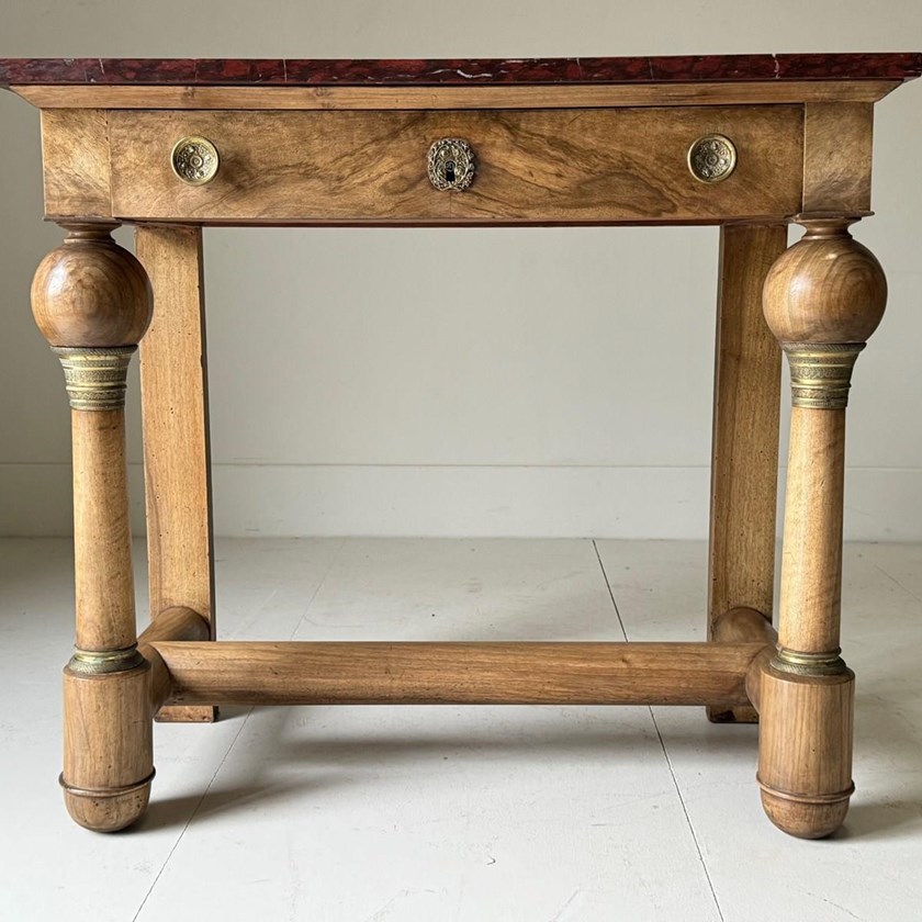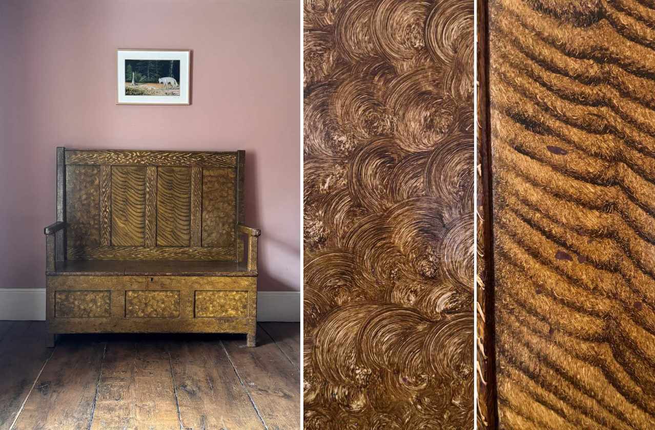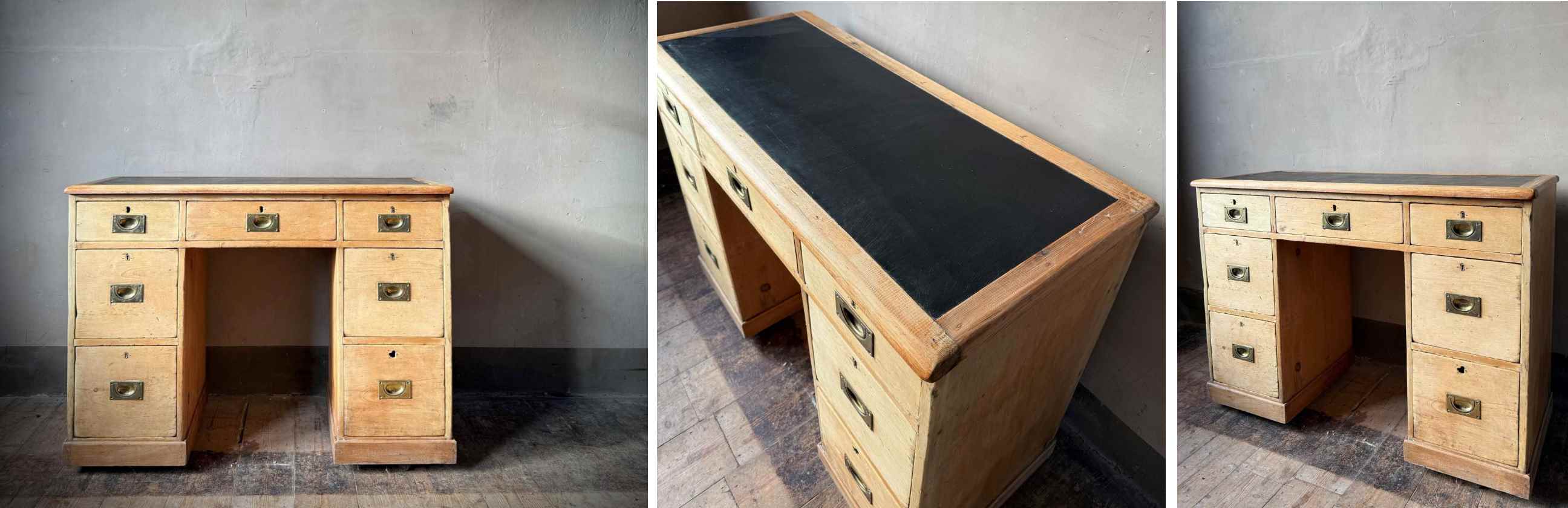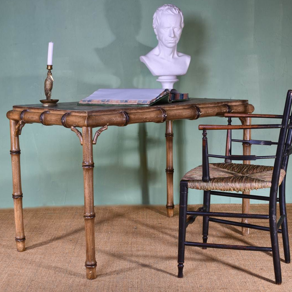 This delightful circa 1930s painted faux bamboo table or desk, has an unexpected top. Click through to discover.