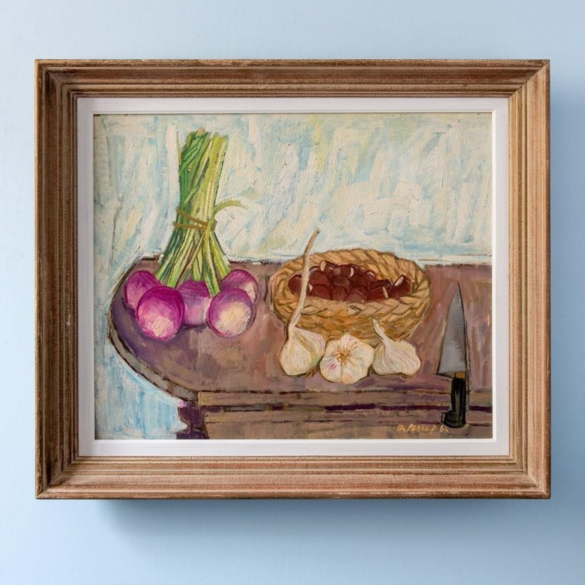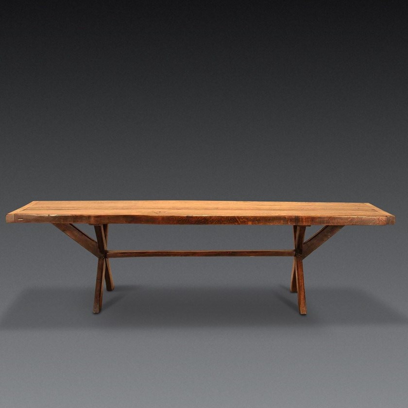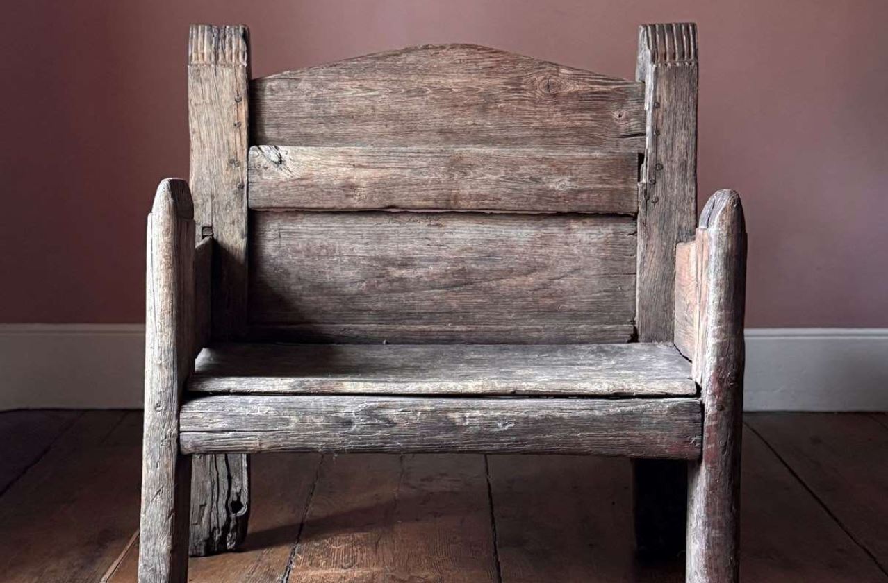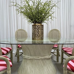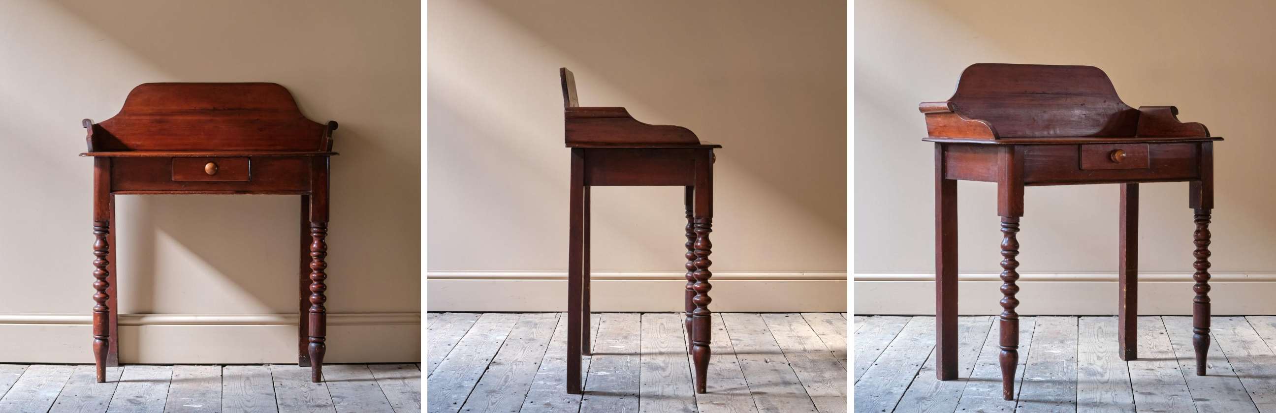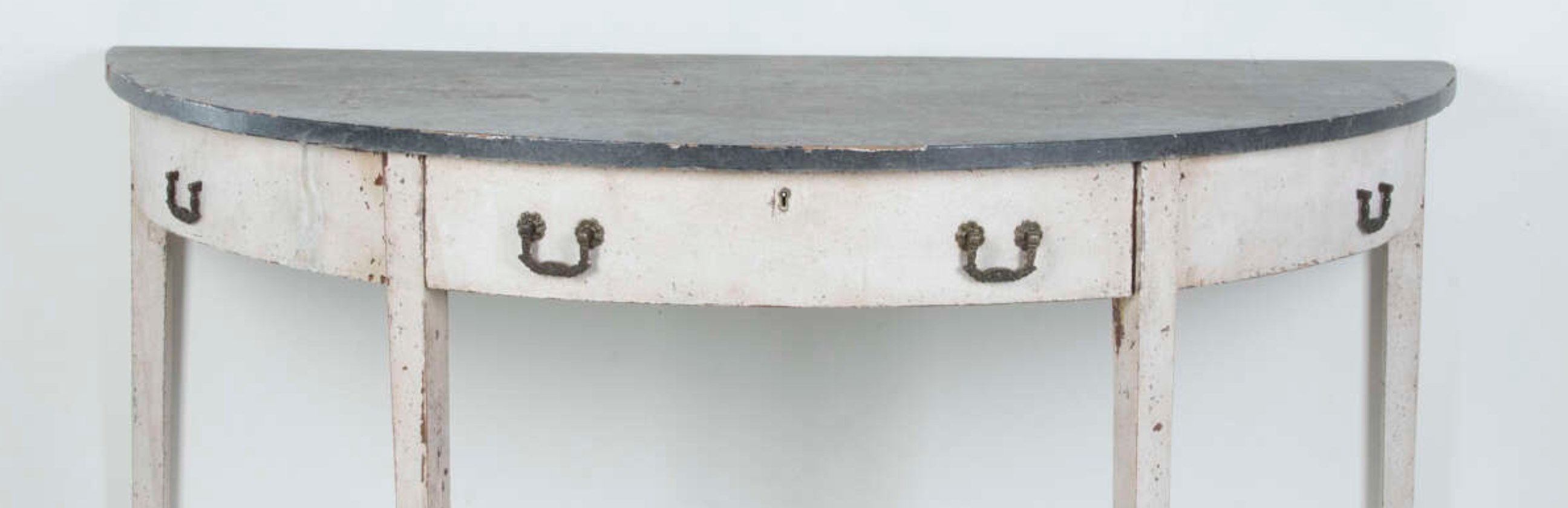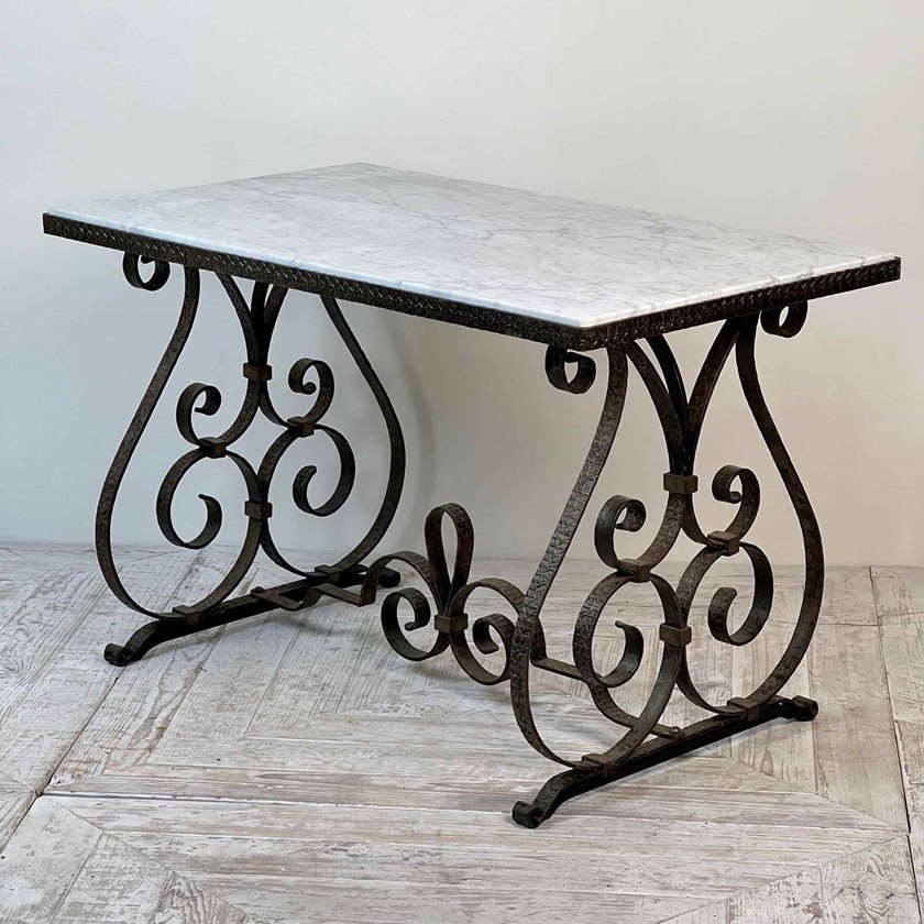 This delightful circa 1930s painted faux bamboo table or desk, has an unexpected top. Click through to discover.