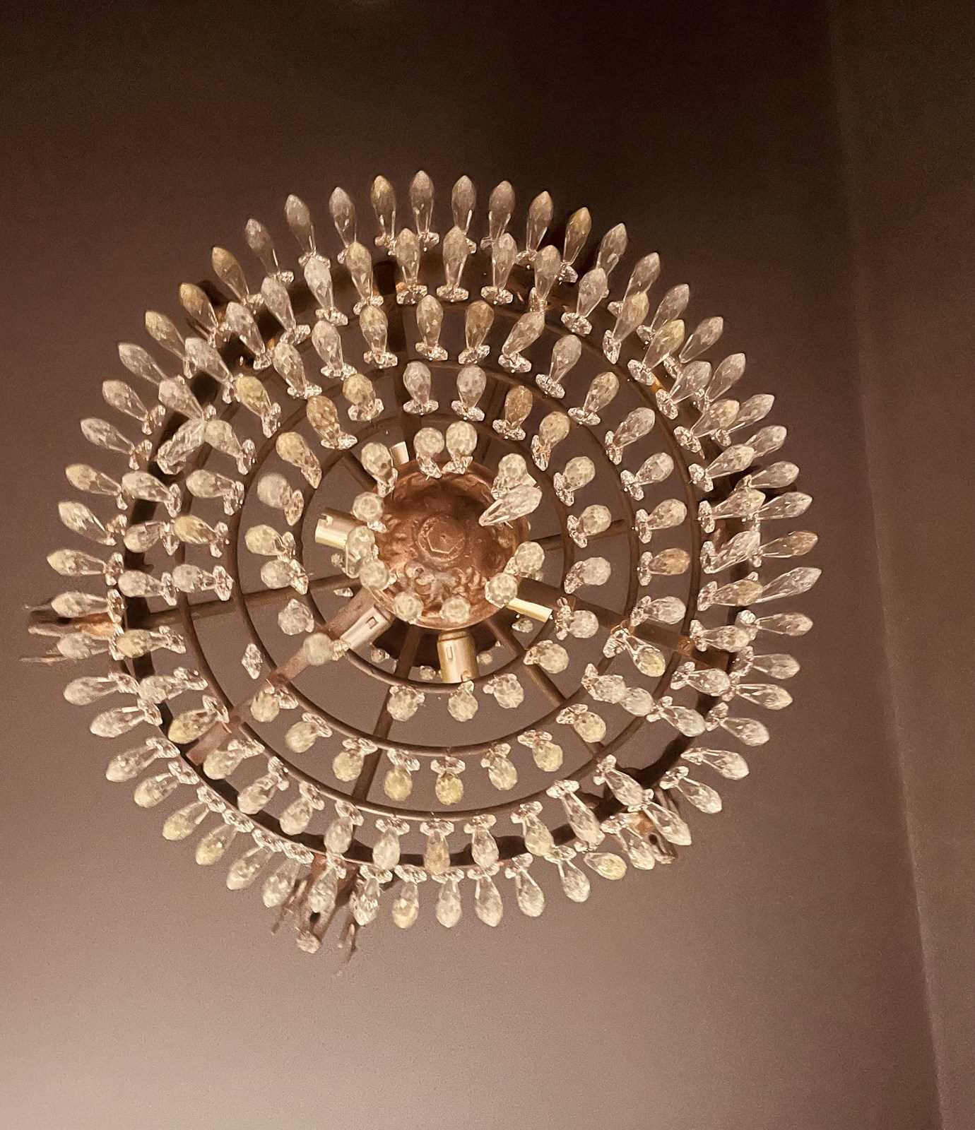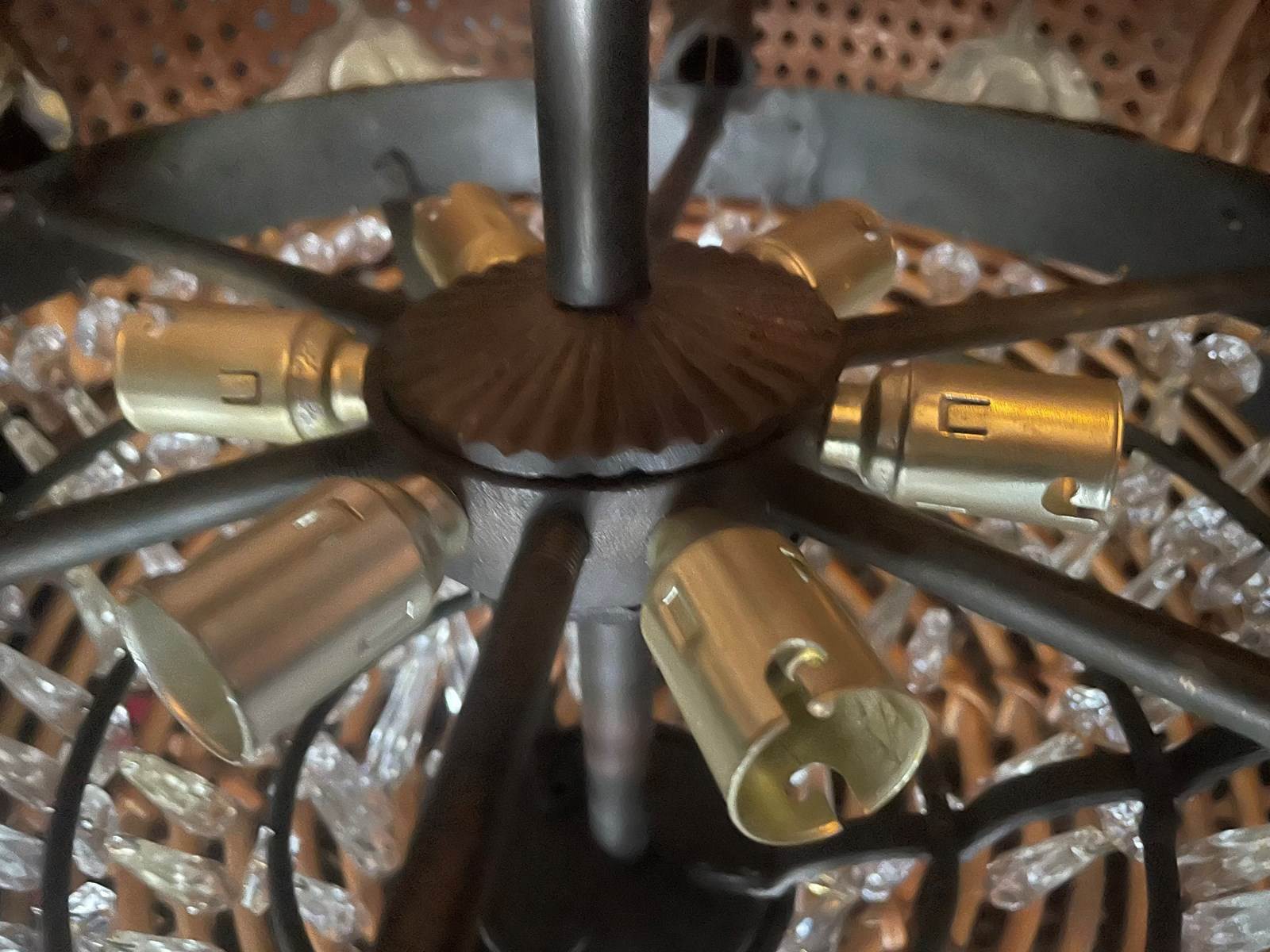 You will see from the last photo that there are six new brass bulb holders that will ensure that the droplets on the lower tier are fully lit. (Accepts e27 bayonet bulbs).