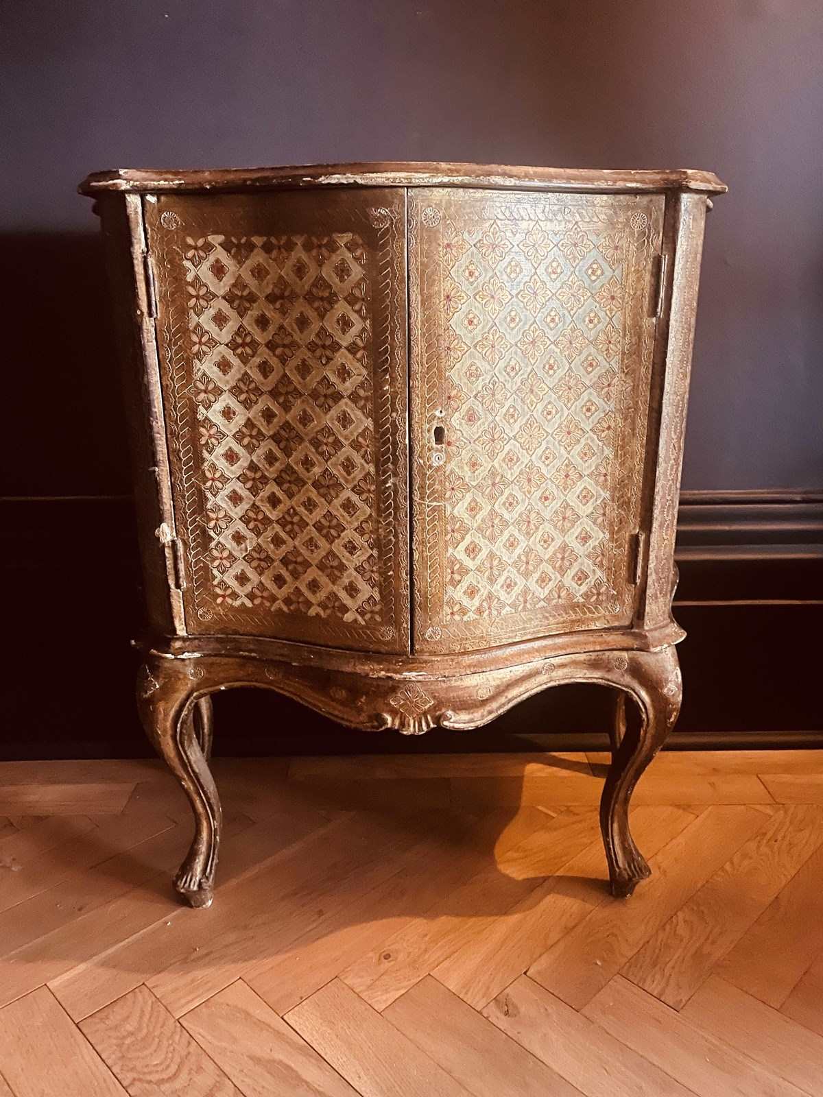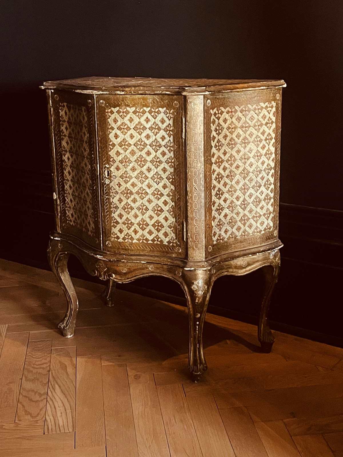 Rare to find this Florentine cabinet in this design.