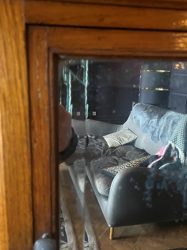 Foxing to the bevelled glass mirror plate.
