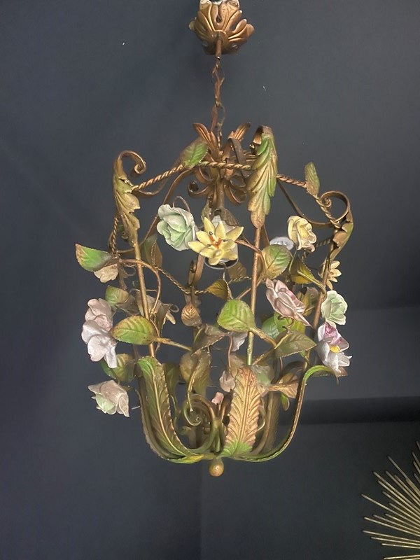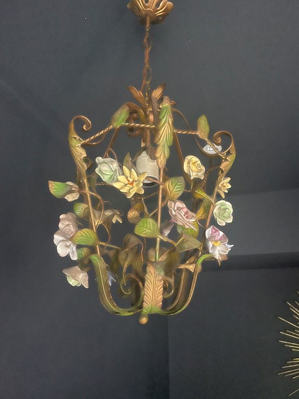 Very good condition for age, a little minor wear to a ceramic flower.  Not noticeable when hung.