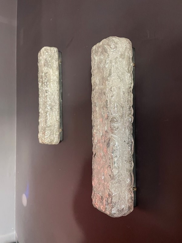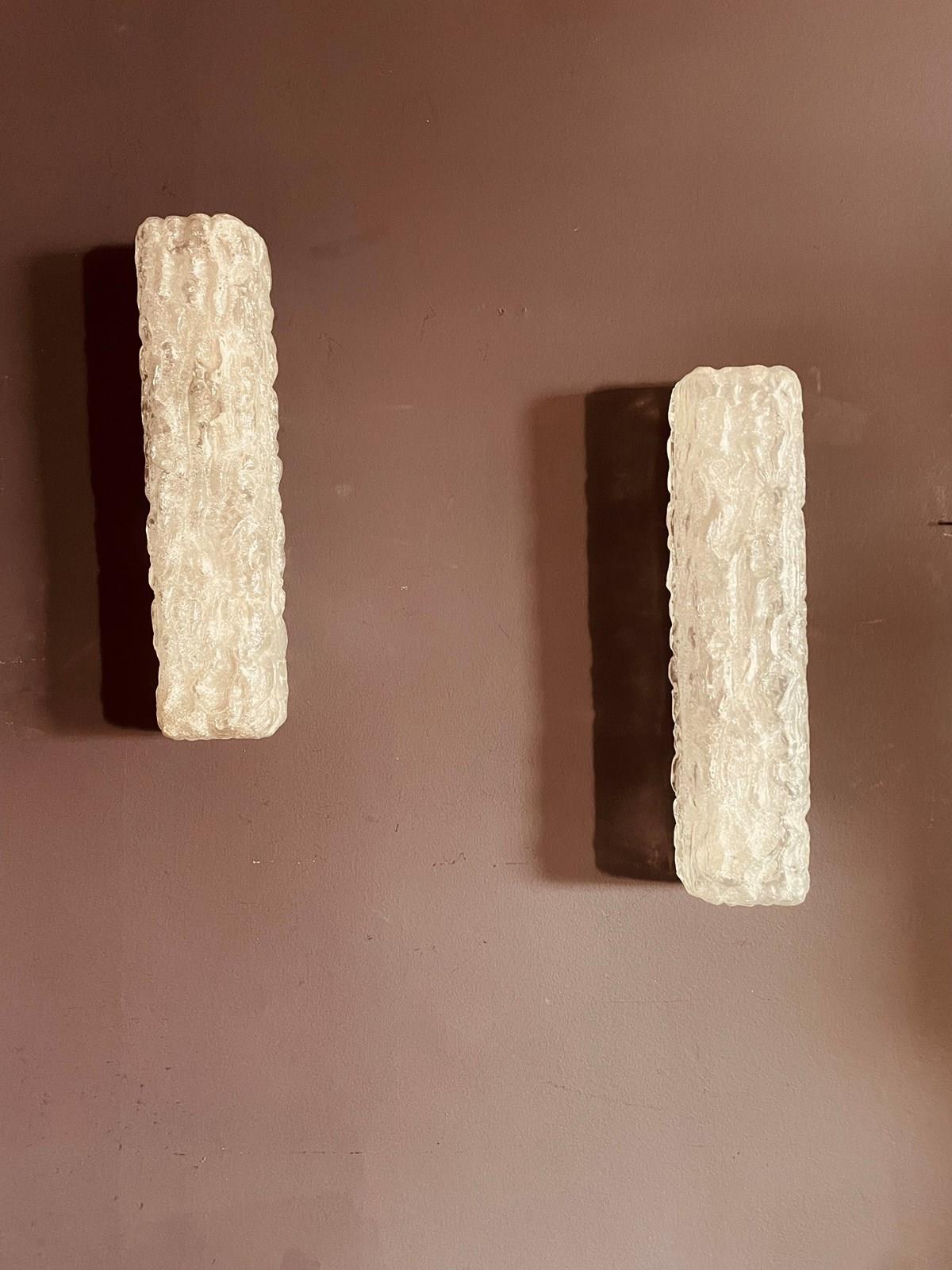 A wonderful pair of “ice” wall lights by the German lighting company, Glashütte Limburg.