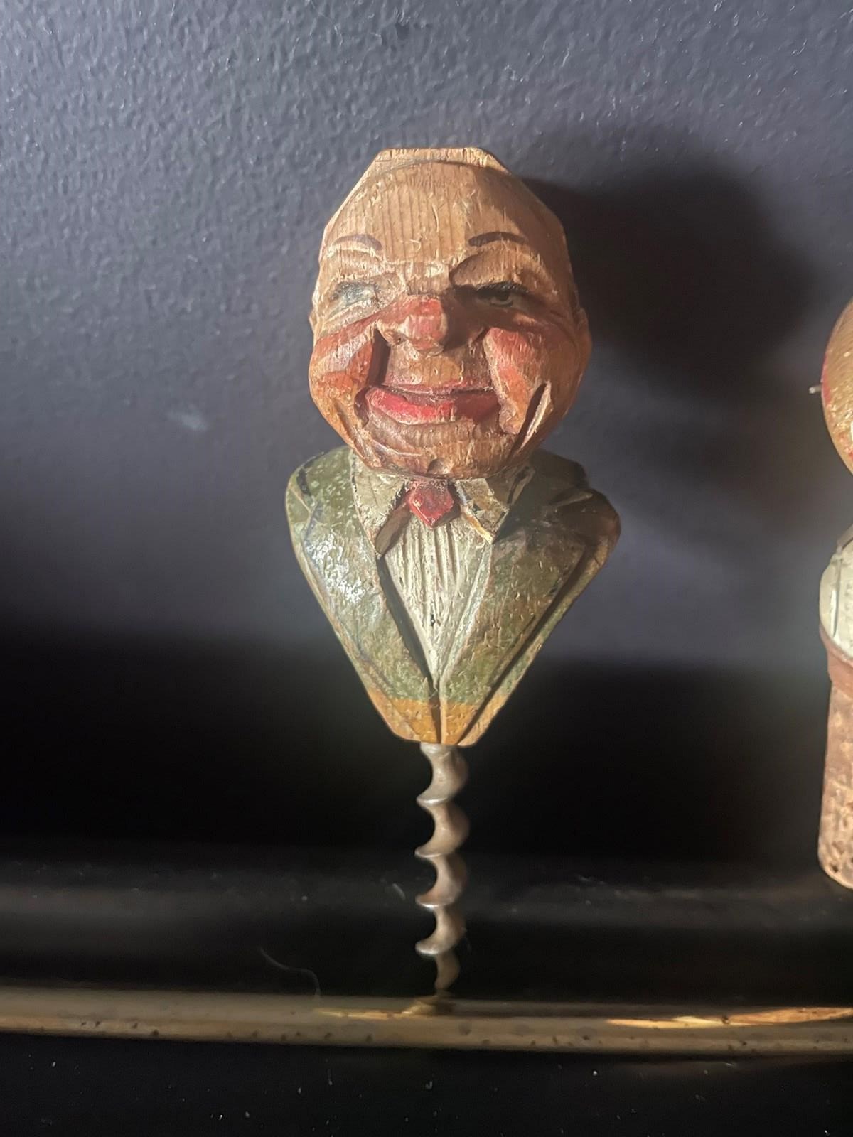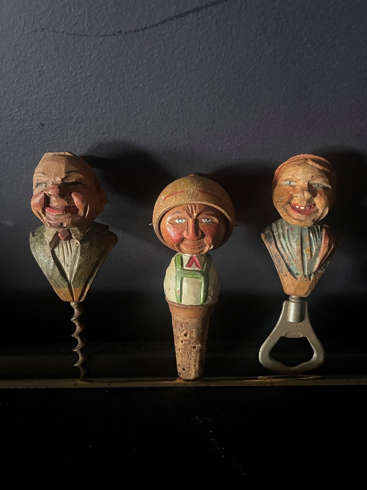A rare and wonderful, complete, hand-carved barware set by Anri, Italy.