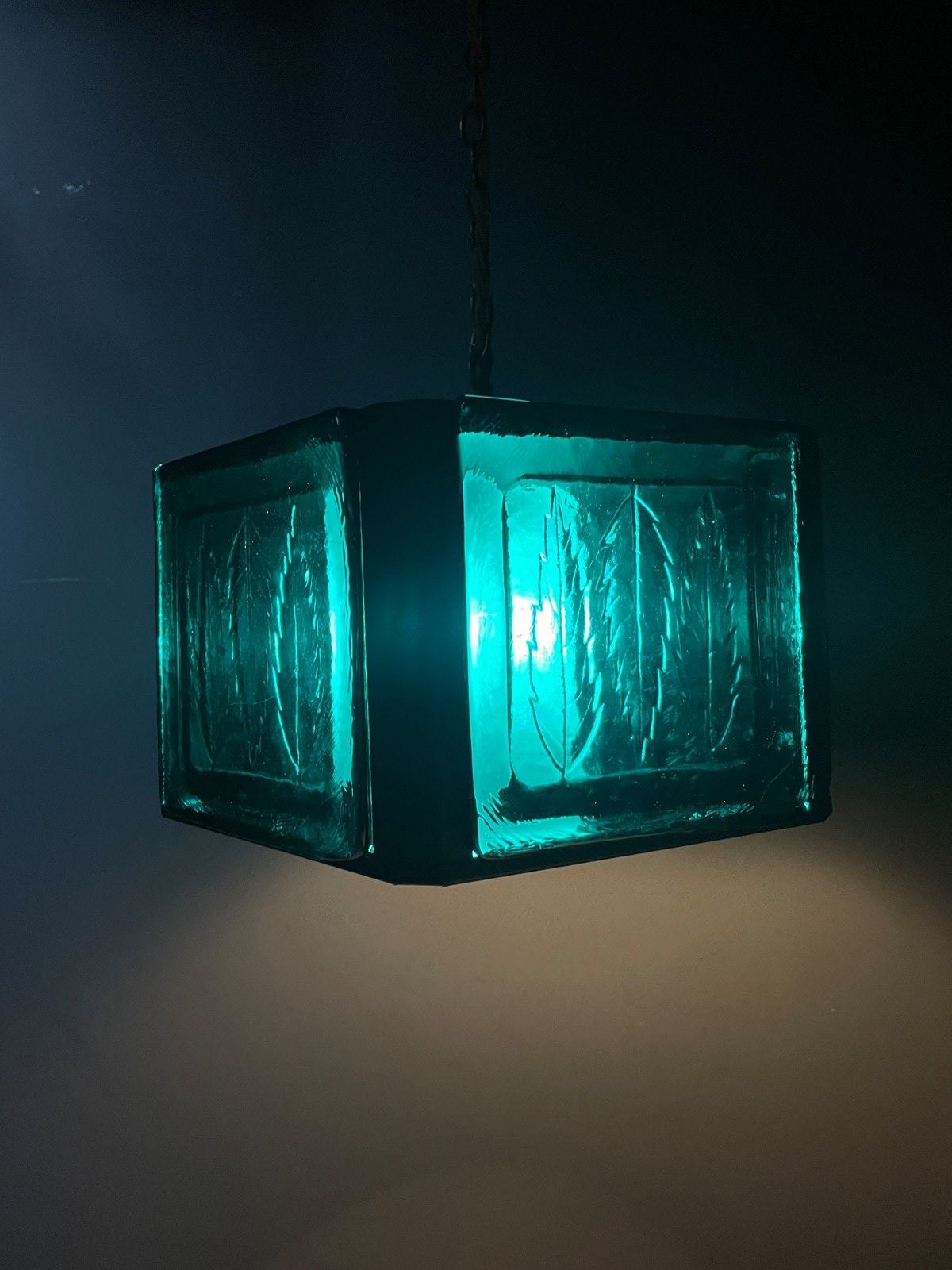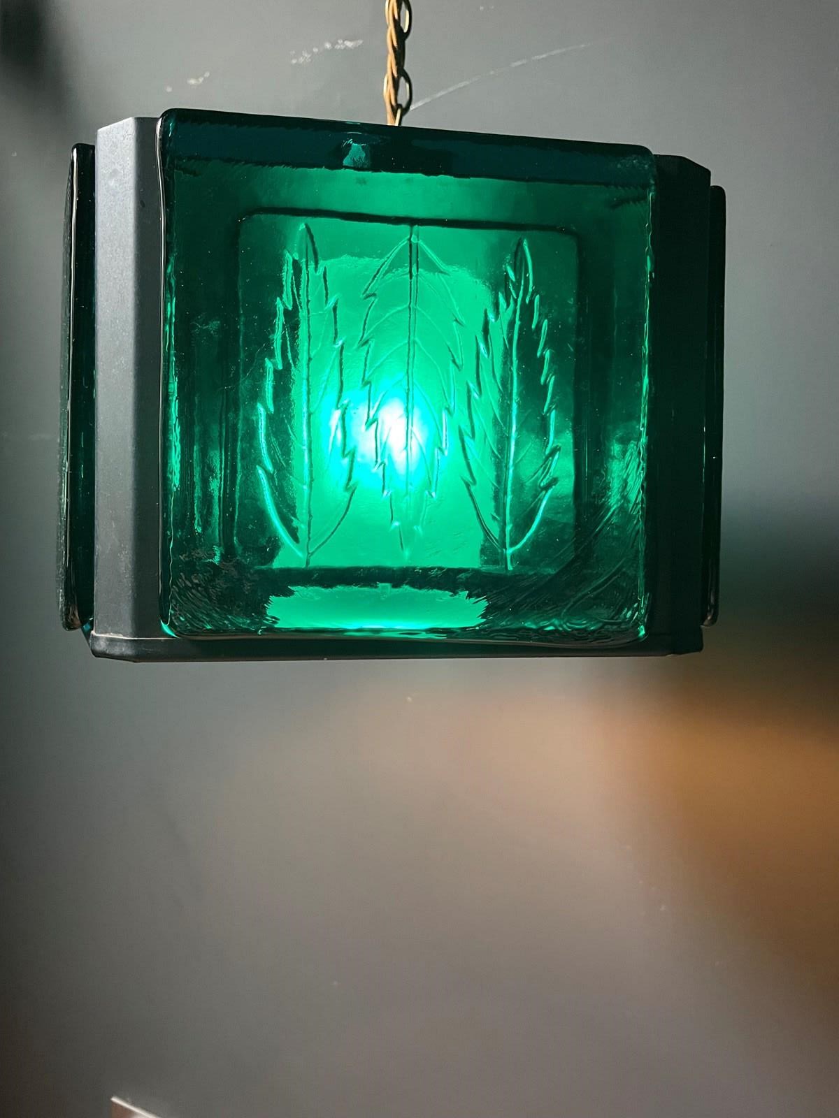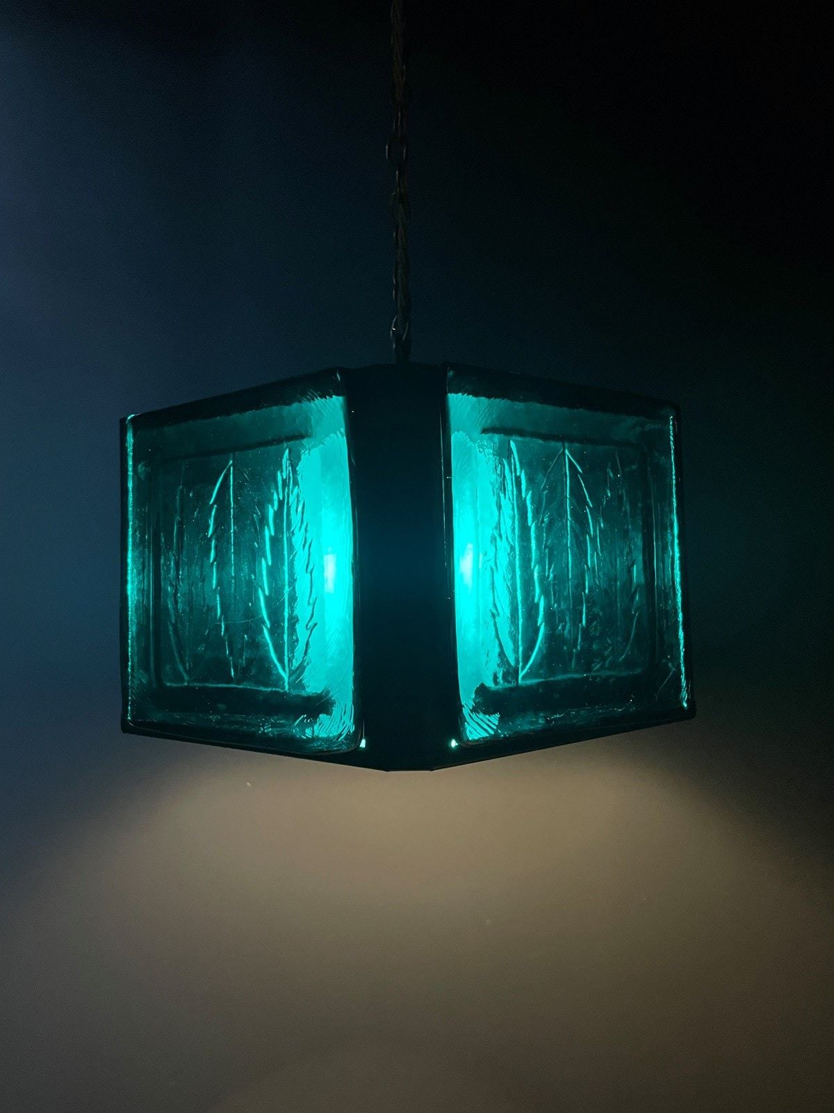 The photos taken in daylight make the pendant’s glass appear green, and at night they look more blue. The brightness will depend on what kind of bulb you choose.