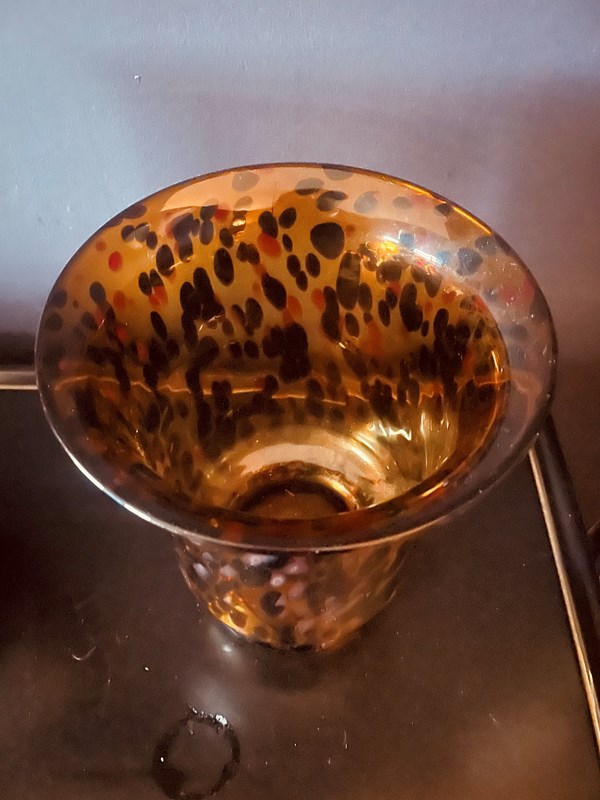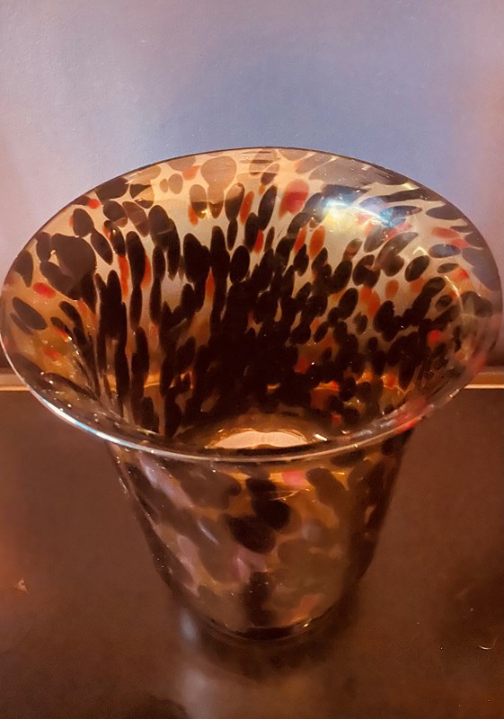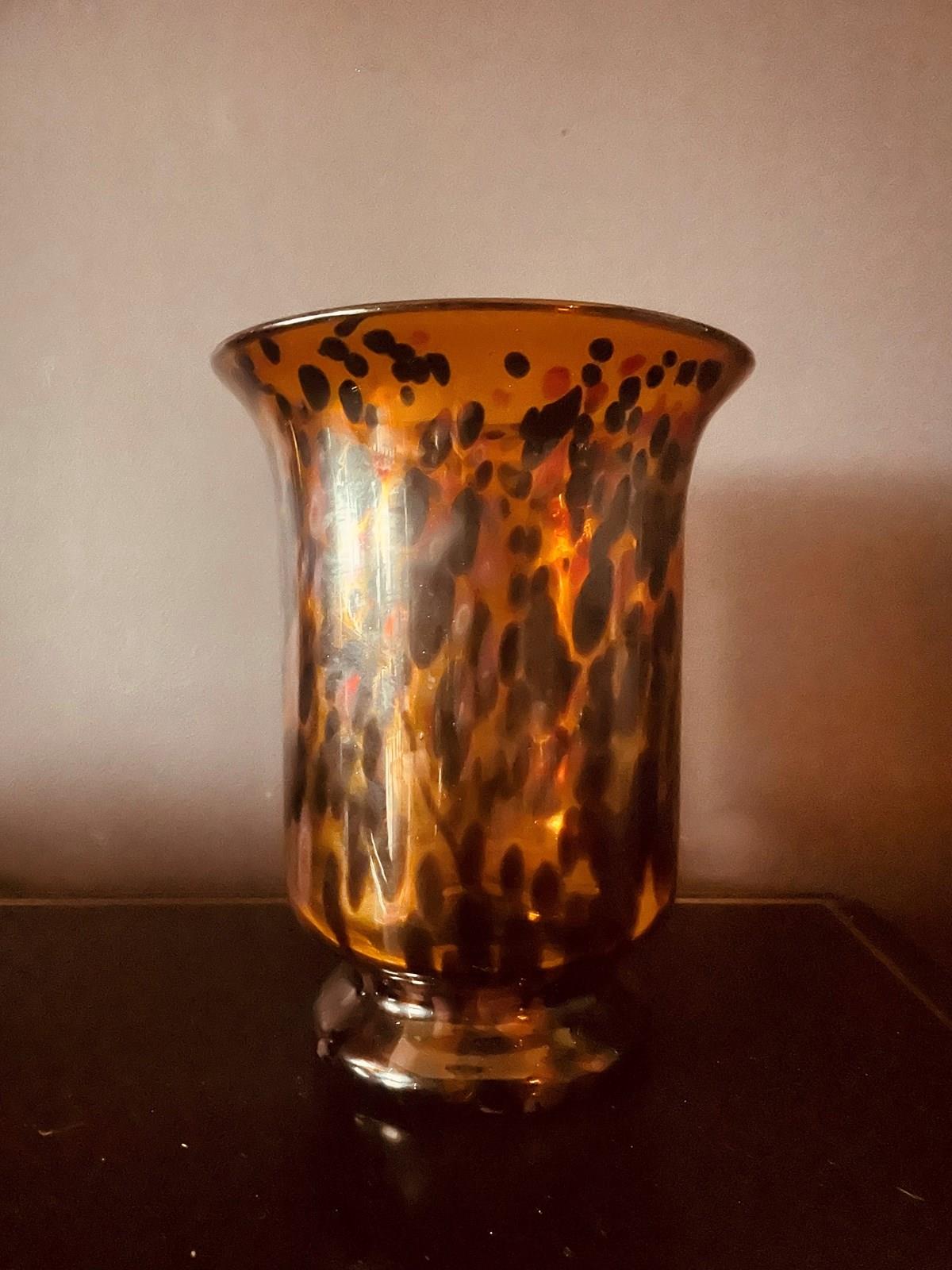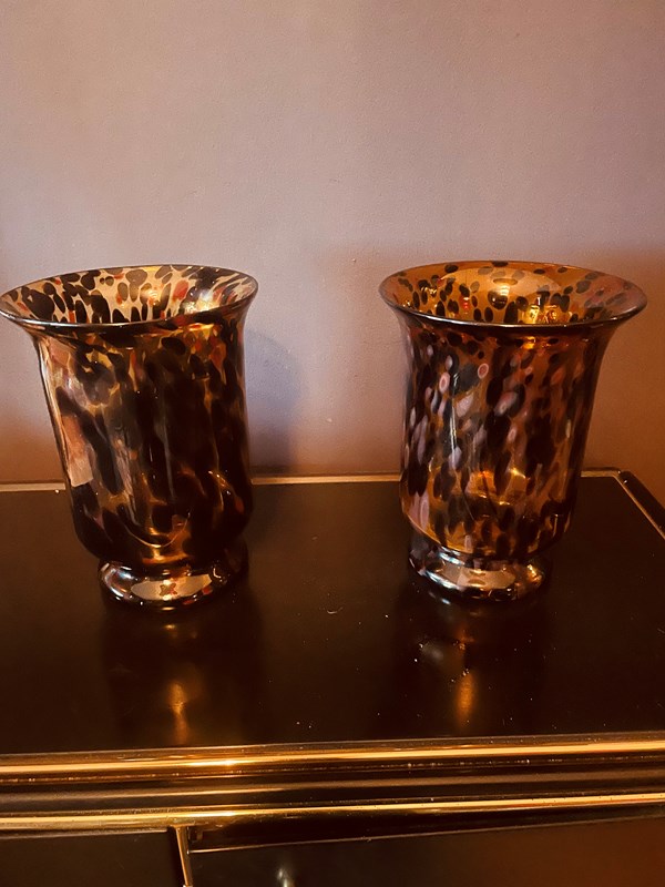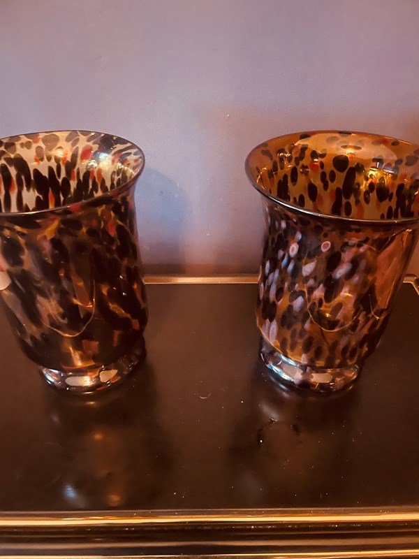 Two large hand blown, tortoiseshell, Italian vases. Possibly Murano.