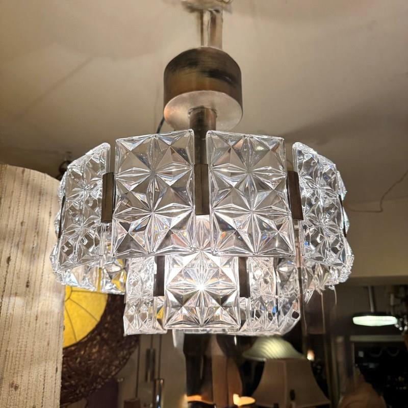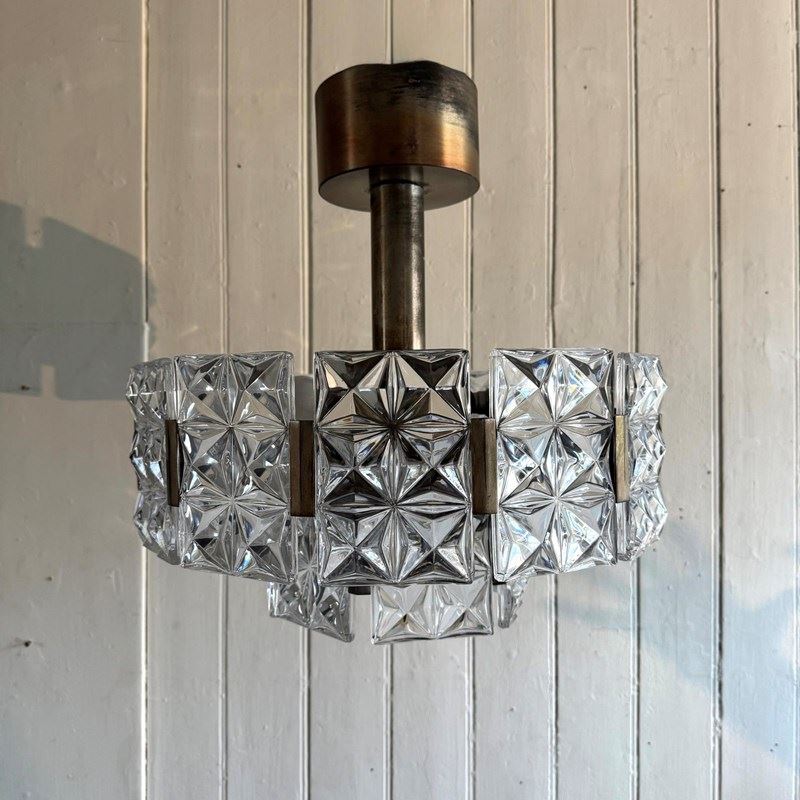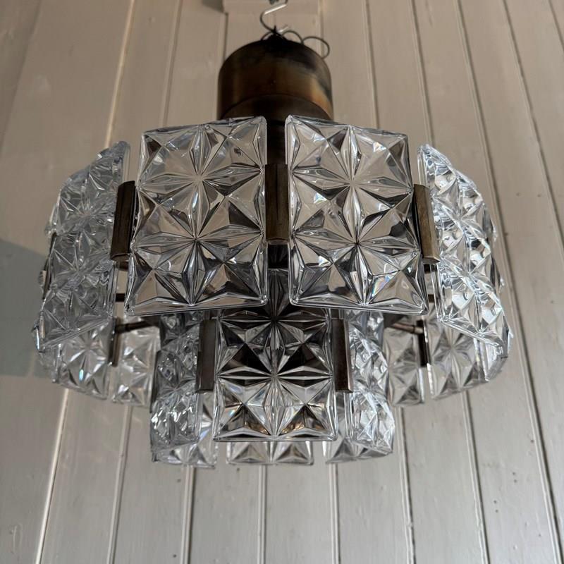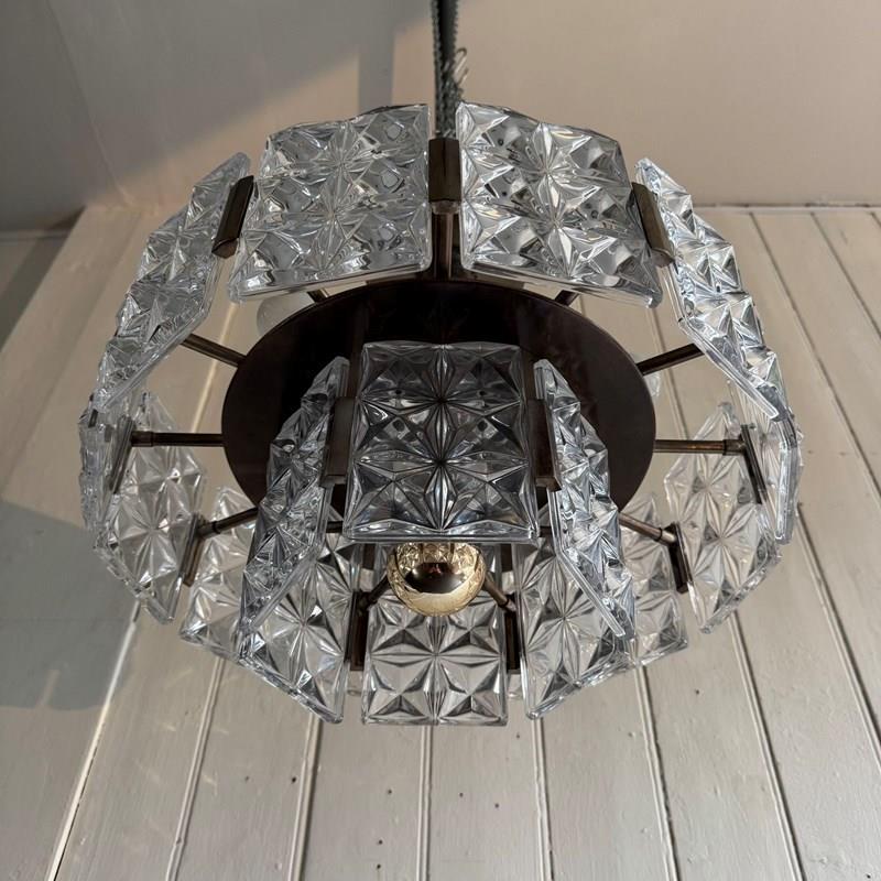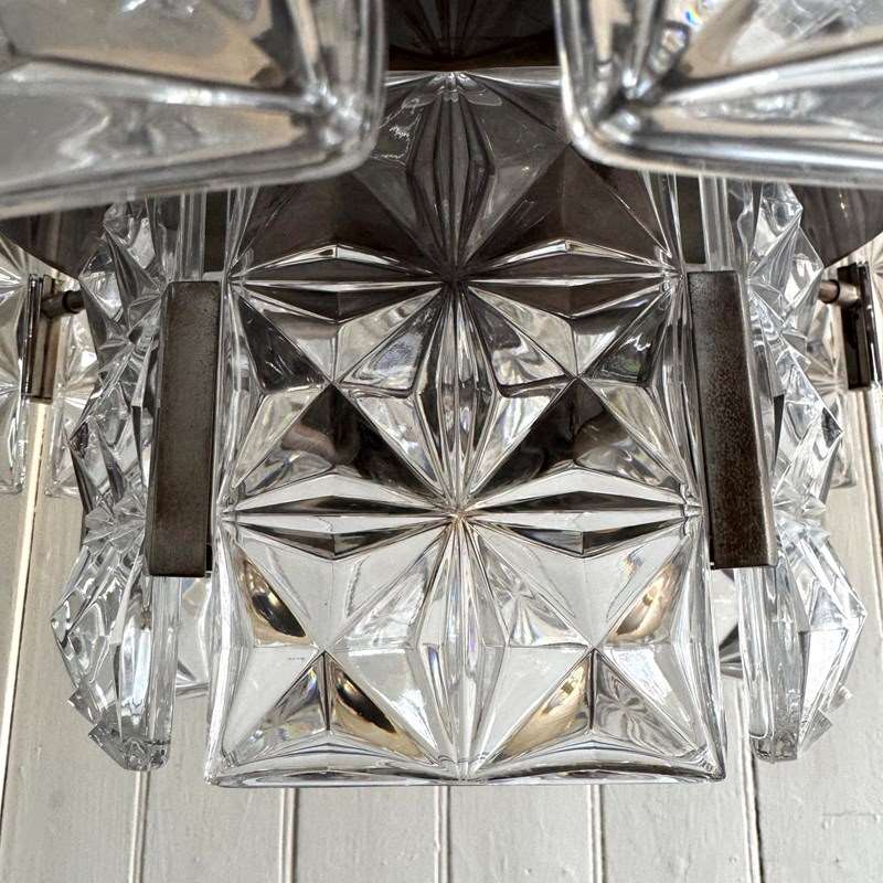 Stylish two tier glass and chrome chandelier. 1970's Belgium