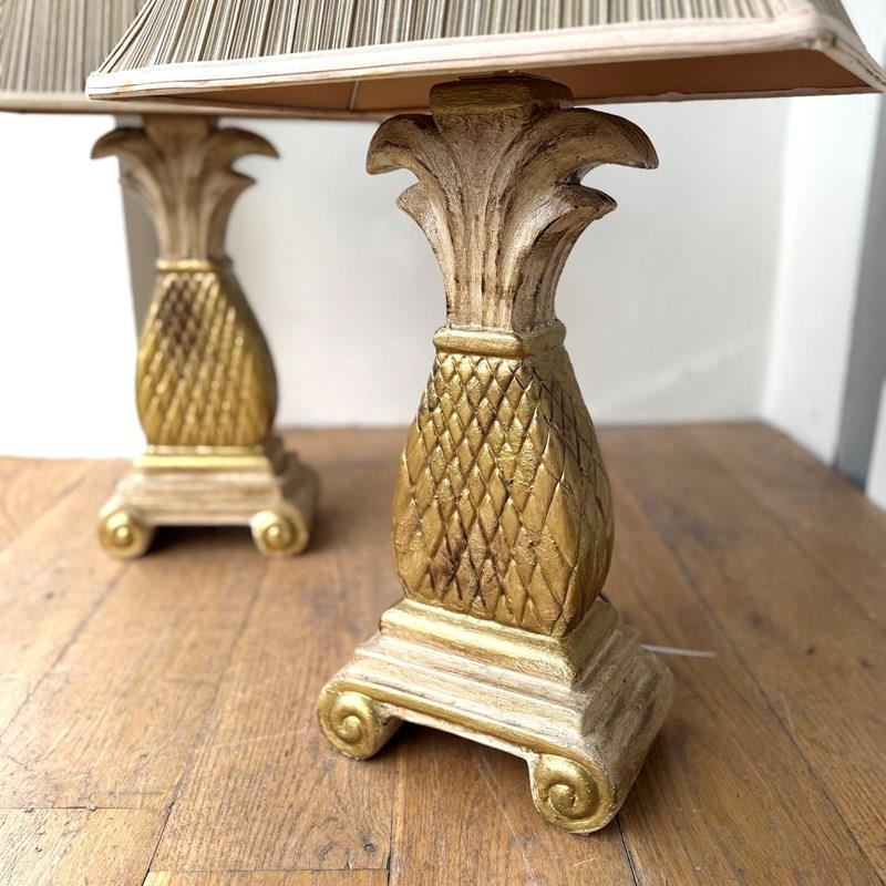 A pair of mid century painted ceramic pineapple lamps. 1970 American