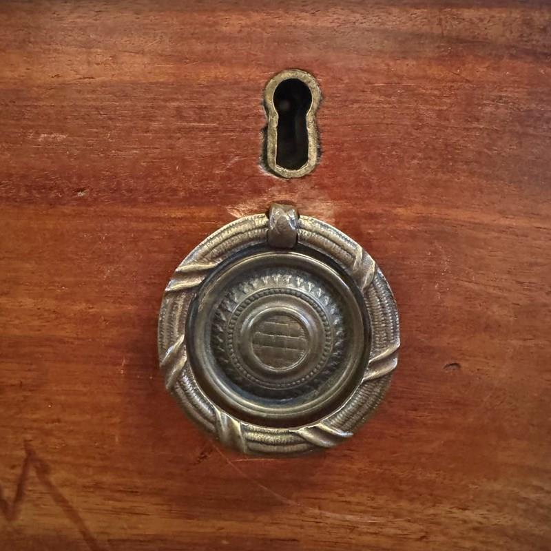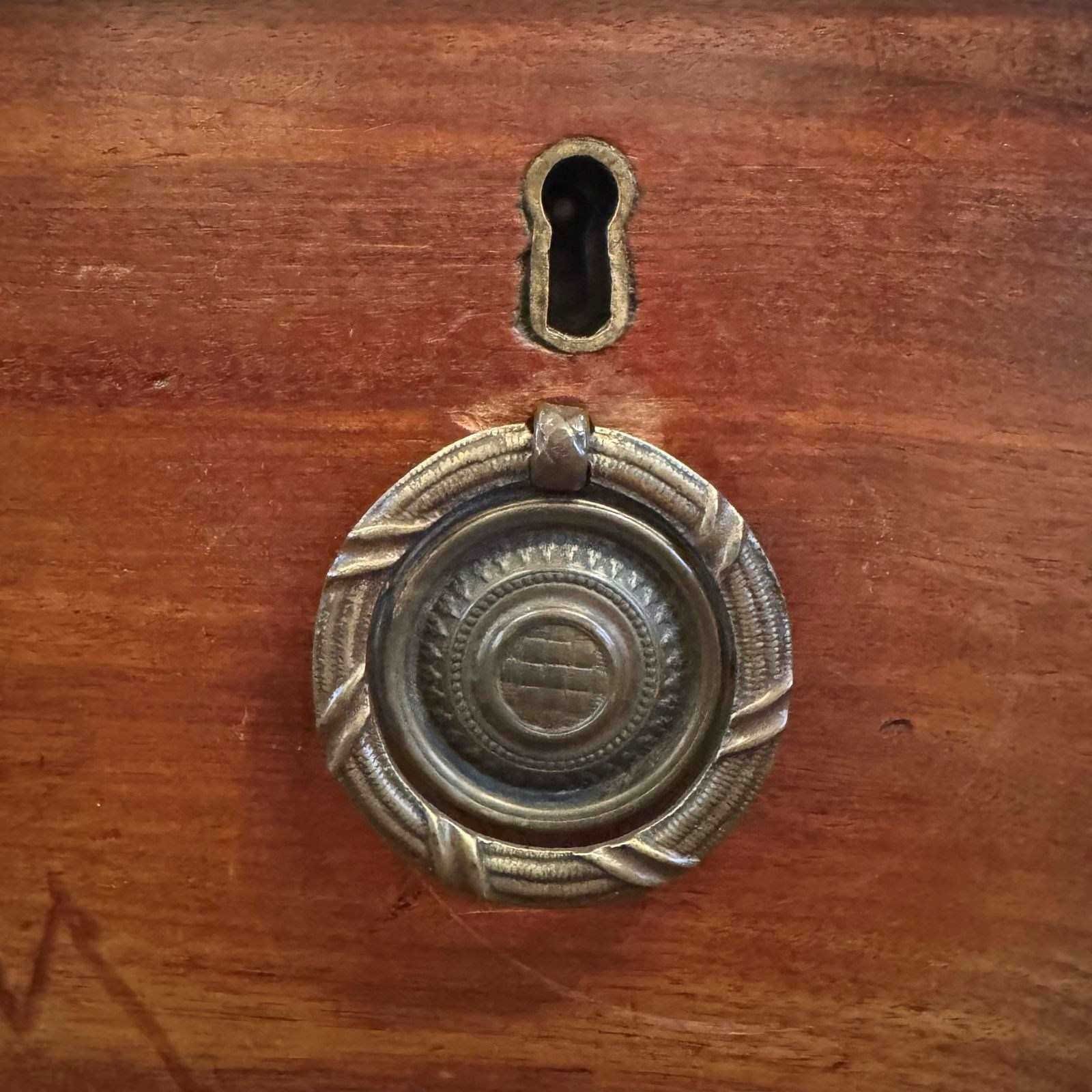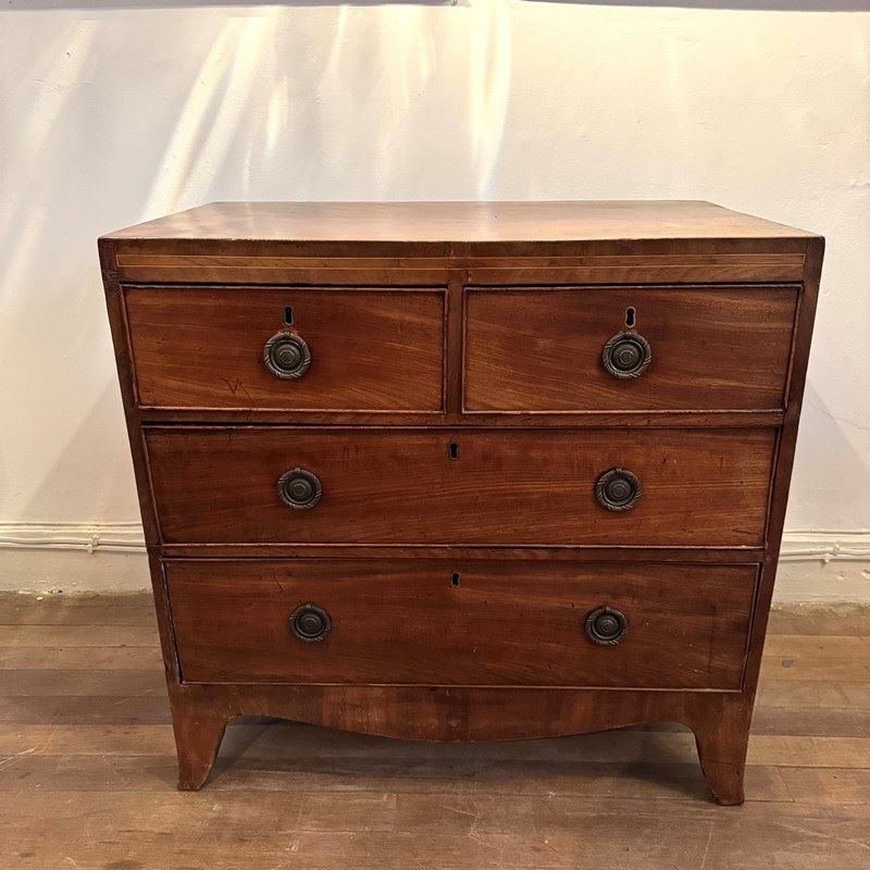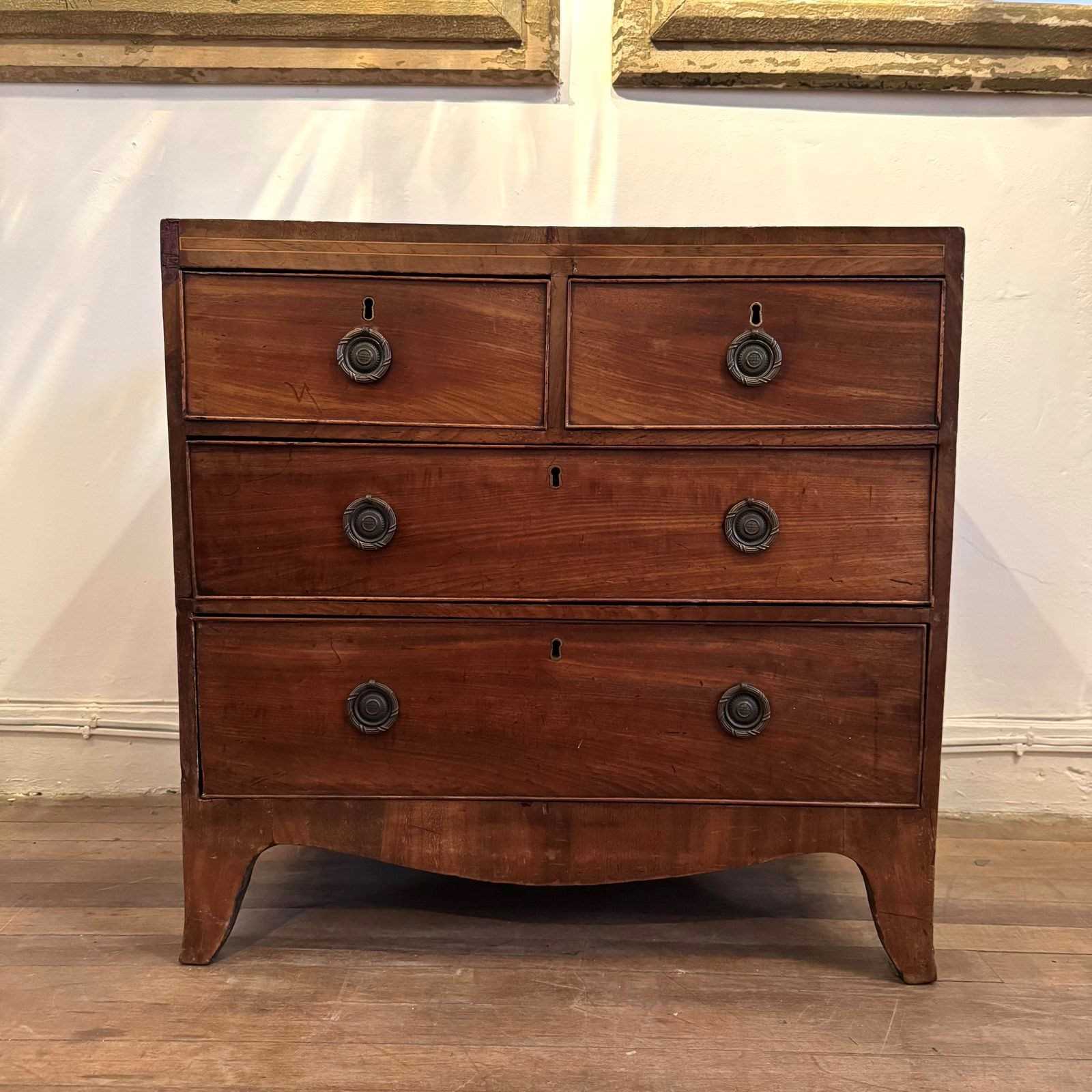 A small regency two over two mahogany chest of drawers. Original round brass handles. A few scuffs and scratches. Early 19th century