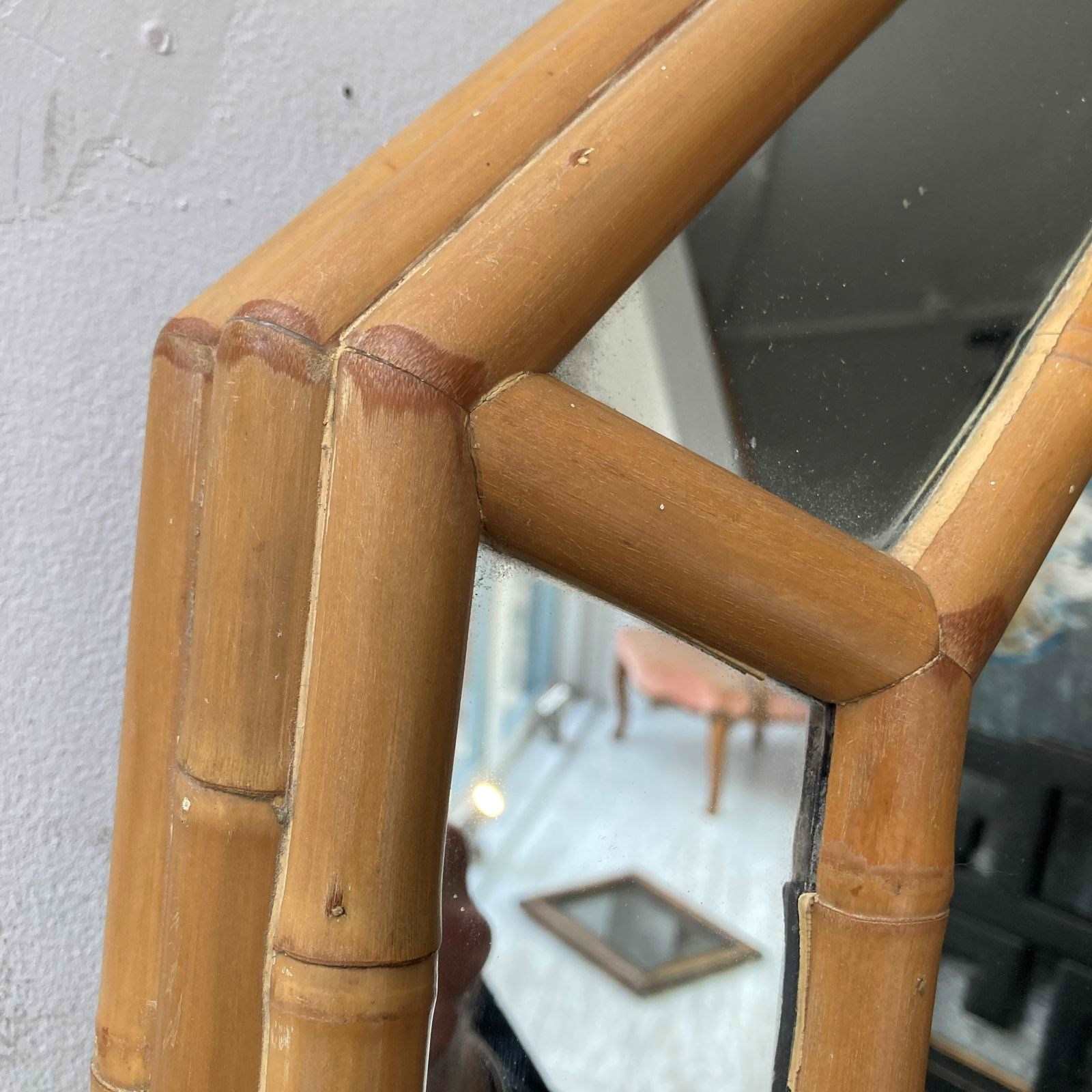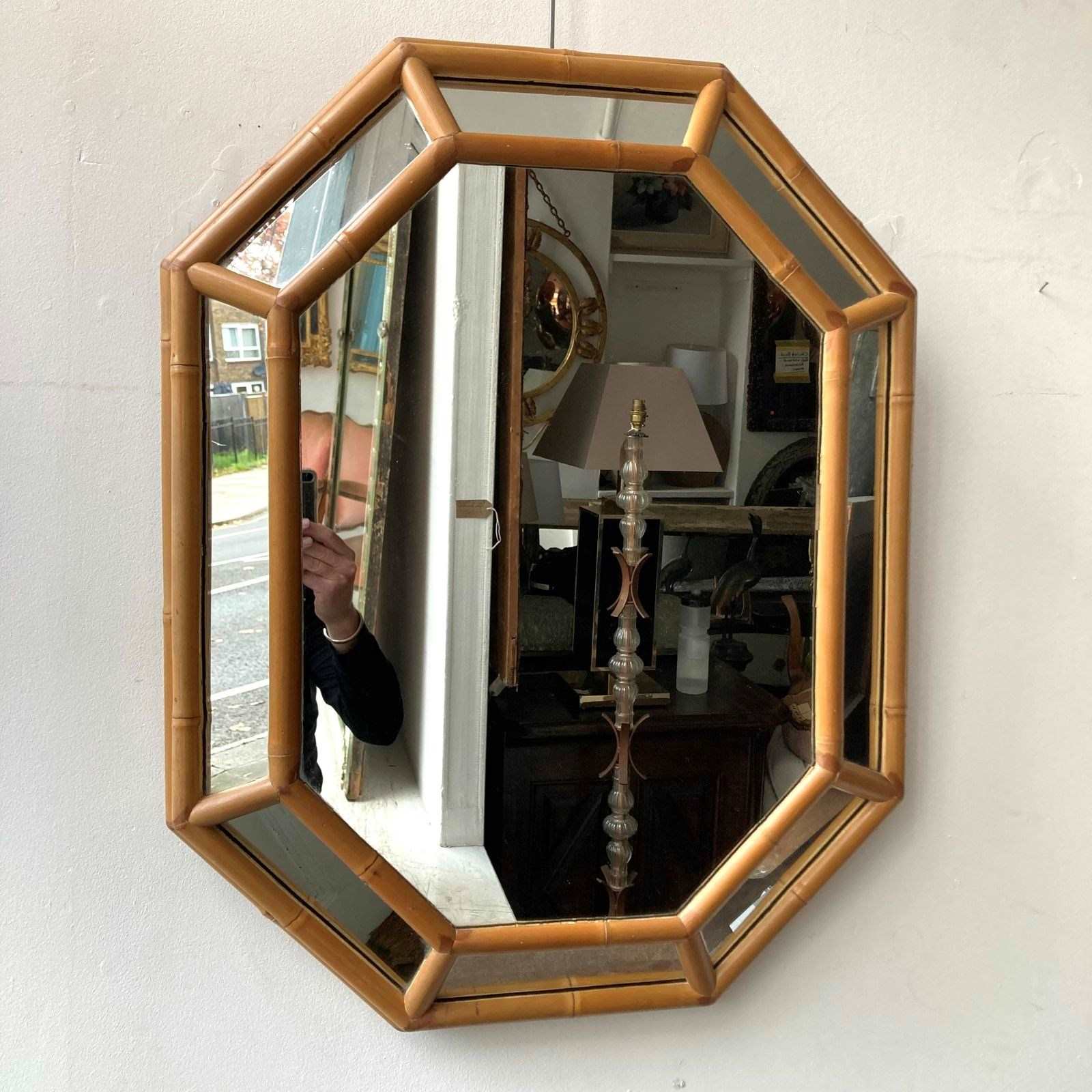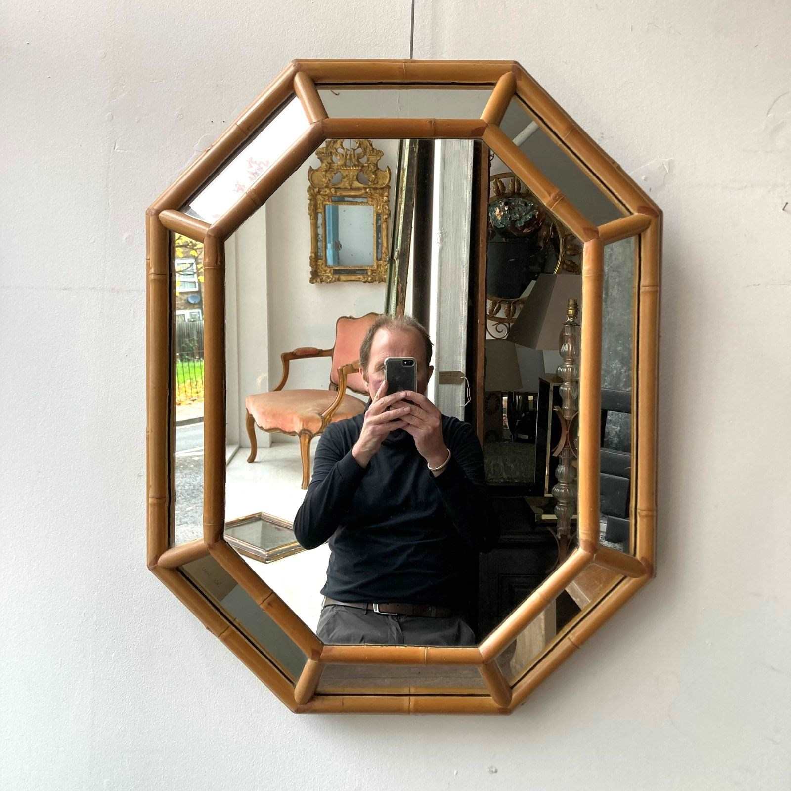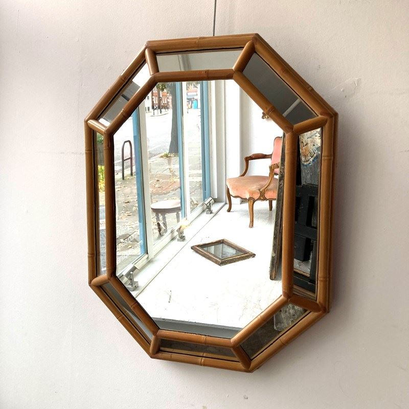 An octagonal bamboo cushion mirror. France 1970s