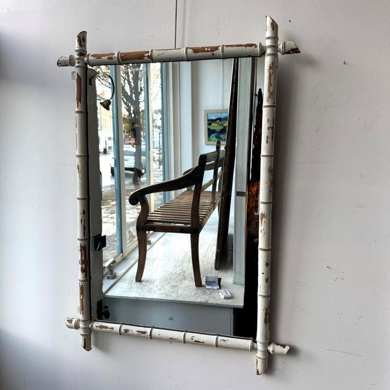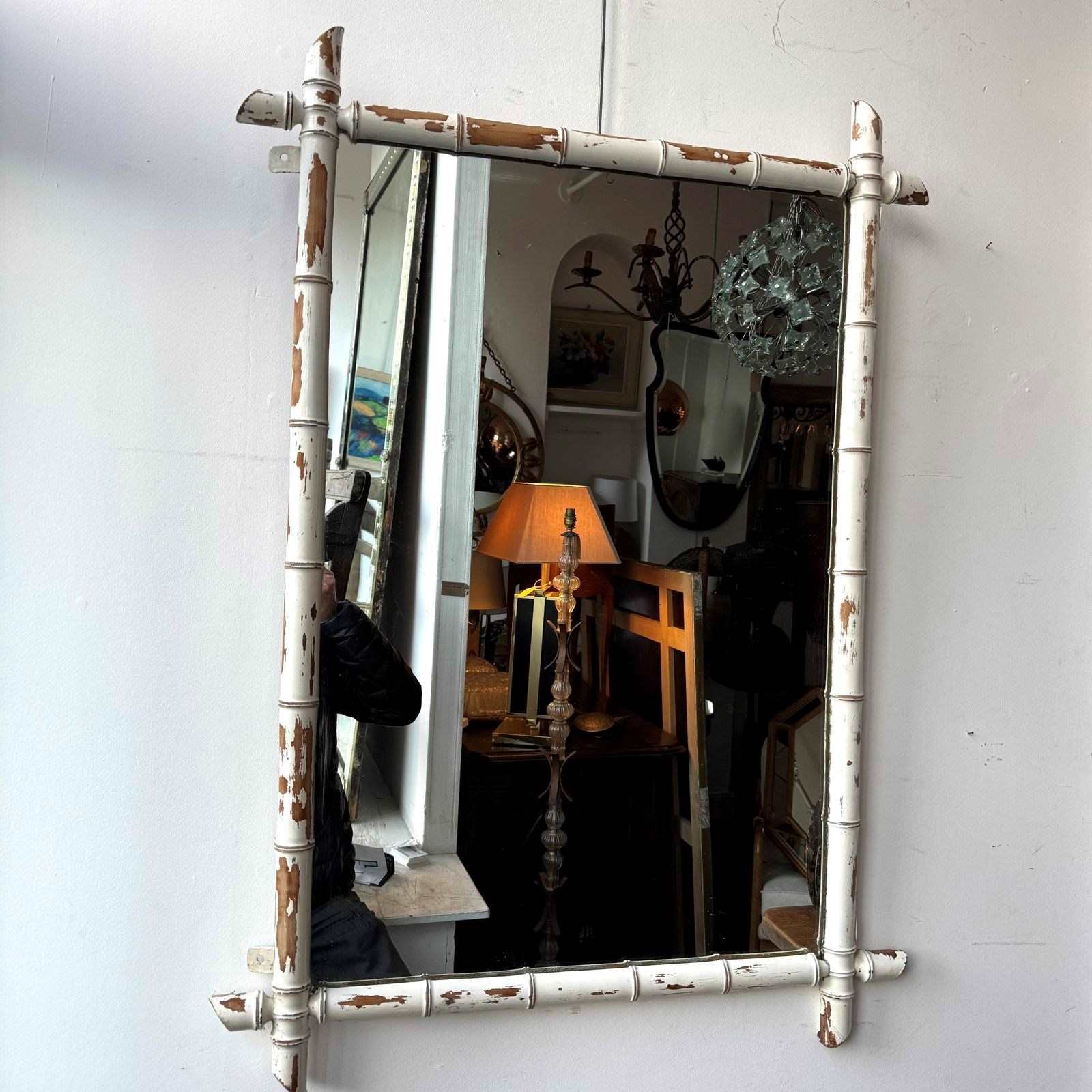 A French faux bamboo painted mirror. Original mirror plate. Late 19th century
