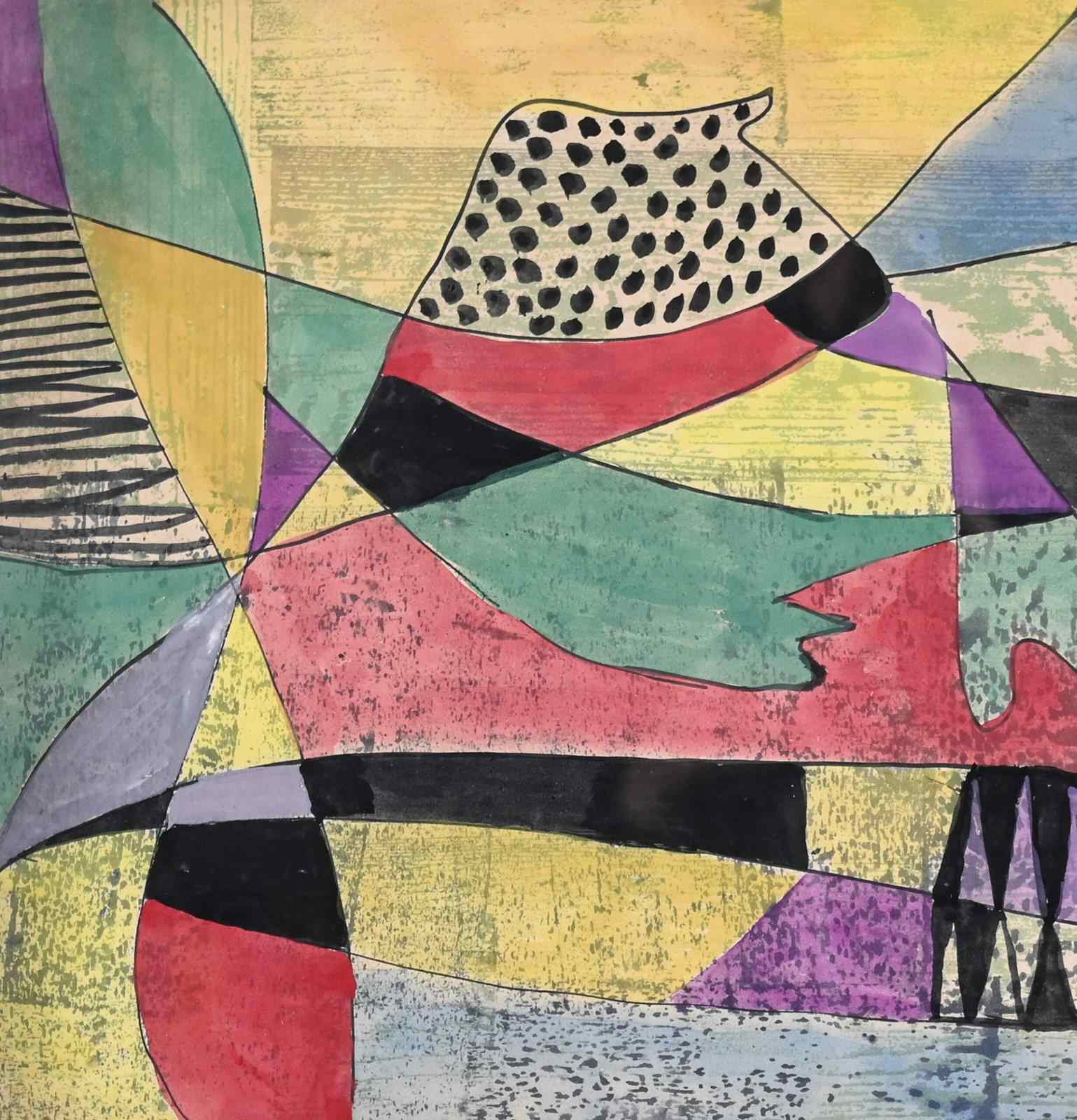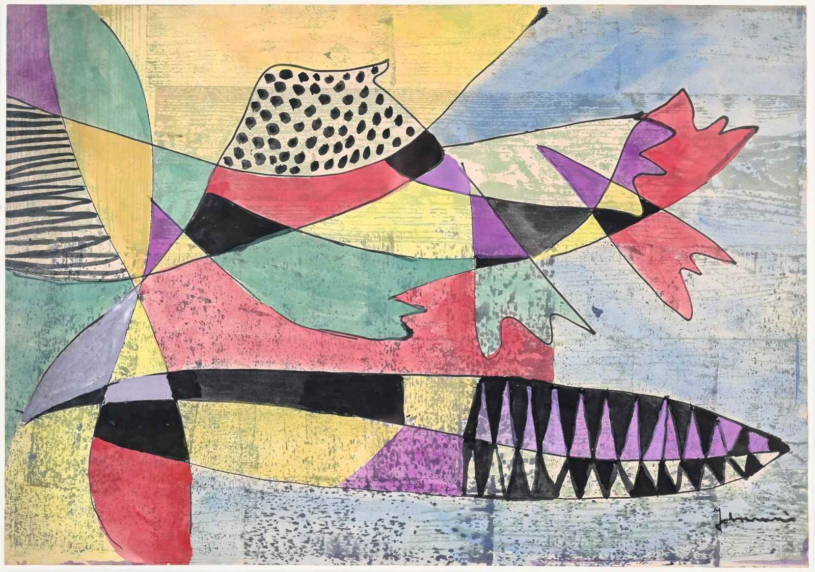 Executed in 1954, Komposition 54 is a confident abstract work from Jo Brenneis’s most important post-war period, when he fully articulated his mature visual language. The composition is structured through interlocking geometric planes and rhythmic linear elements, balanced by a lively and intuitive use of colour.