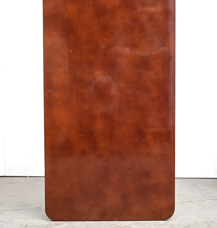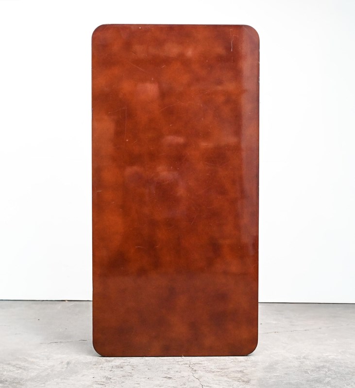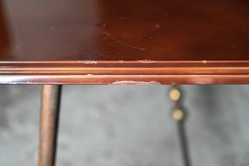 The lacquer surface retains its original patina and has been sensitively conserved, with discreet edge touch-ins carried out using reversible, museum-appropriate materials. An elegant and highly usable example of French mid-century decorative design, combining architectural restraint with refined material detail.
