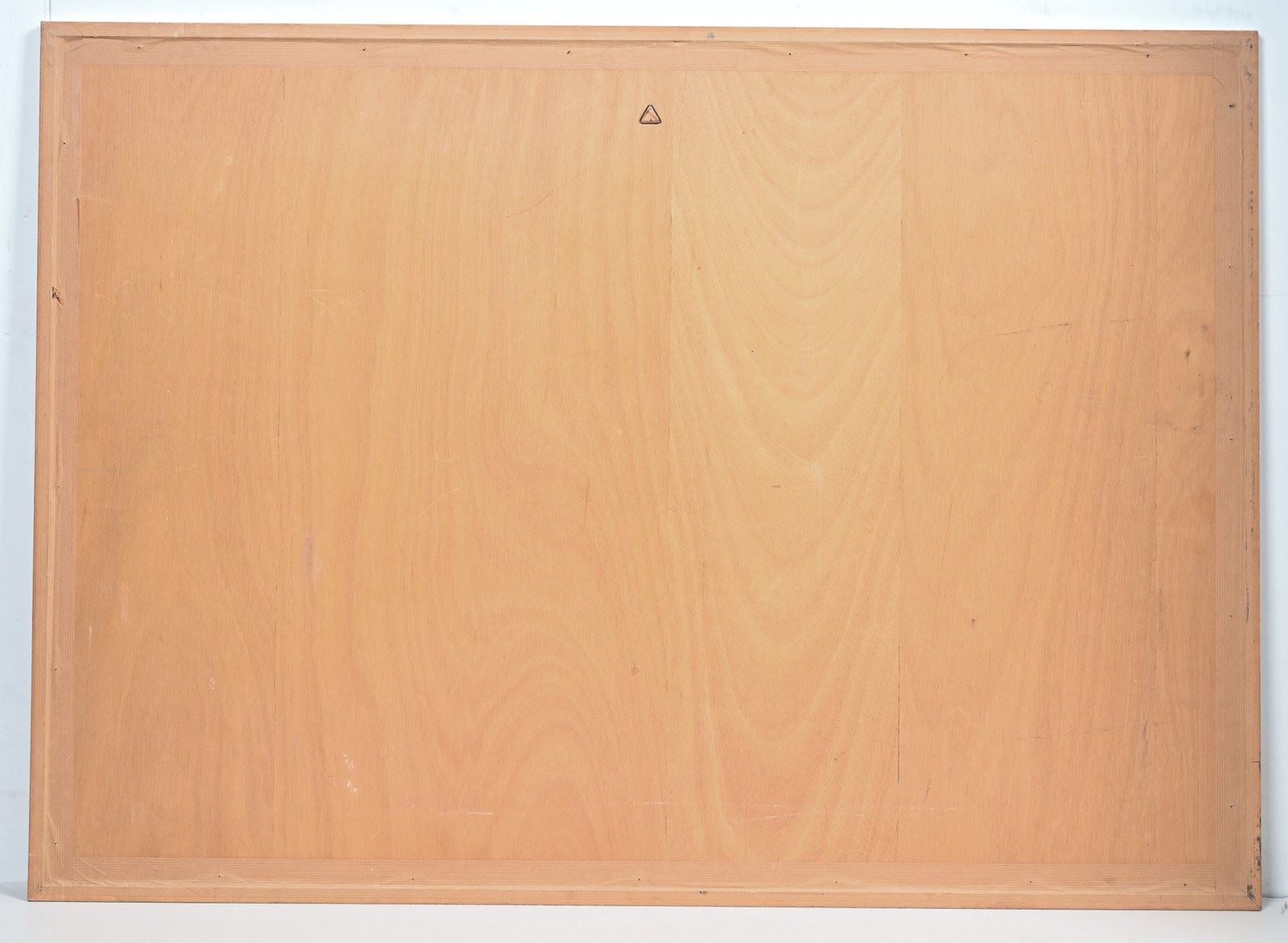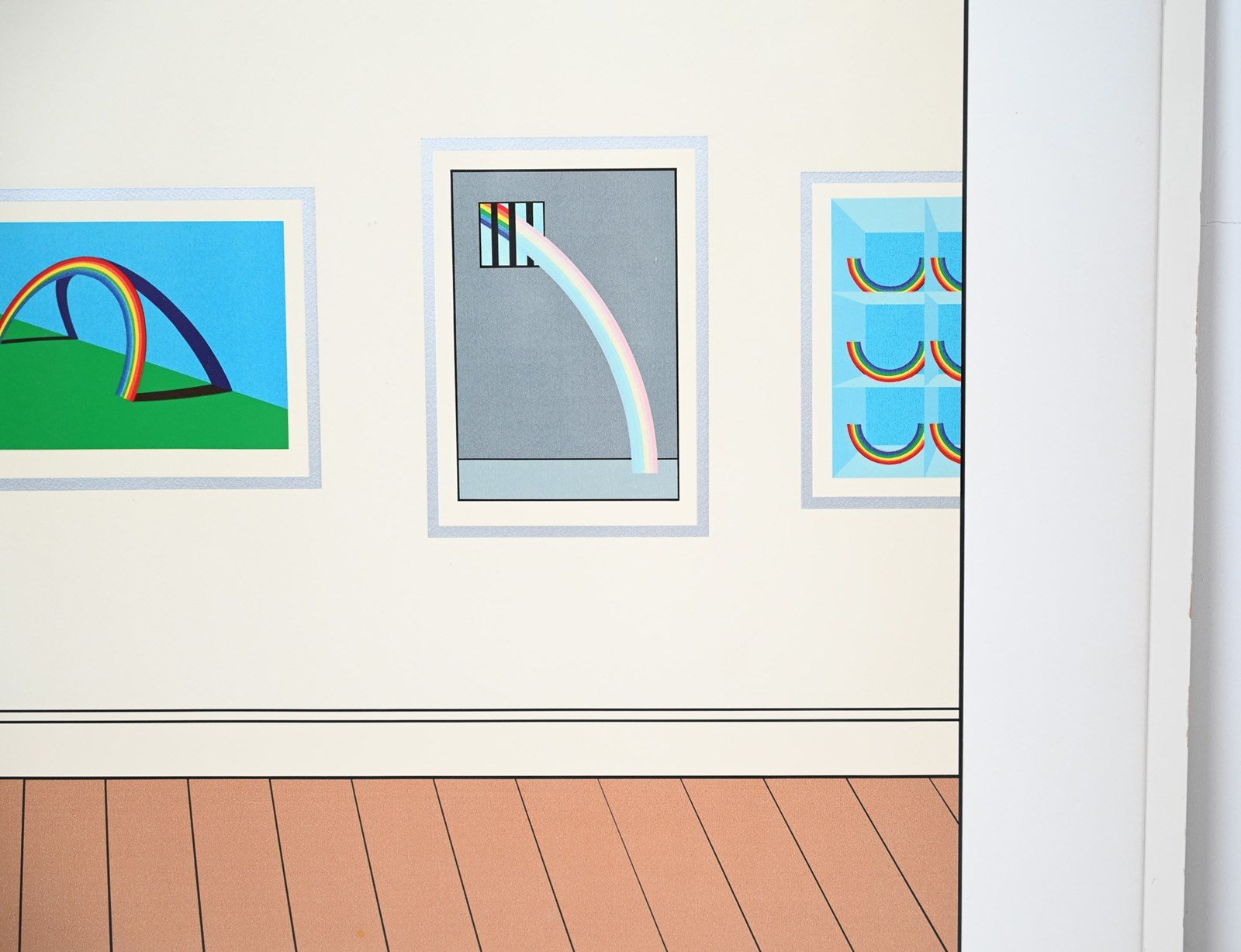 A witty and meticulously composed early work by Britain’s celebrated master of visual illusion. In Print of Prints, Hughes constructs a “gallery within a gallery,” transforming flat planes into playful spatial paradoxes. His use of crisp geometry and vivid colour exemplifies the artist’s enduring fascination with perception, perspective, and the shifting relationship between viewer and image.