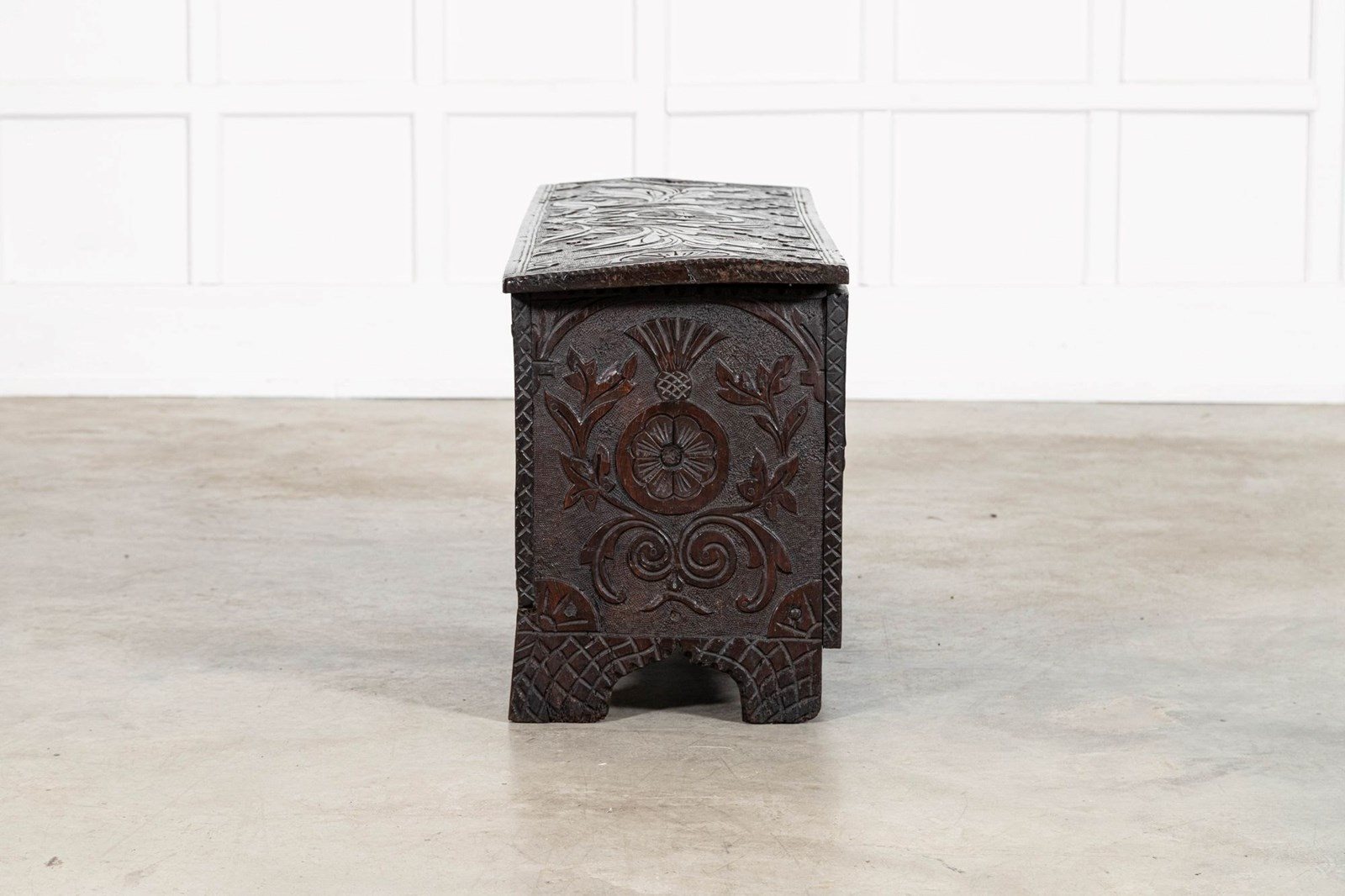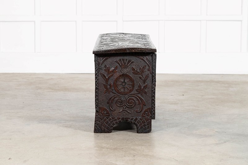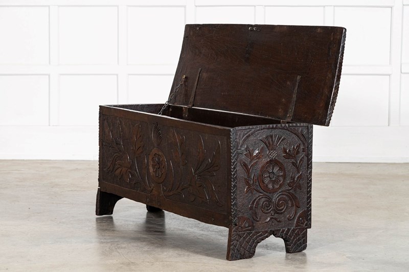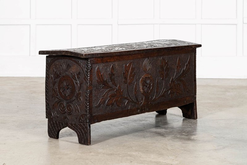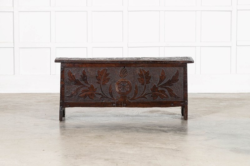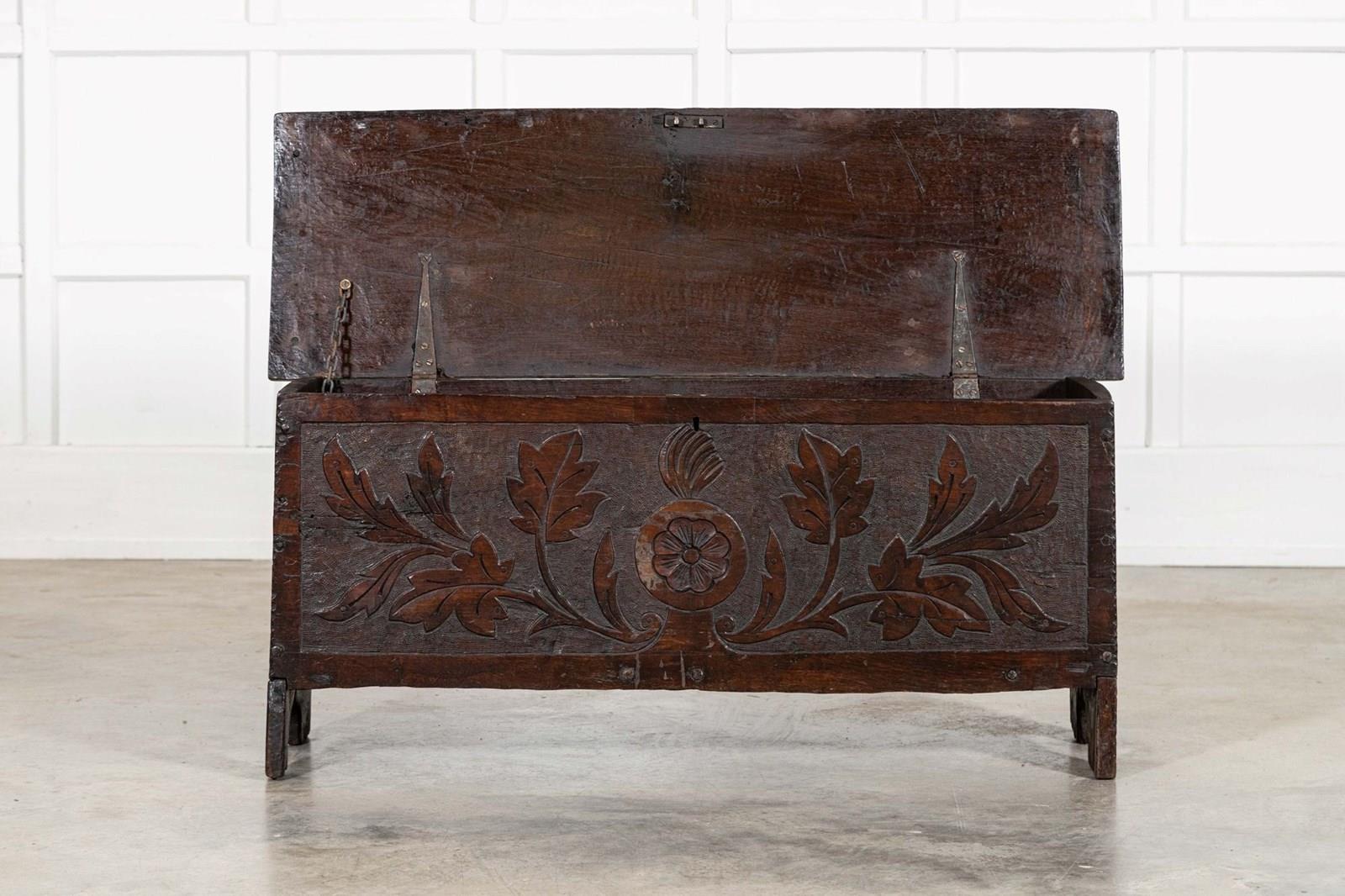 17thC English Carved Oak Coffer Chest