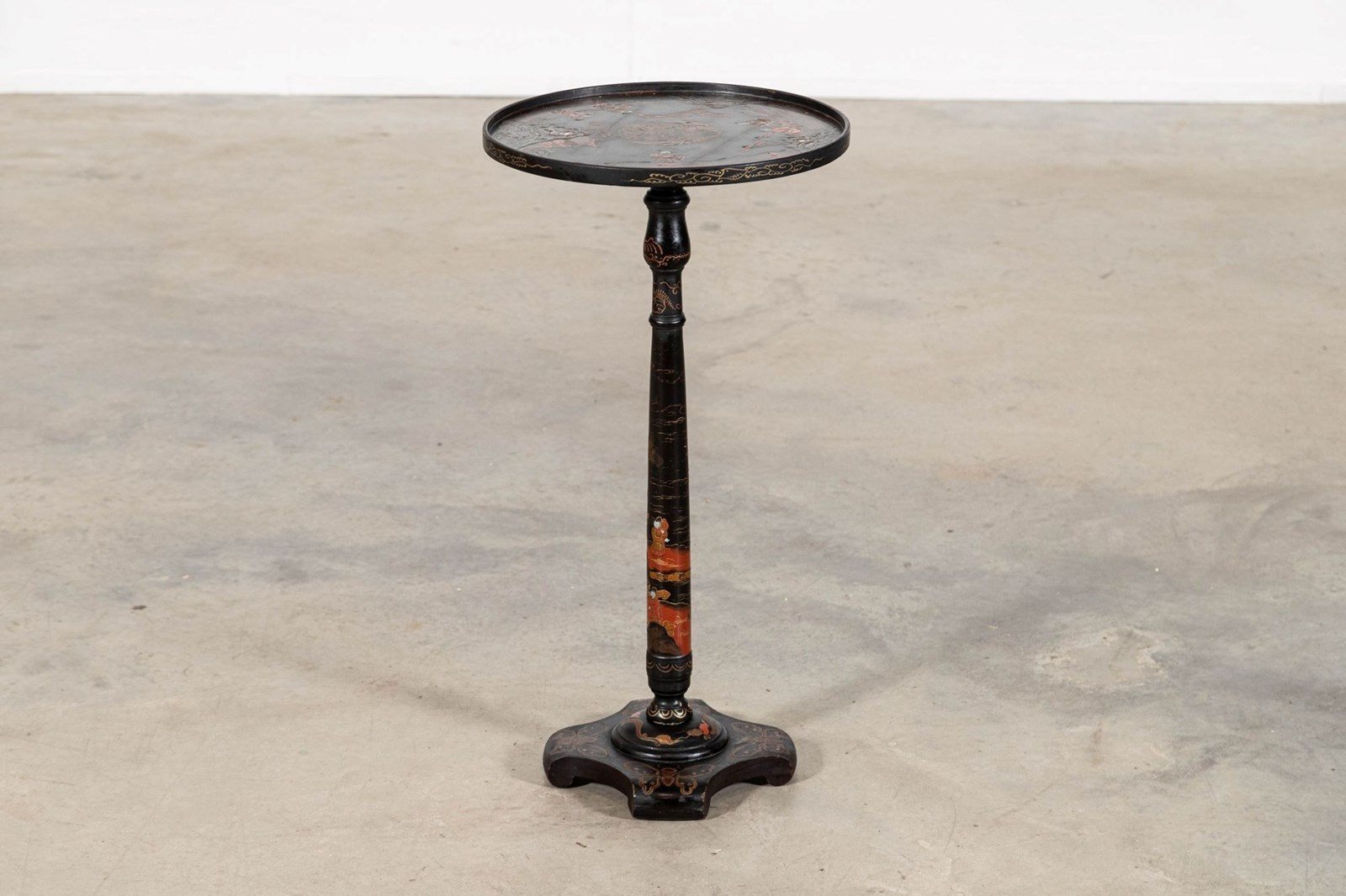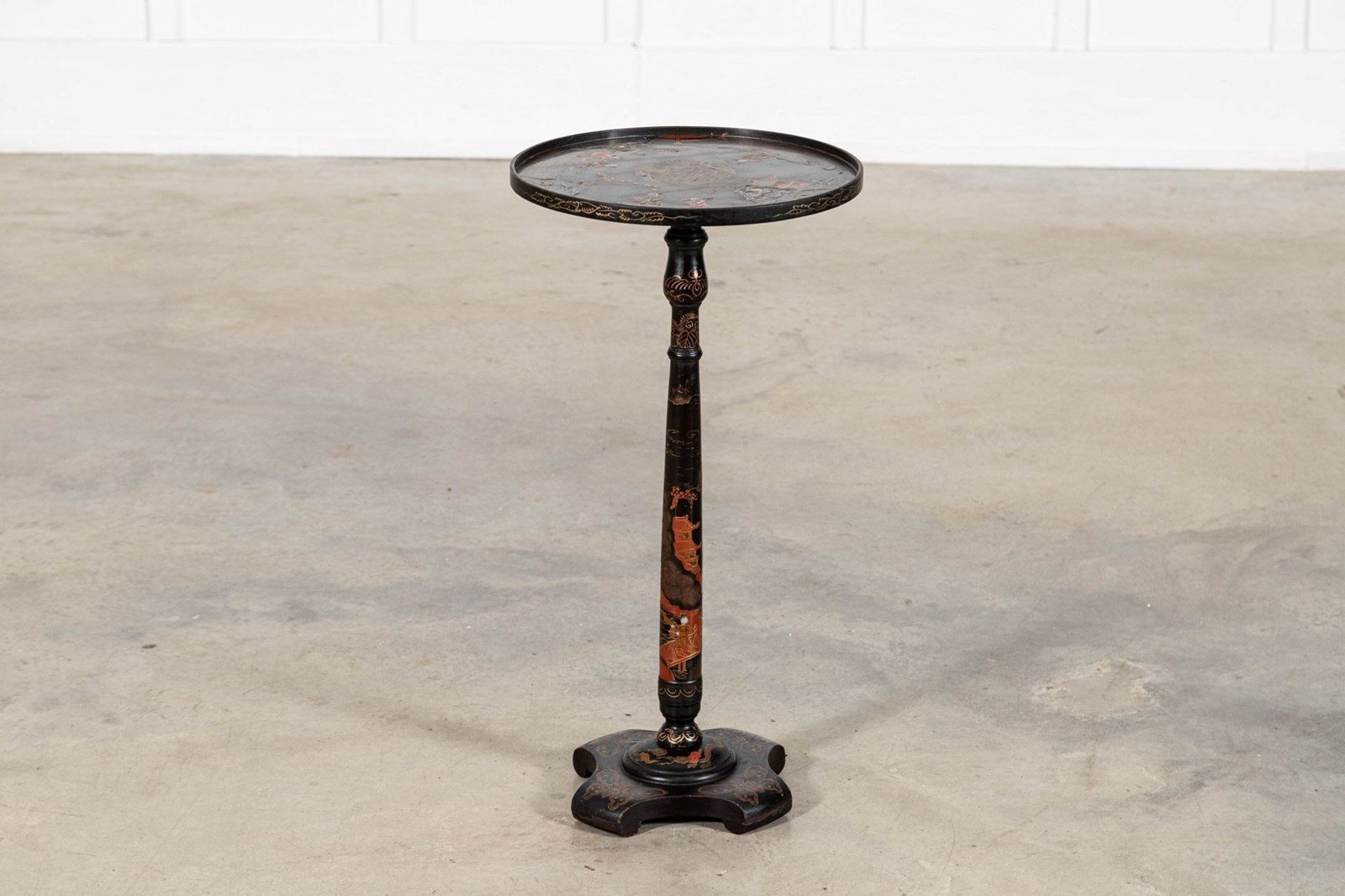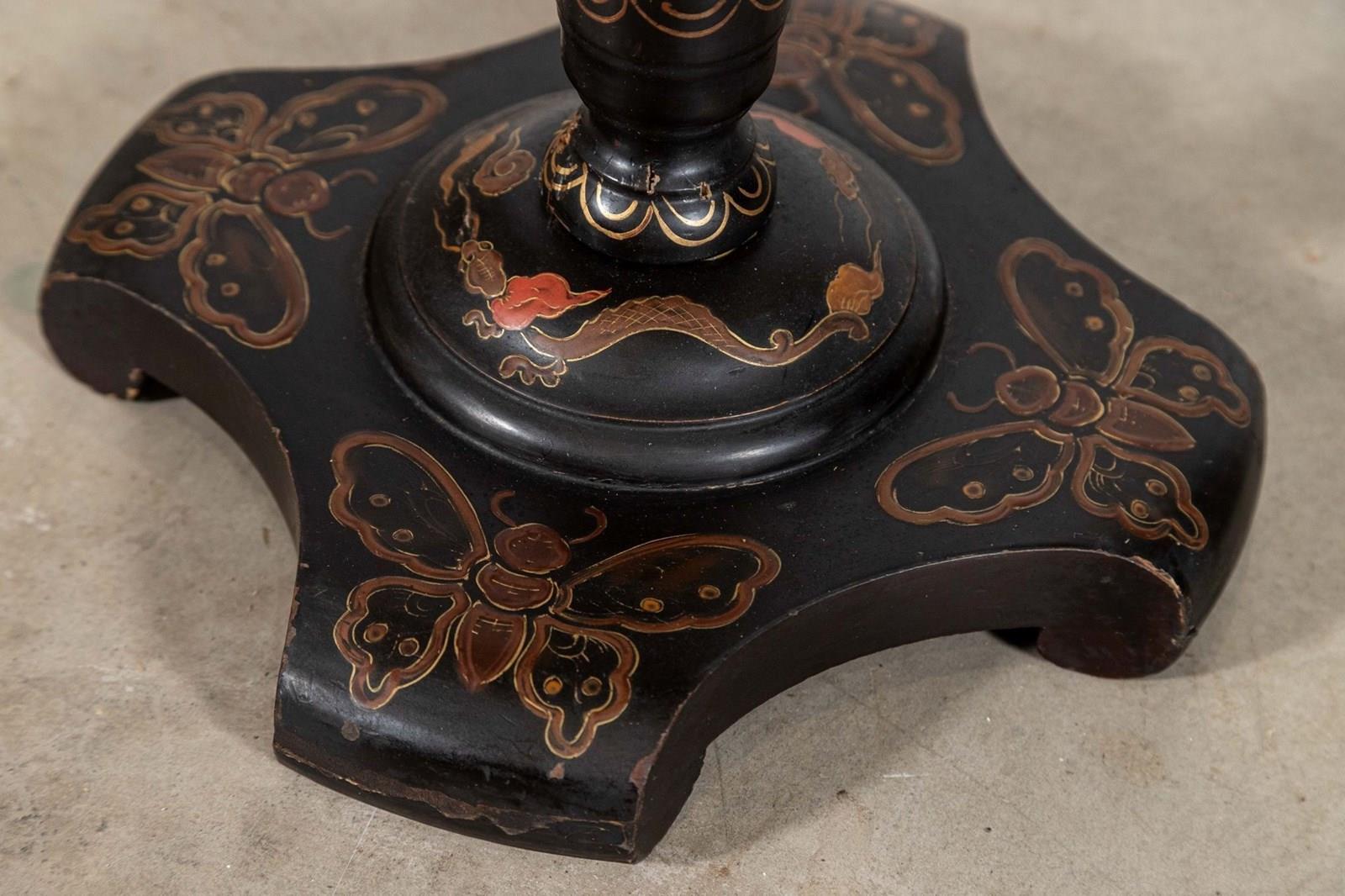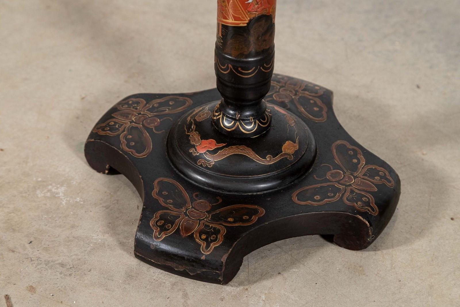 19thC English Chinoiserie Pedestal Side Table