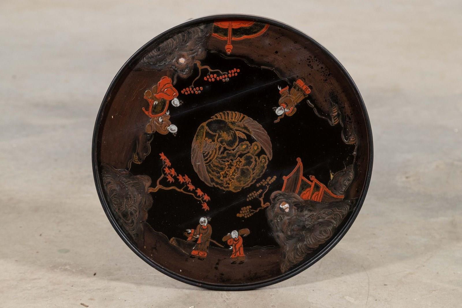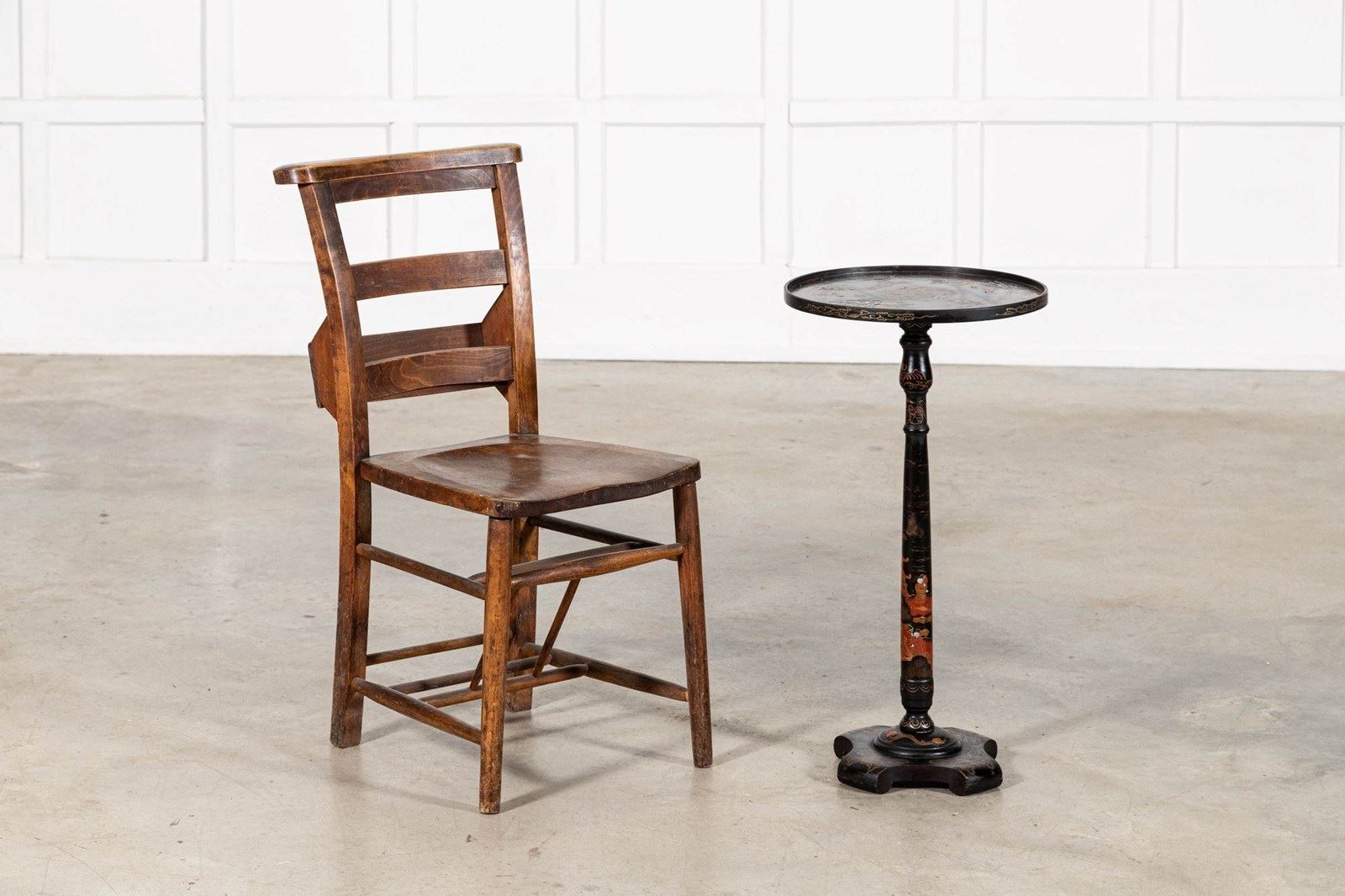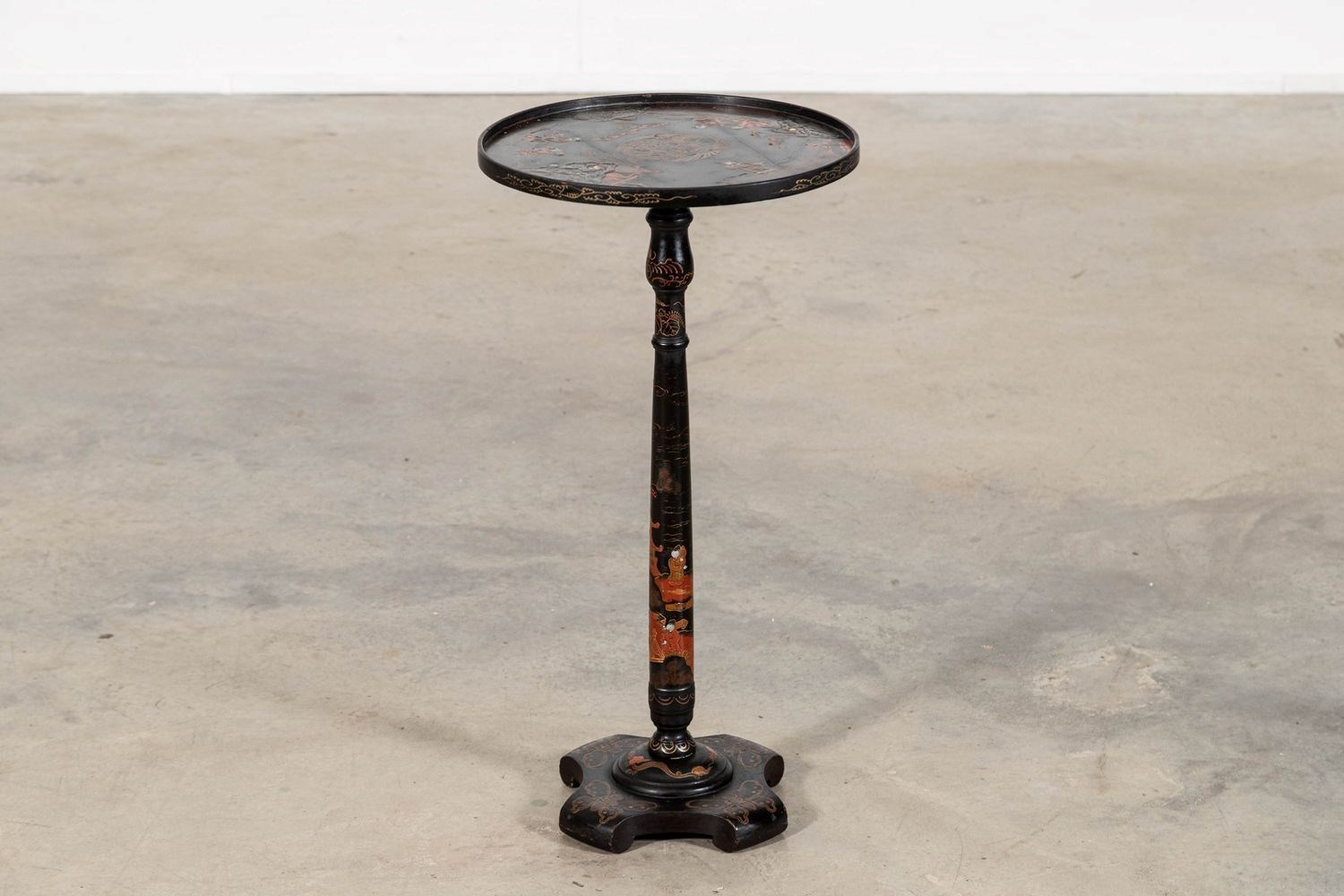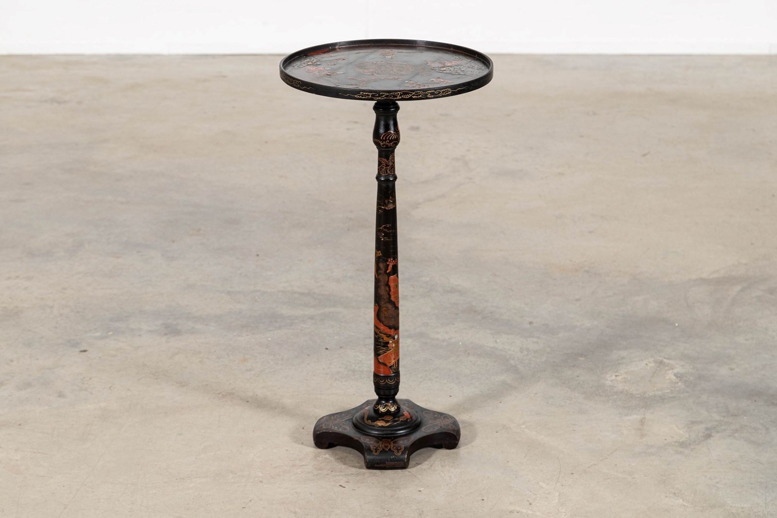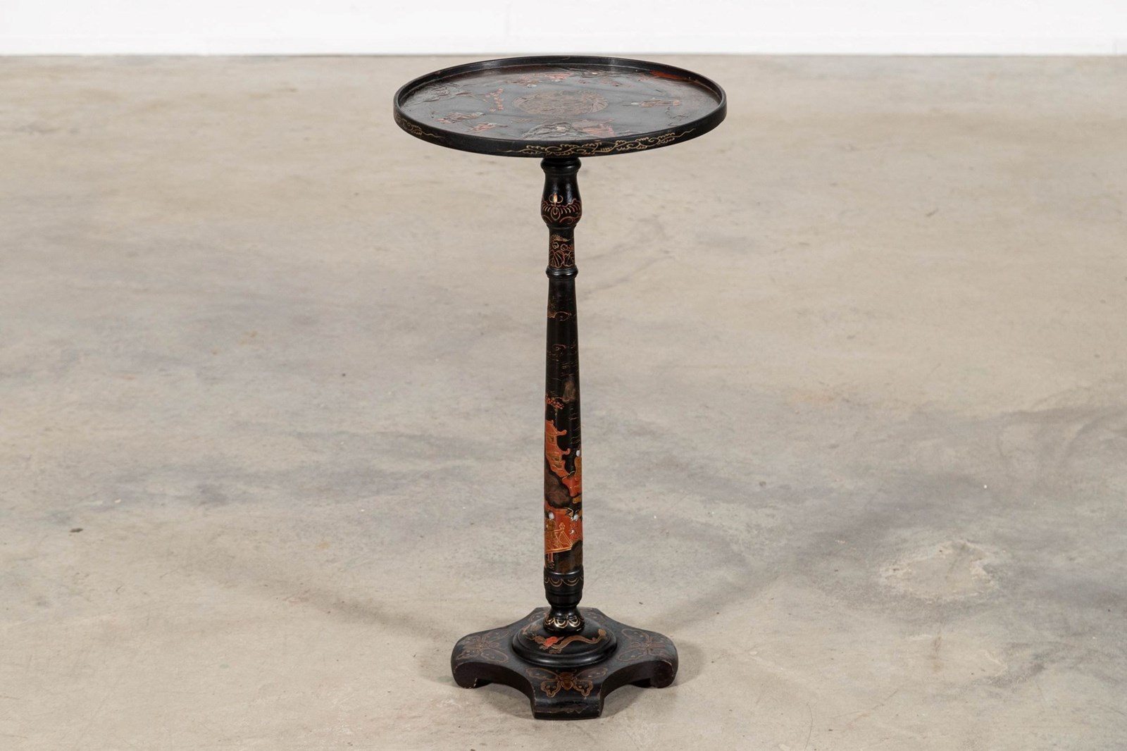 19thC English Chinoiserie Pedestal Side Table
