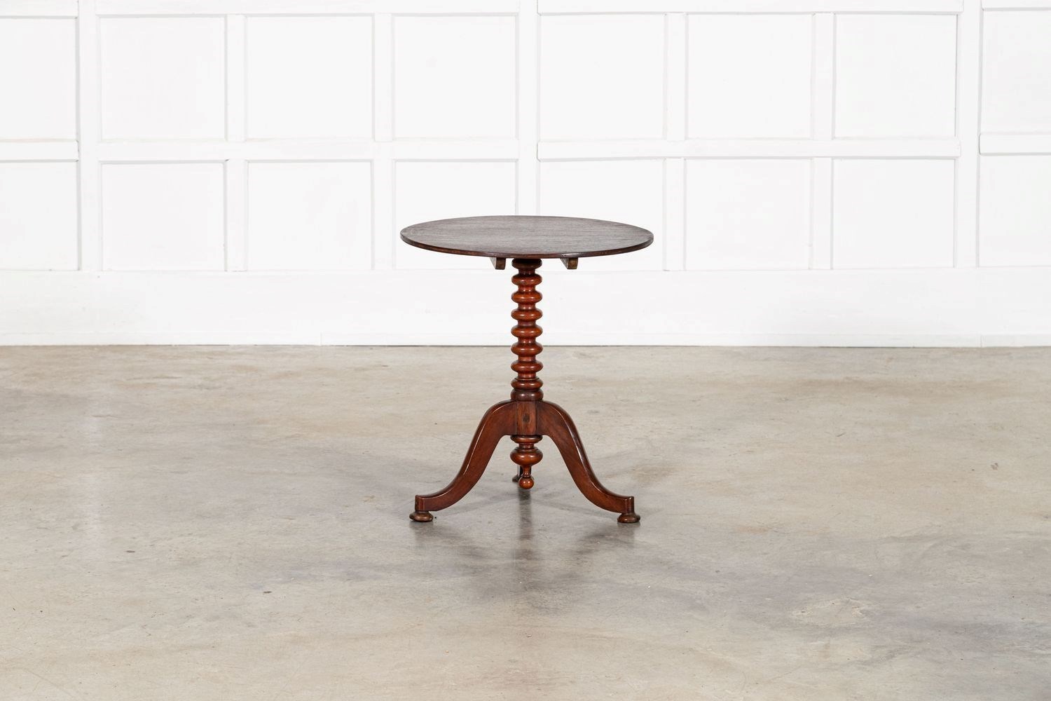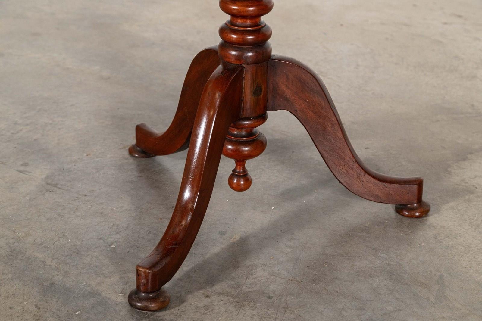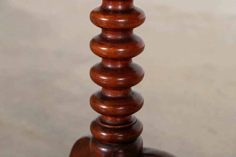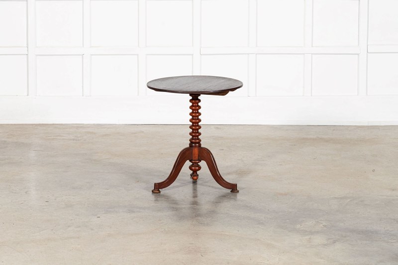 19thC English Mahogany Tilt Top Bobbin Occasional Table