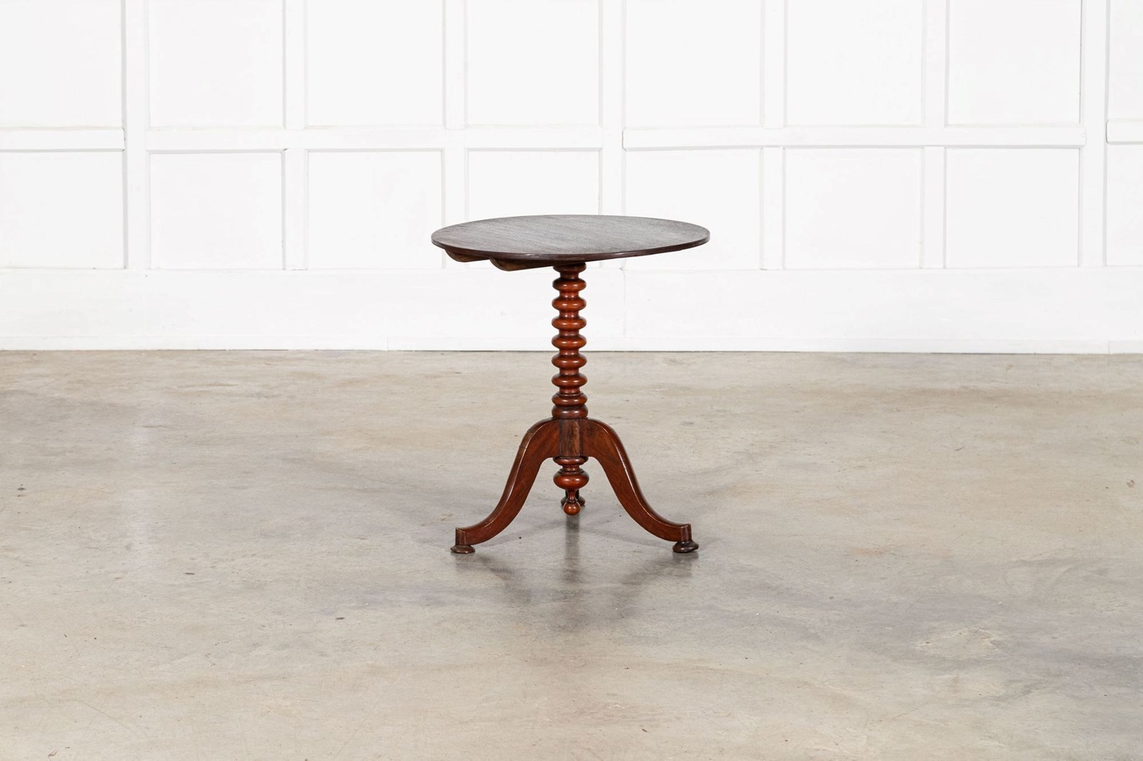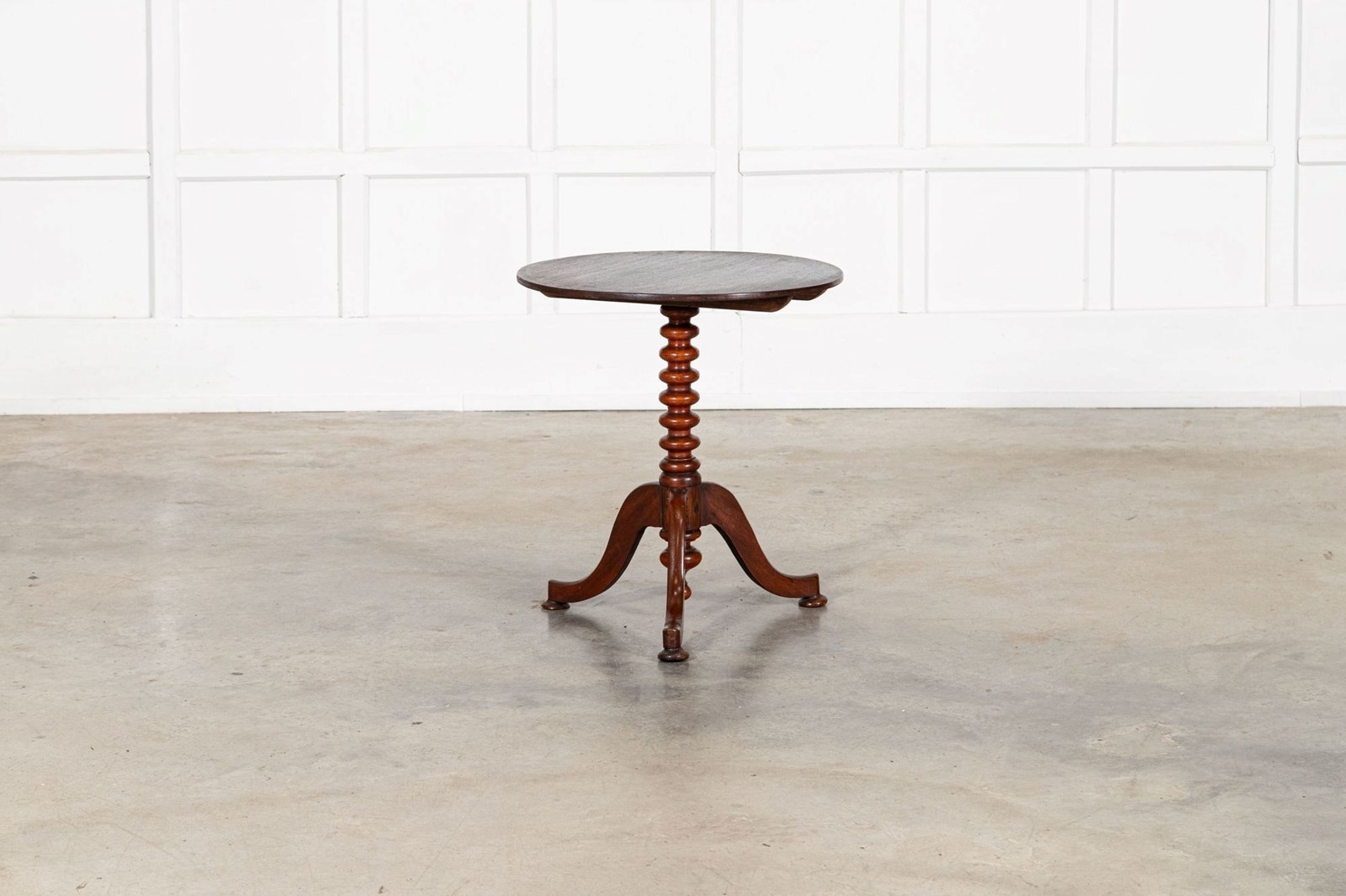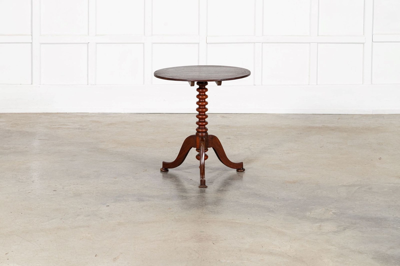 19thC English Mahogany Tilt Top Bobbin Occasional Table