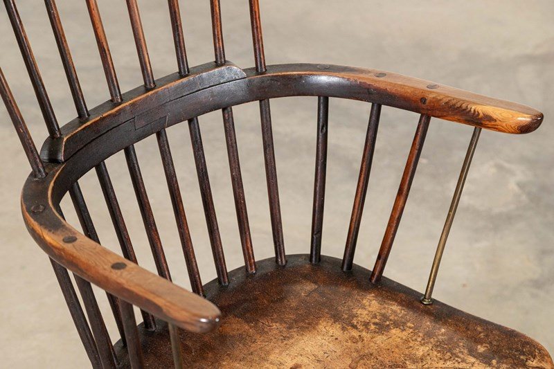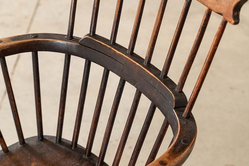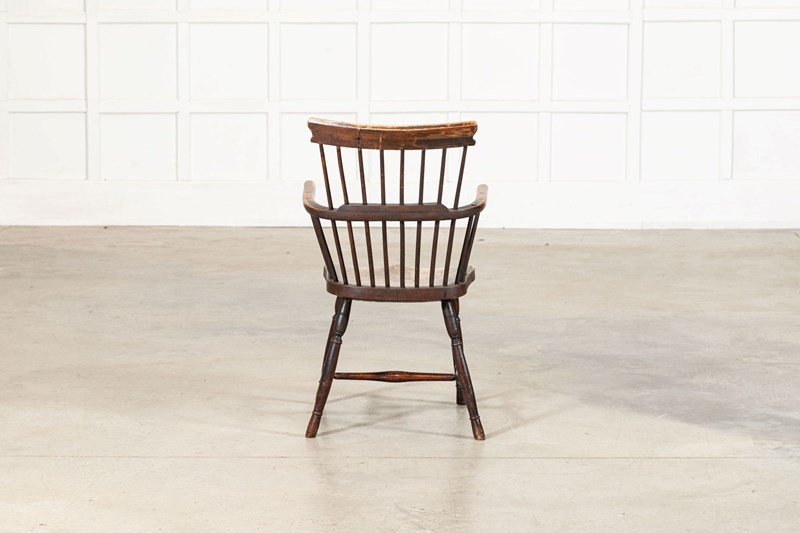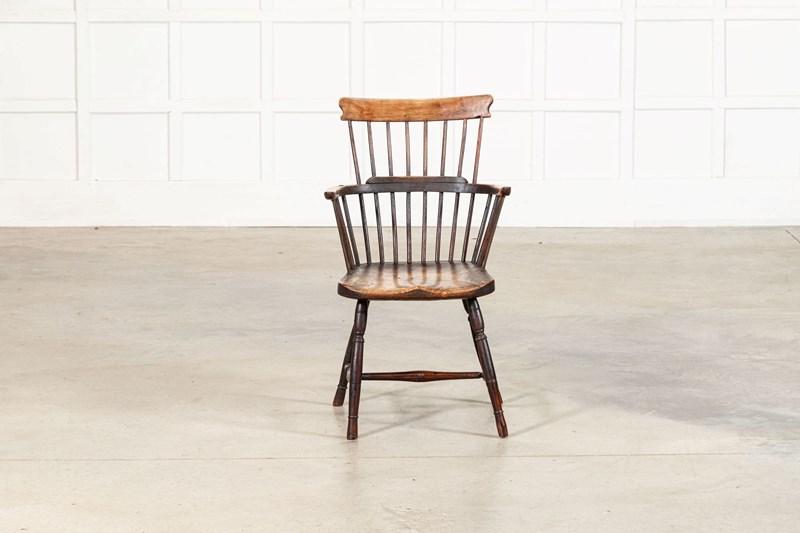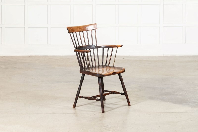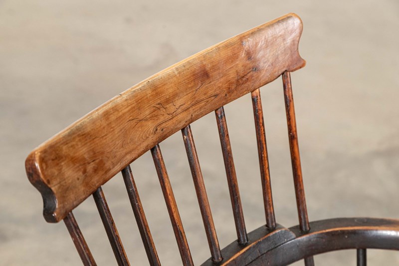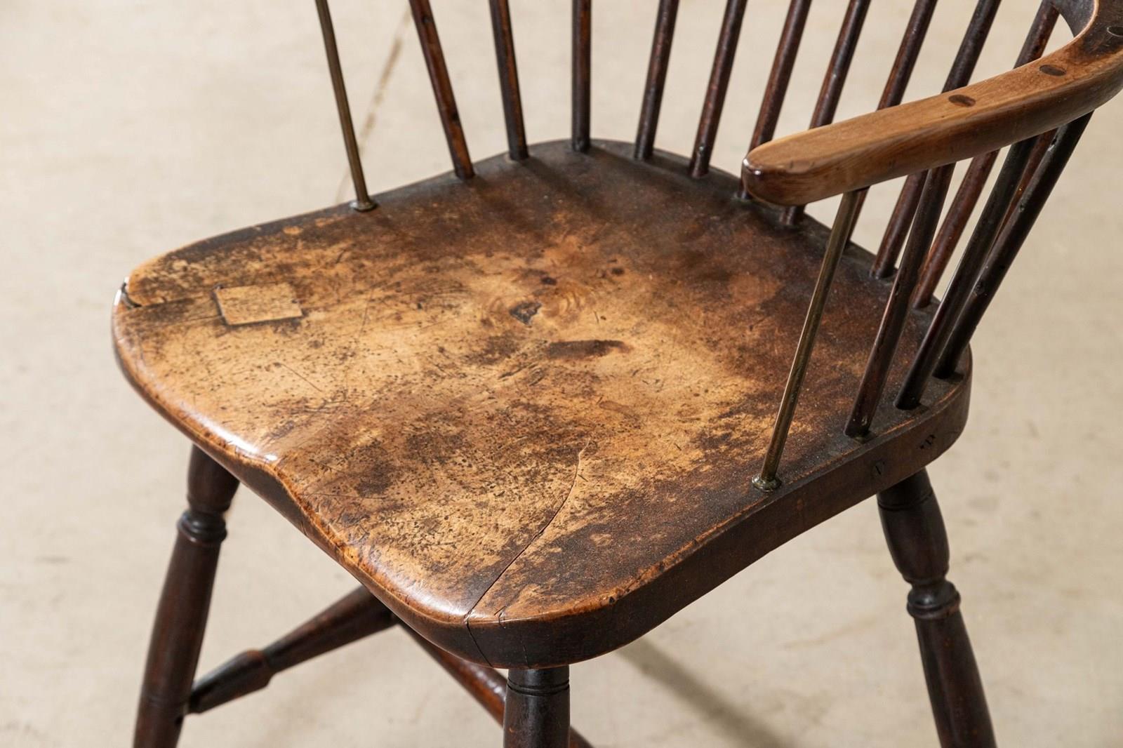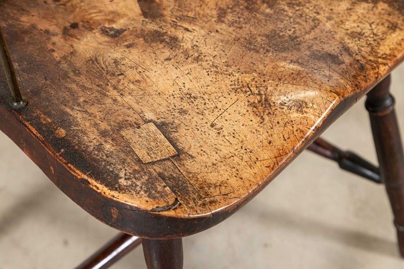 19thC English Yew & Fruitwood Stick Back Windsor Chair