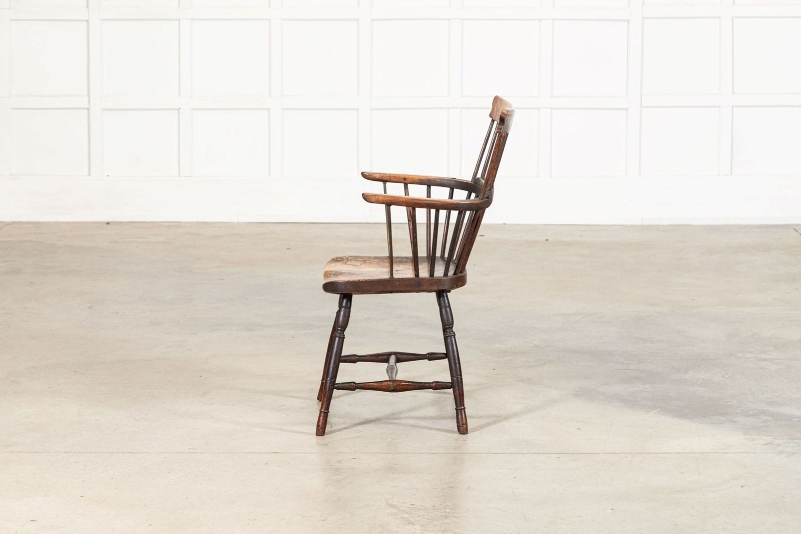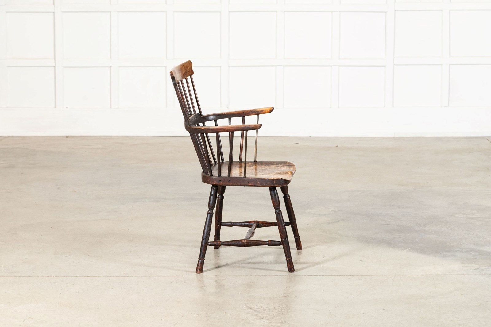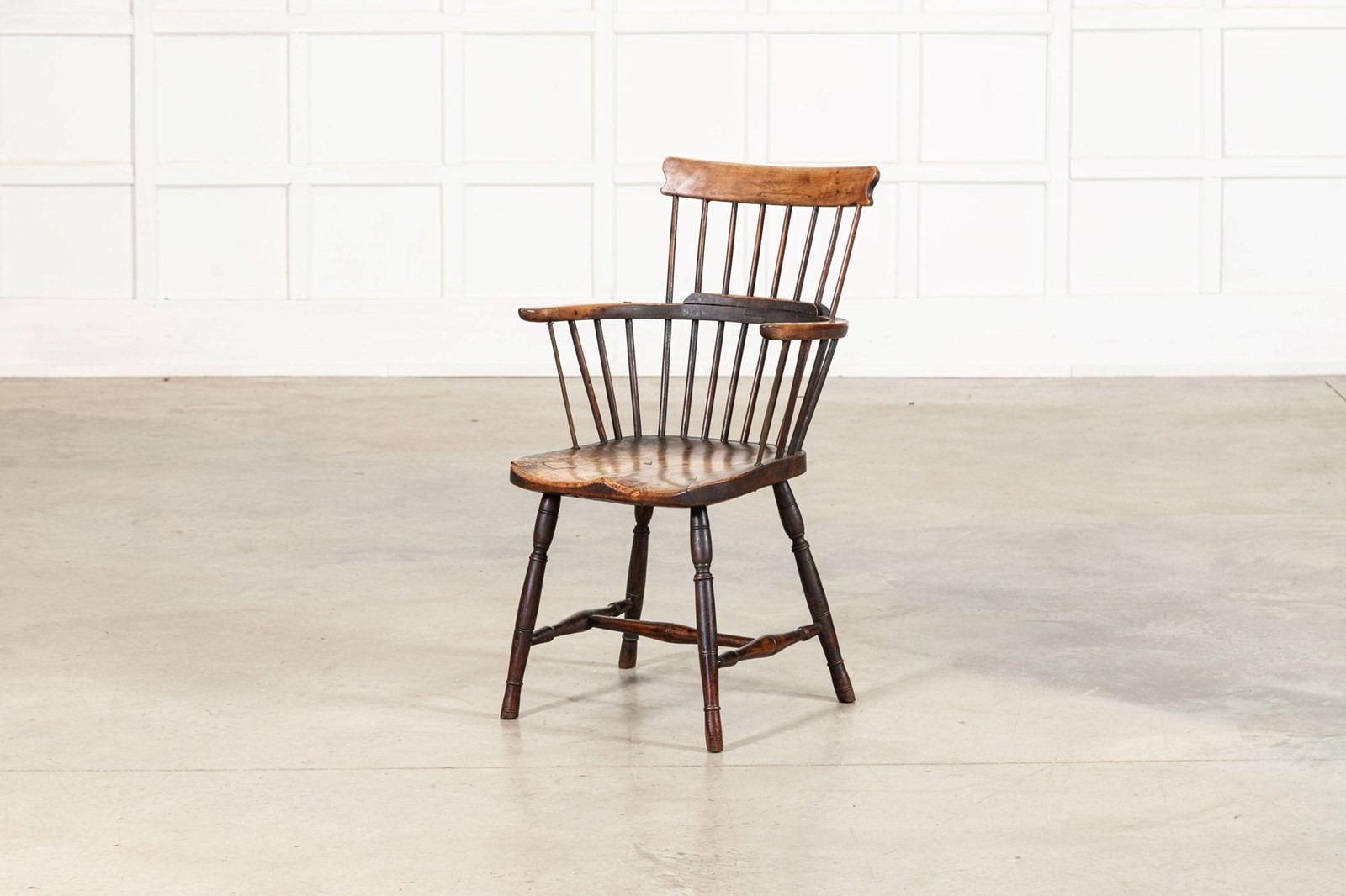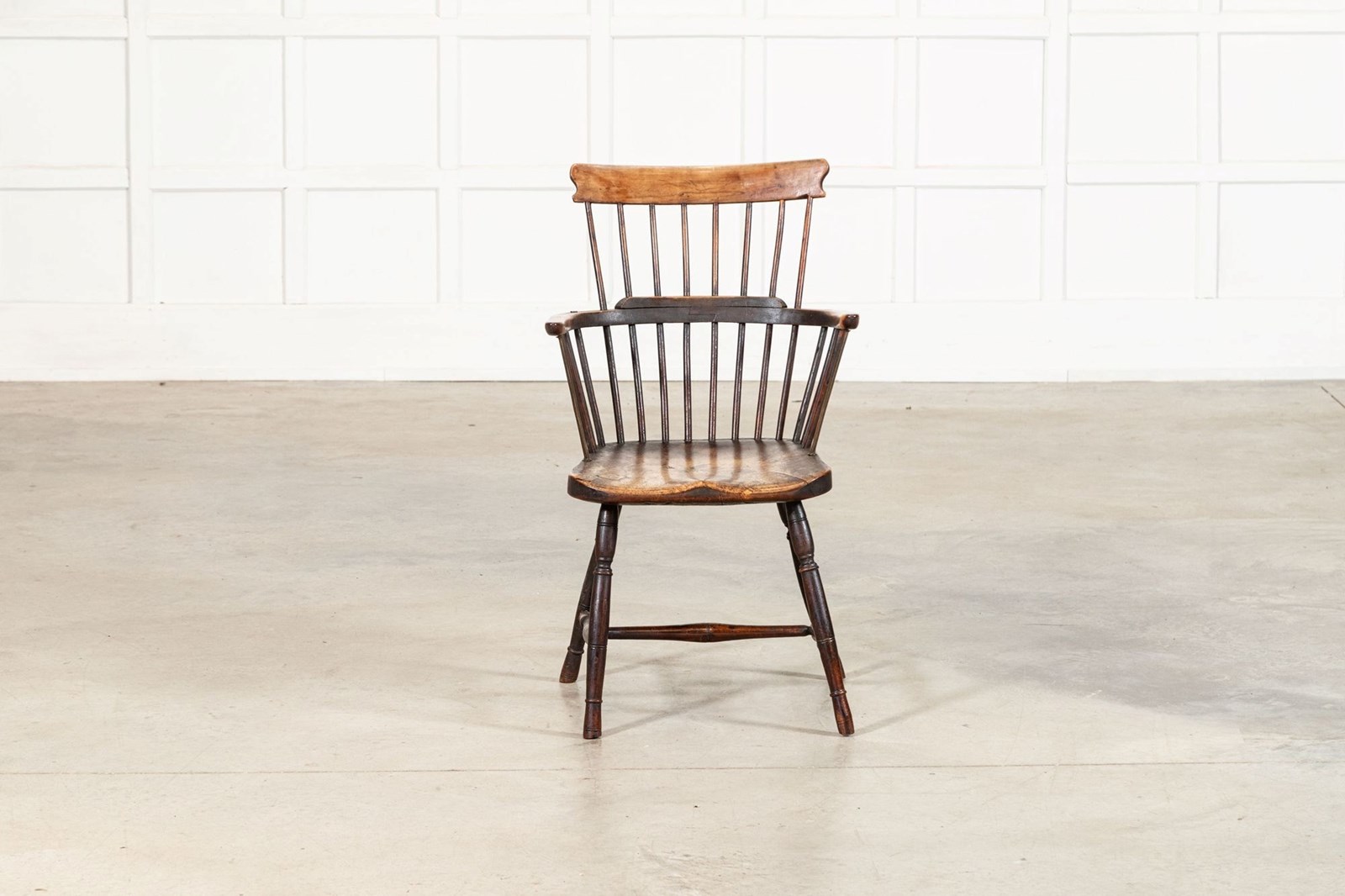 19thC English Yew & Fruitwood Stick Back Windsor Chair