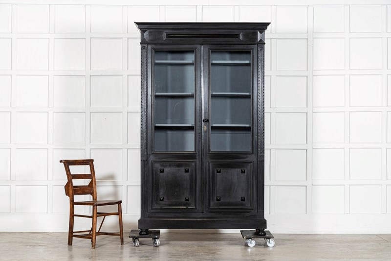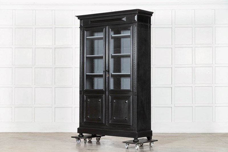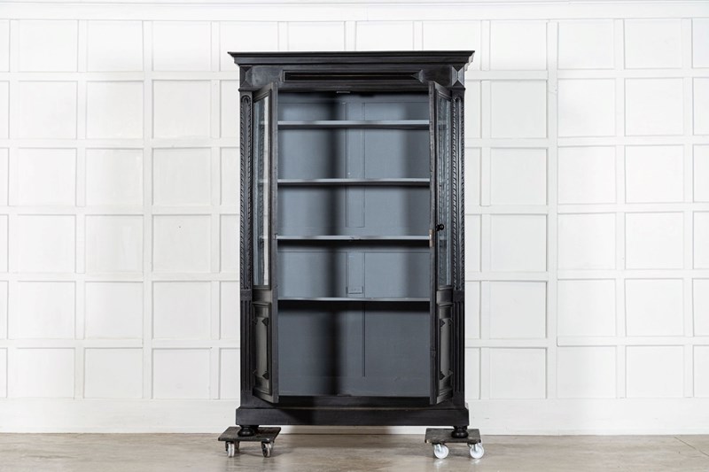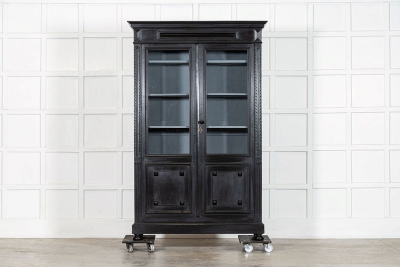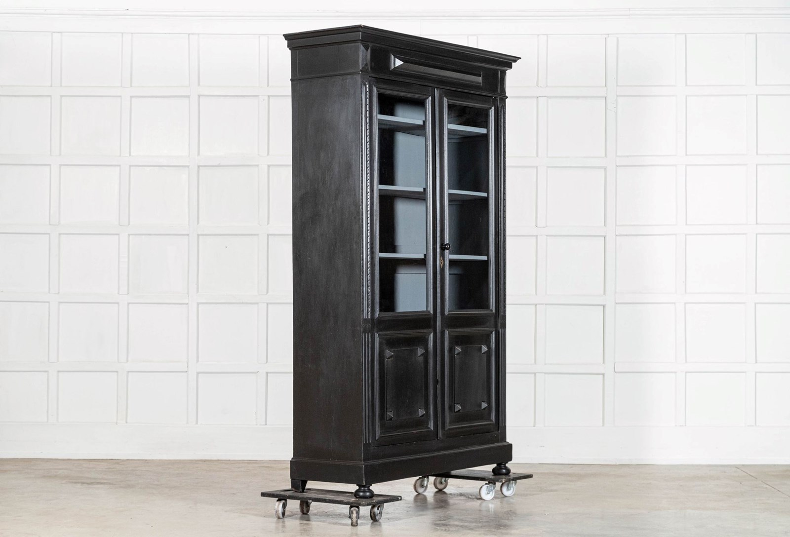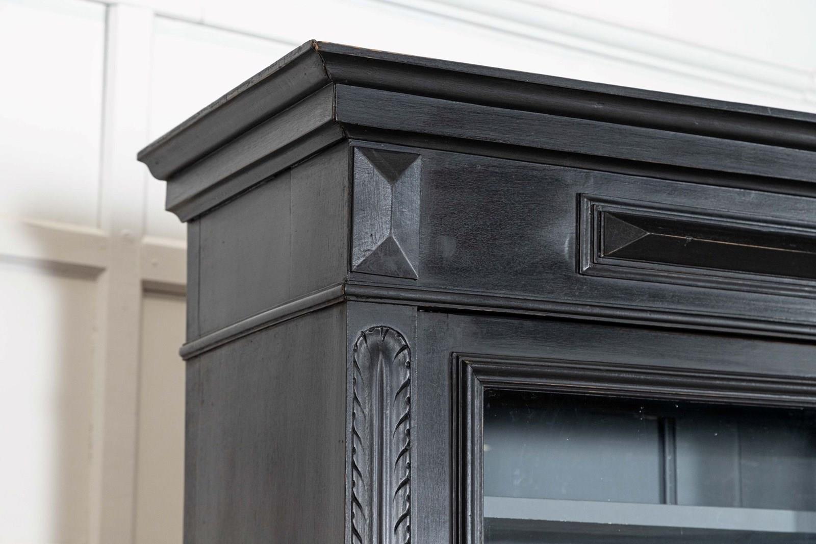 19Thc French Ebonised Glazed Bookcase Vitrine