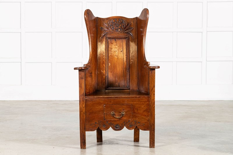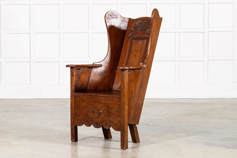 Early 18Thc Oak & Pine Carved Lambing Chair