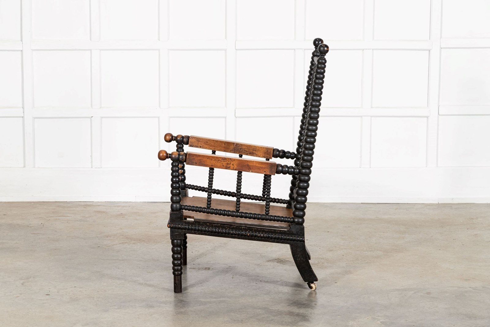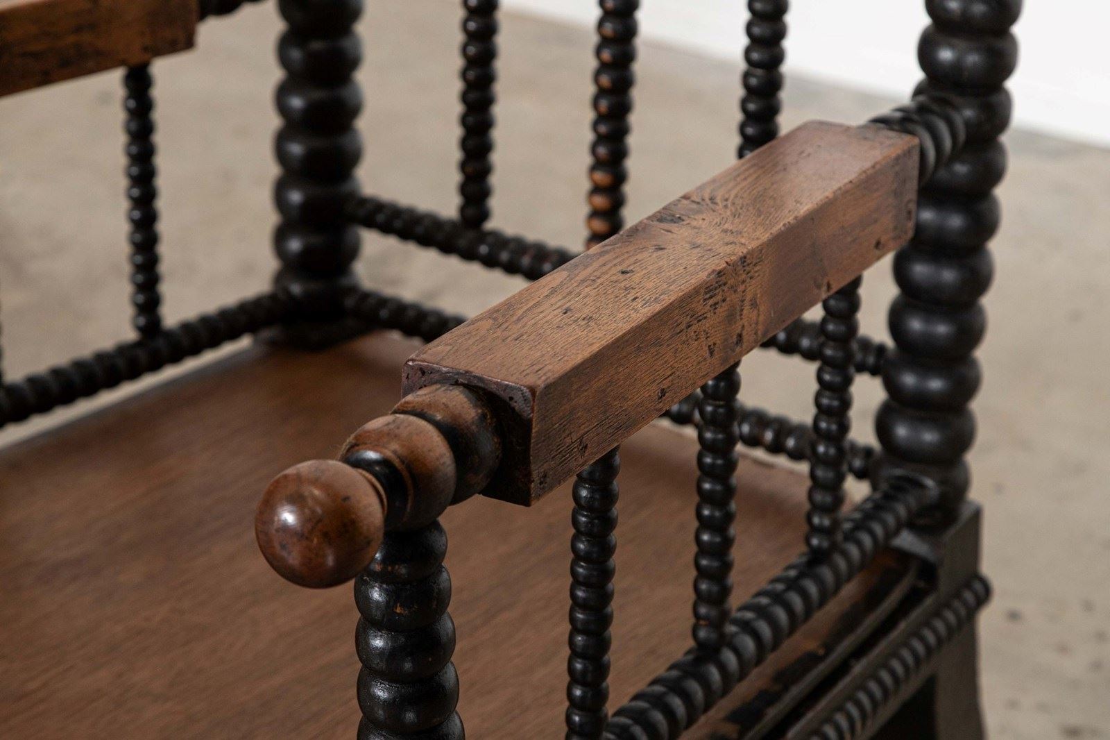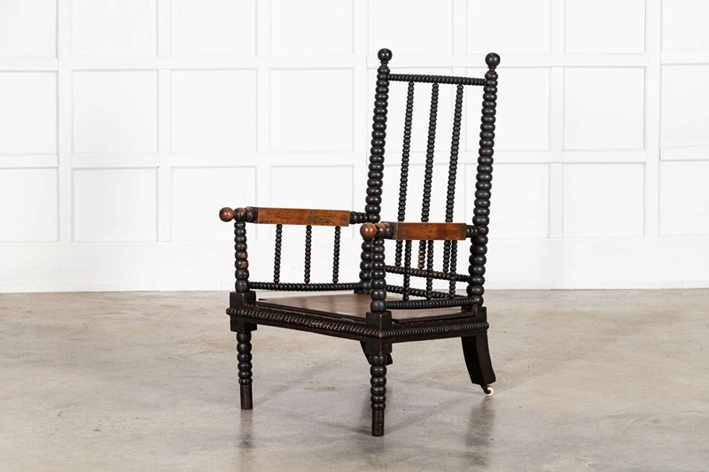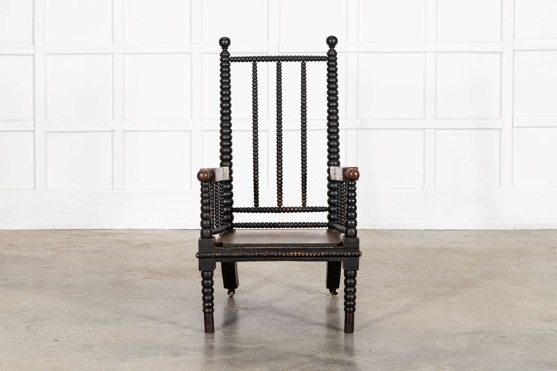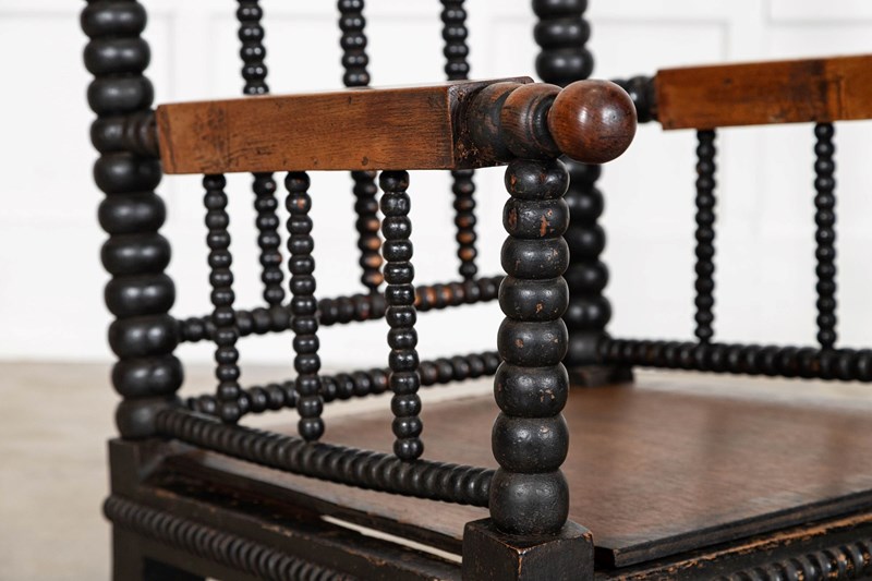 English 19thC Ebonised Bobbin Ash Elbow Chair