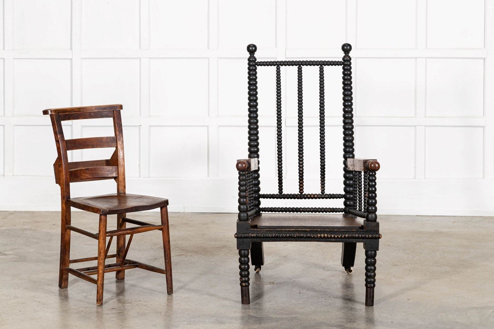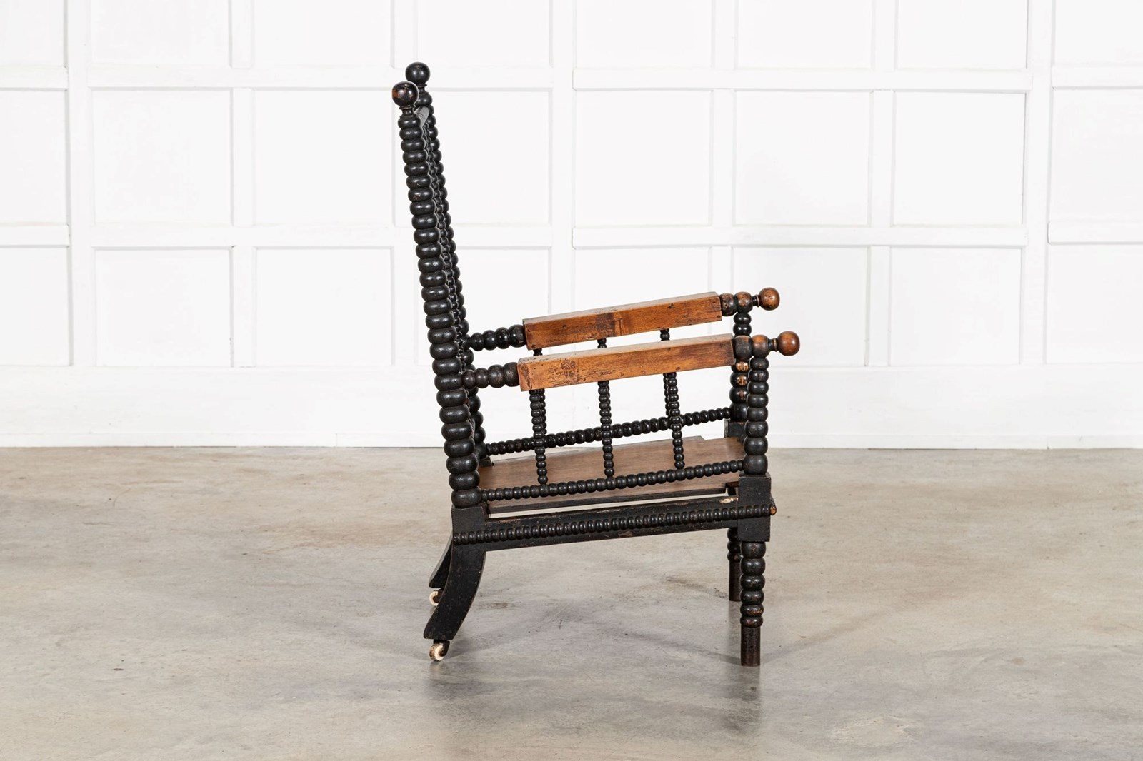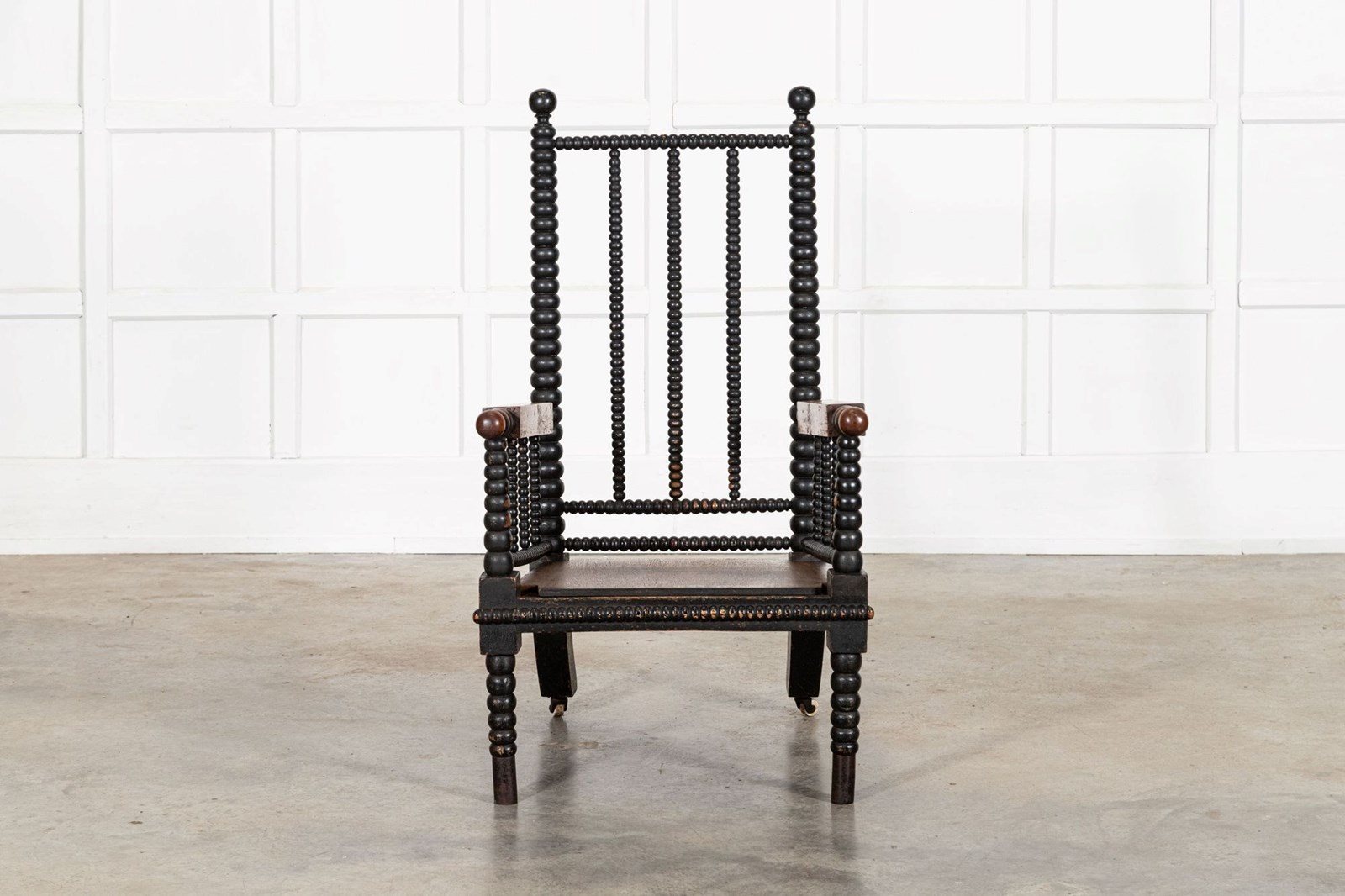 English 19thC Ebonised Bobbin Ash Elbow Chair