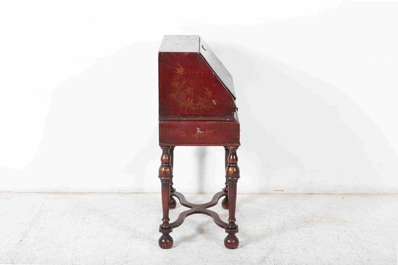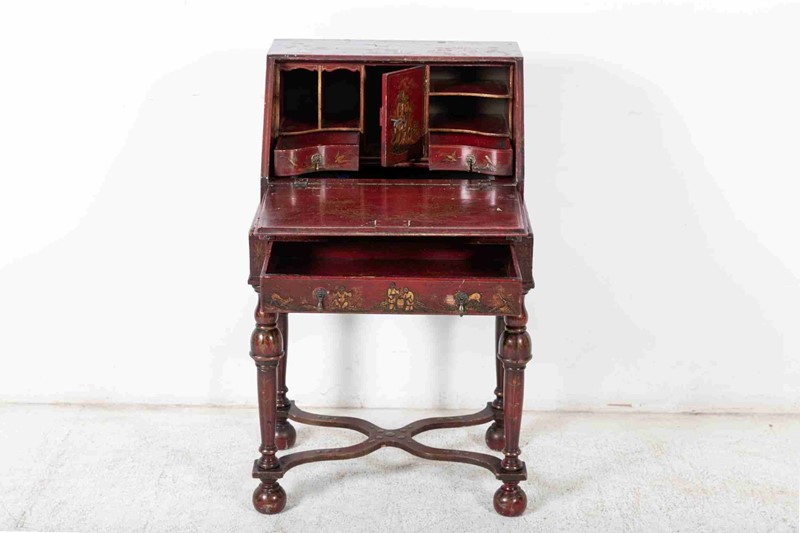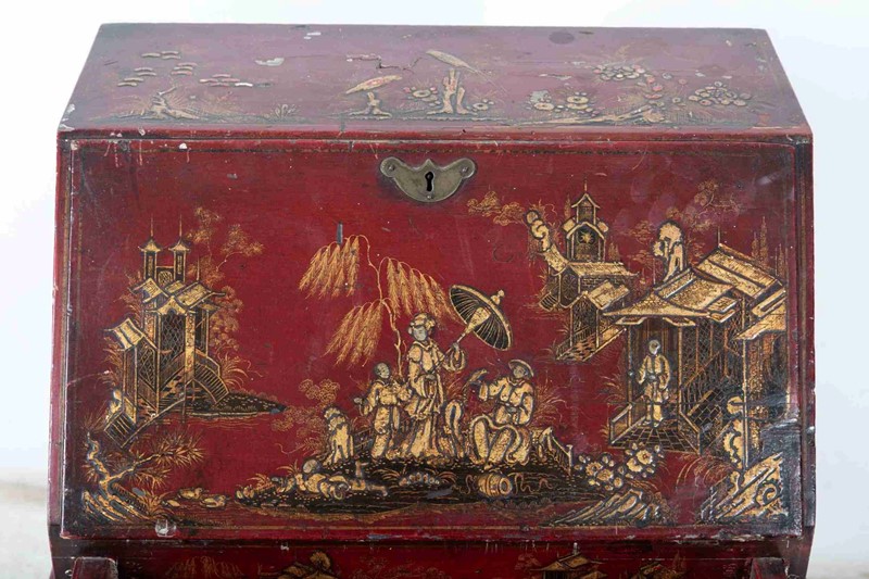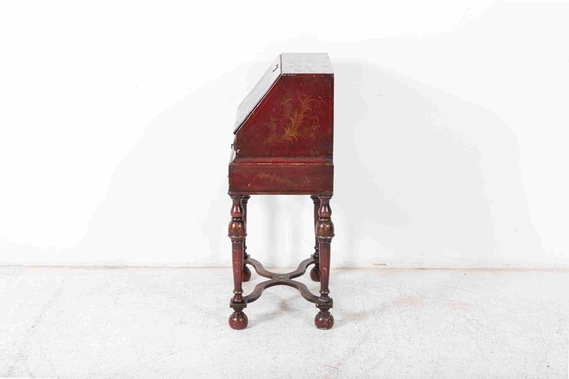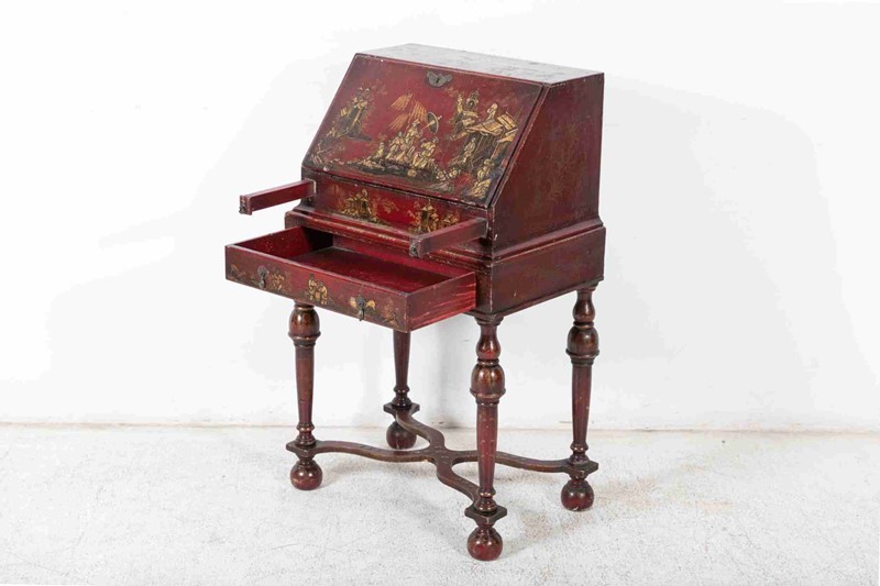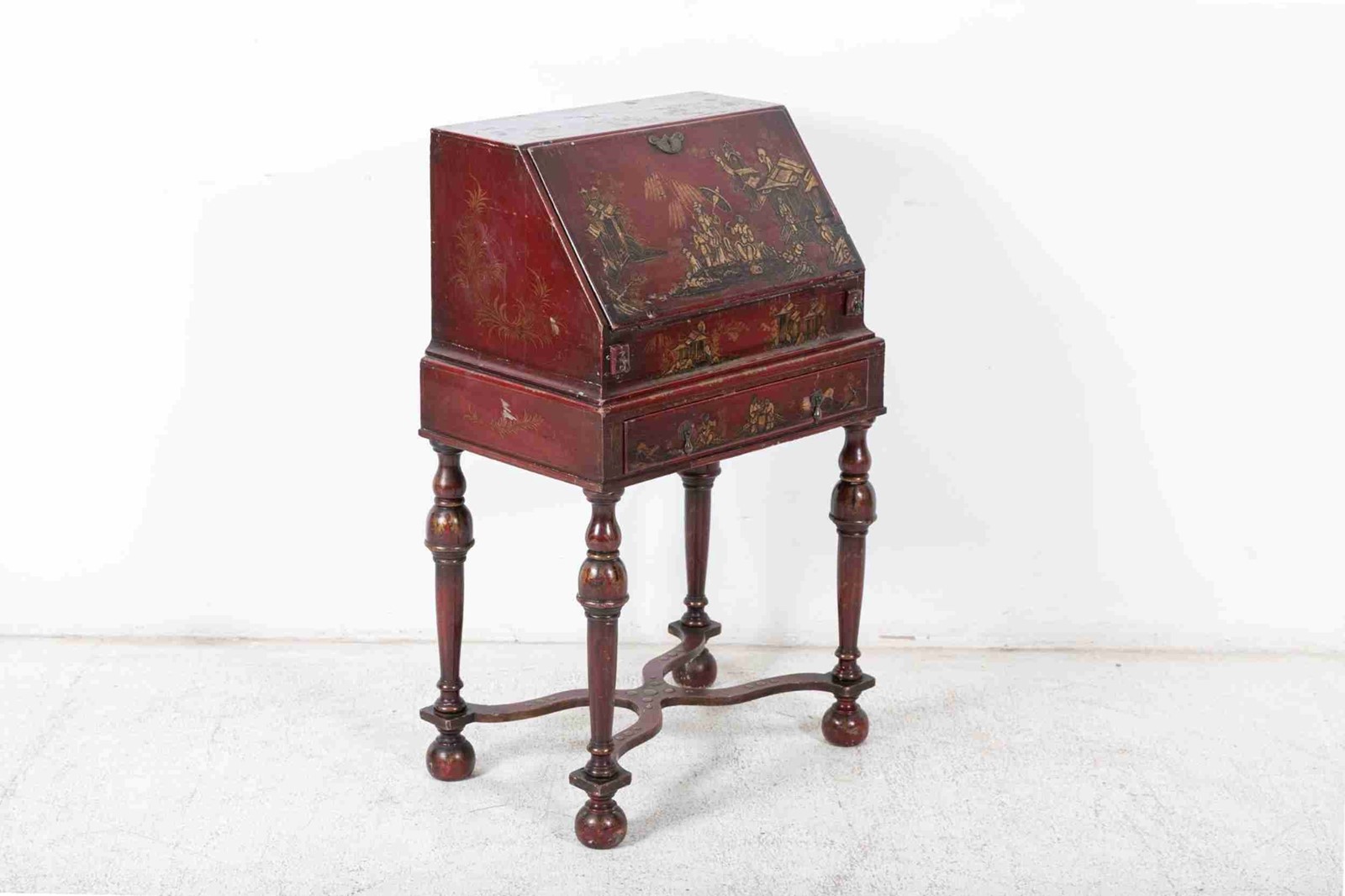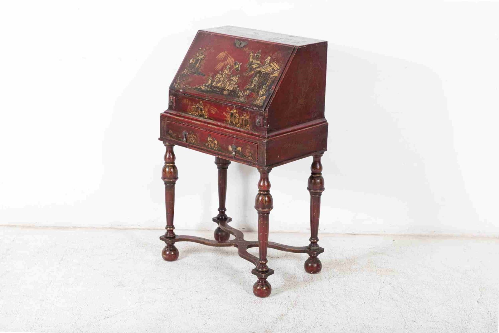 English Decorative Chinoiserie Bureau Writing Desk - Bonheur Du Jour. Great colour and patina with chinoiserie decoration. Circa 1900.