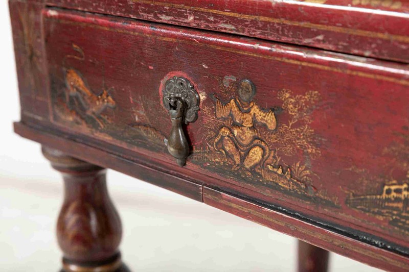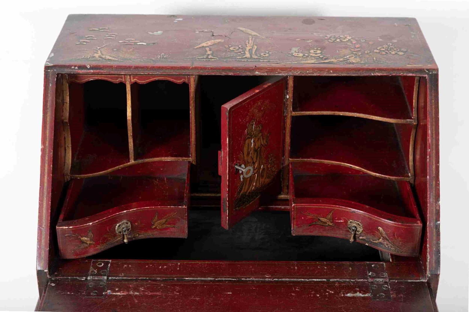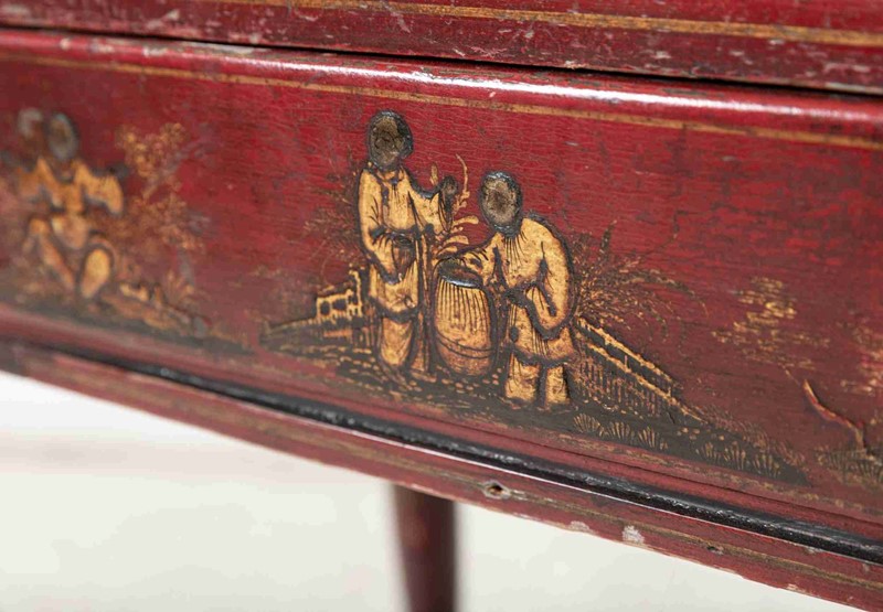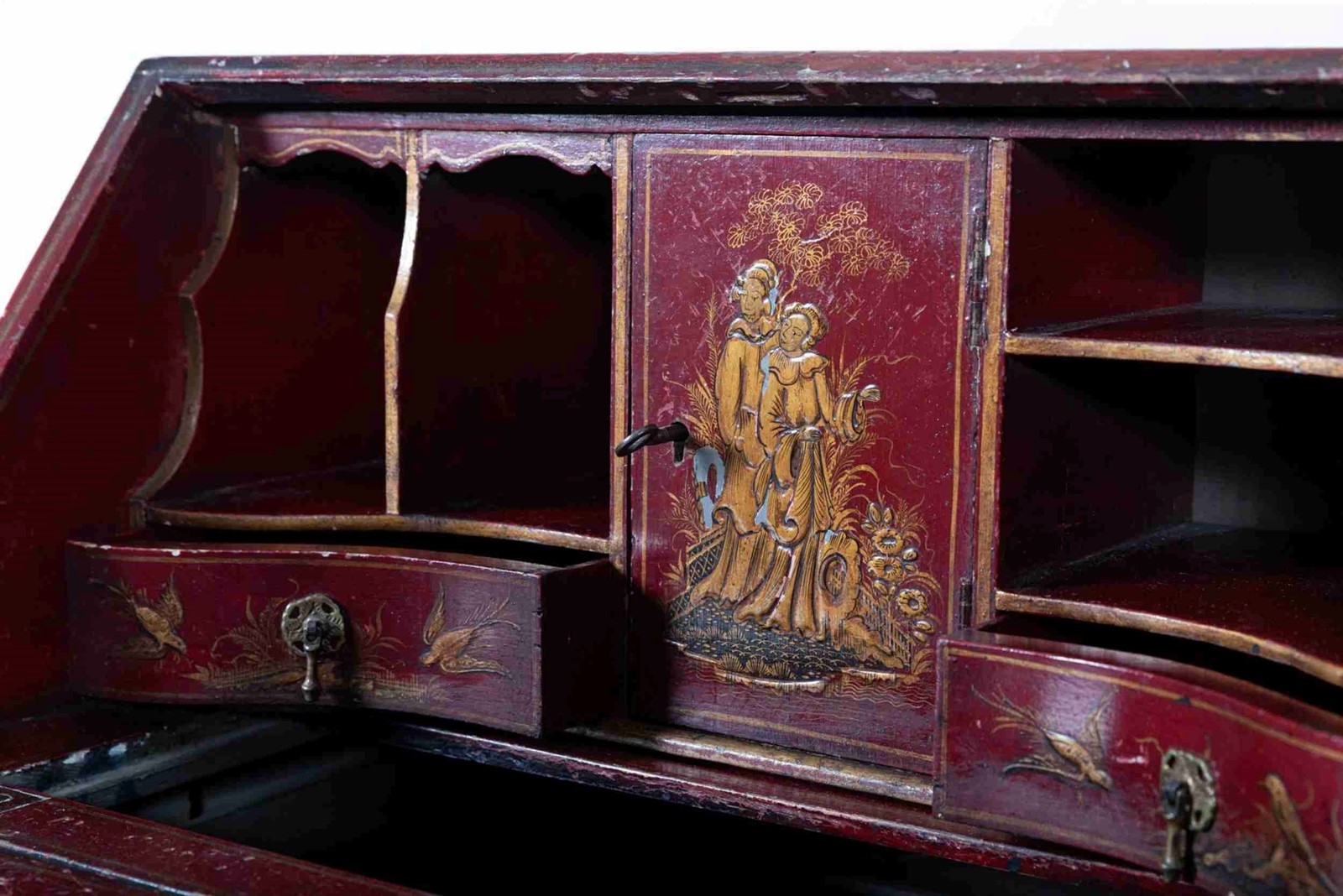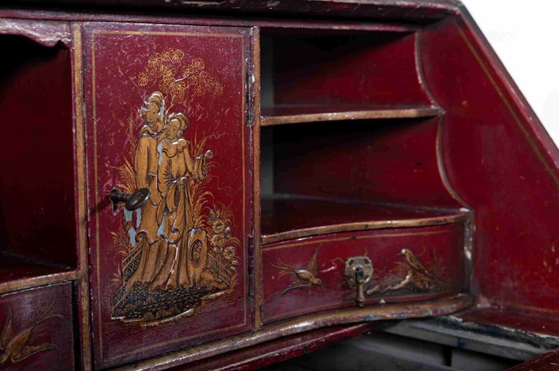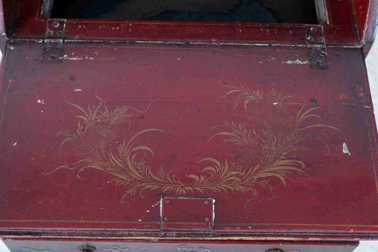 English Decorative Chinoiserie Bureau Writing Desk - Bonheur Du Jour. Great colour and patina with chinoiserie decoration. Circa 1900.