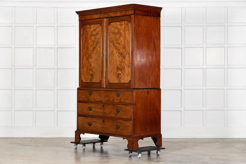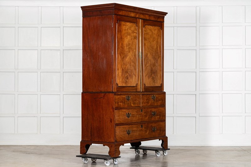 English George III Walnut Linen Press