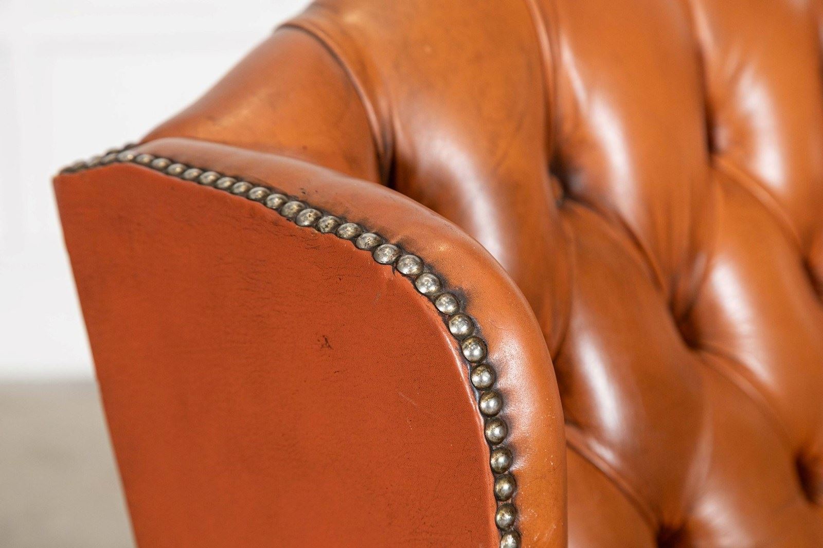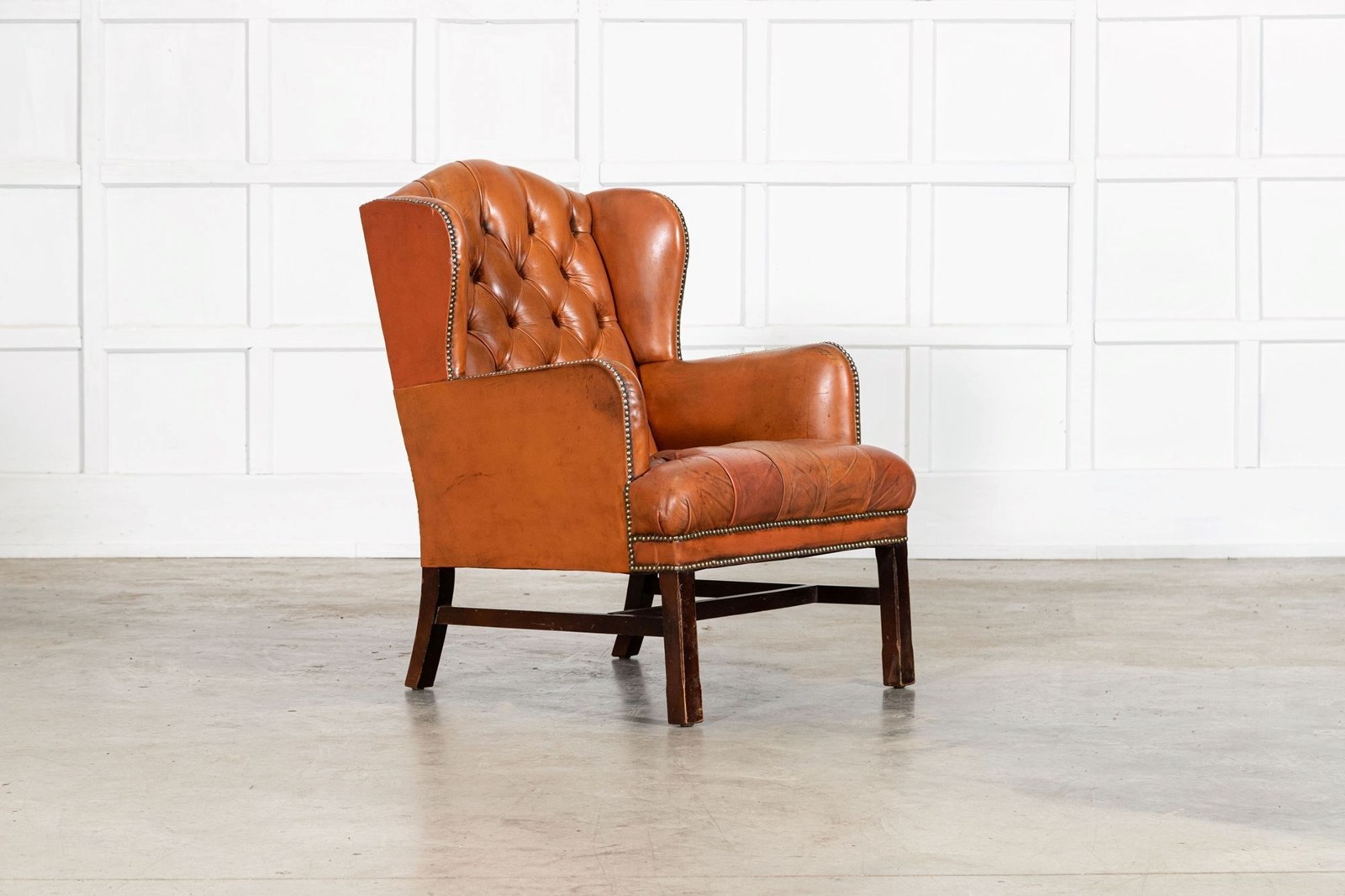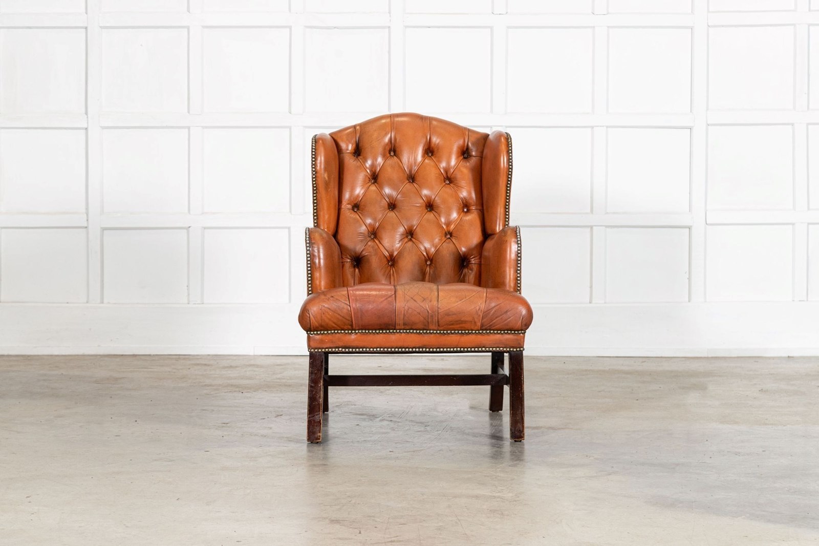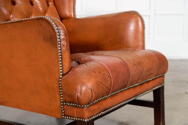 English Tan Leather Wingback Armchair