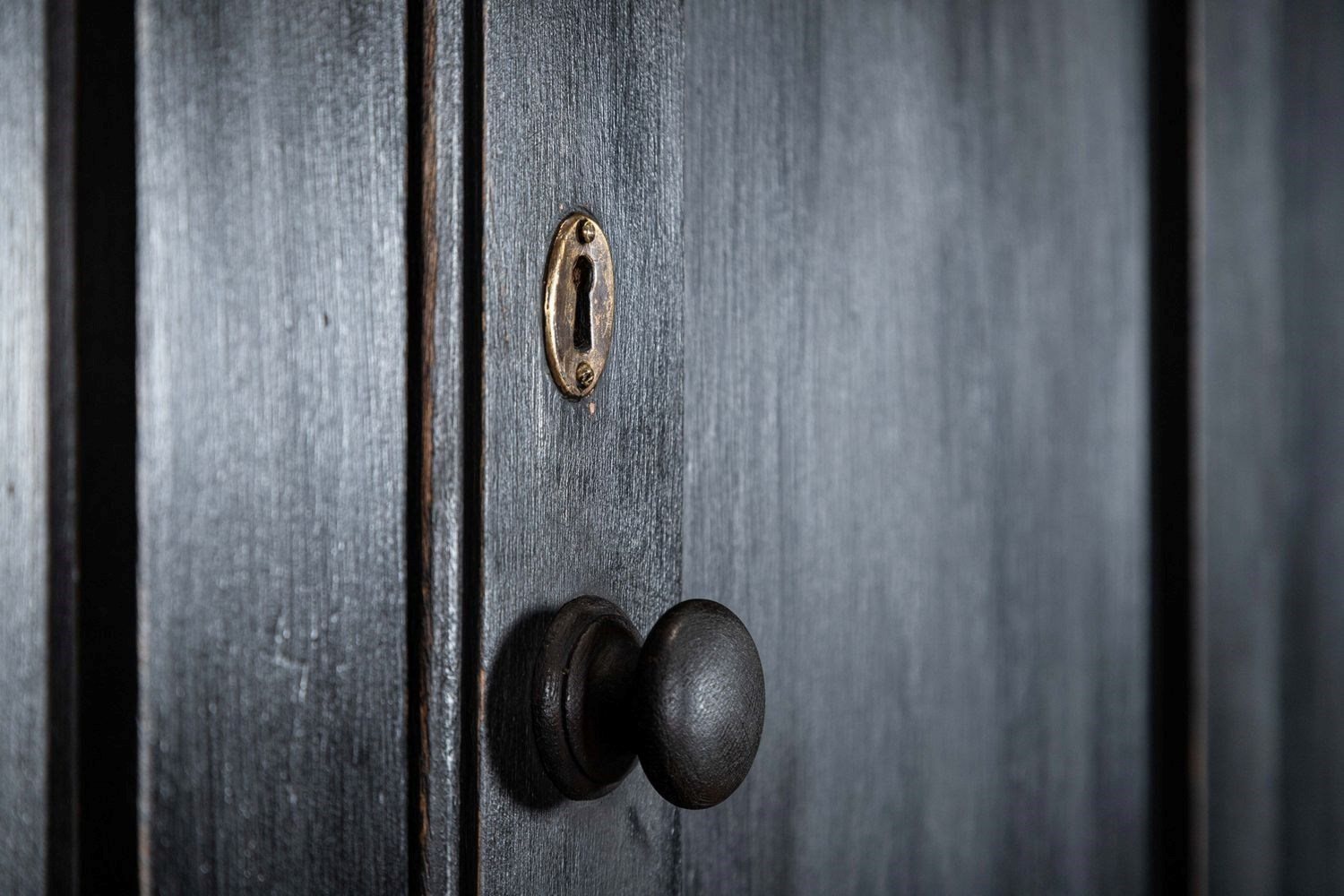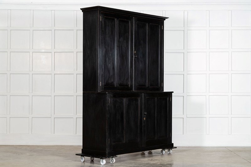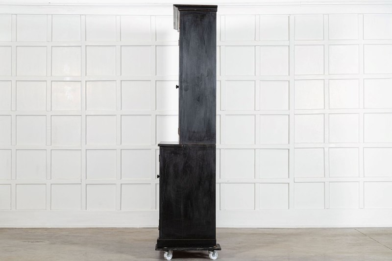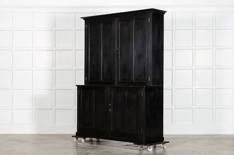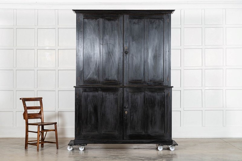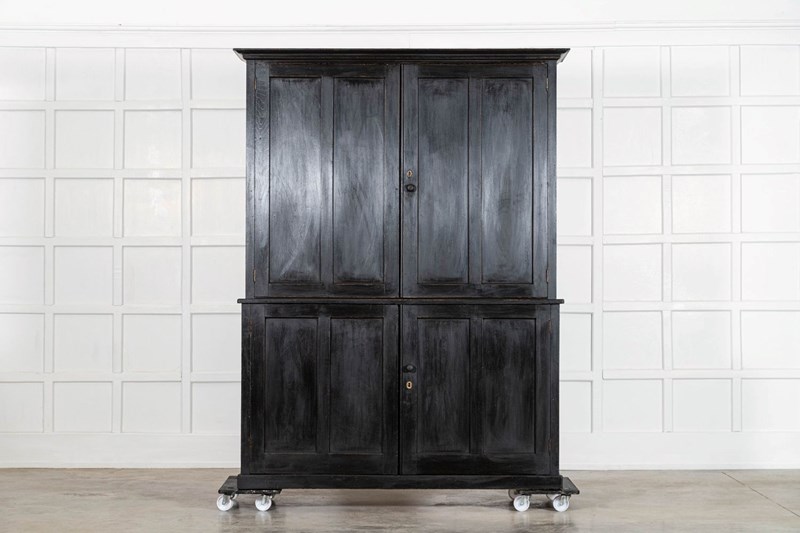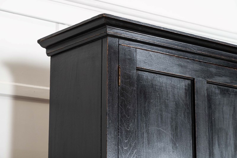 Large 19Thc Ebonised English Ash Linen Cupboard