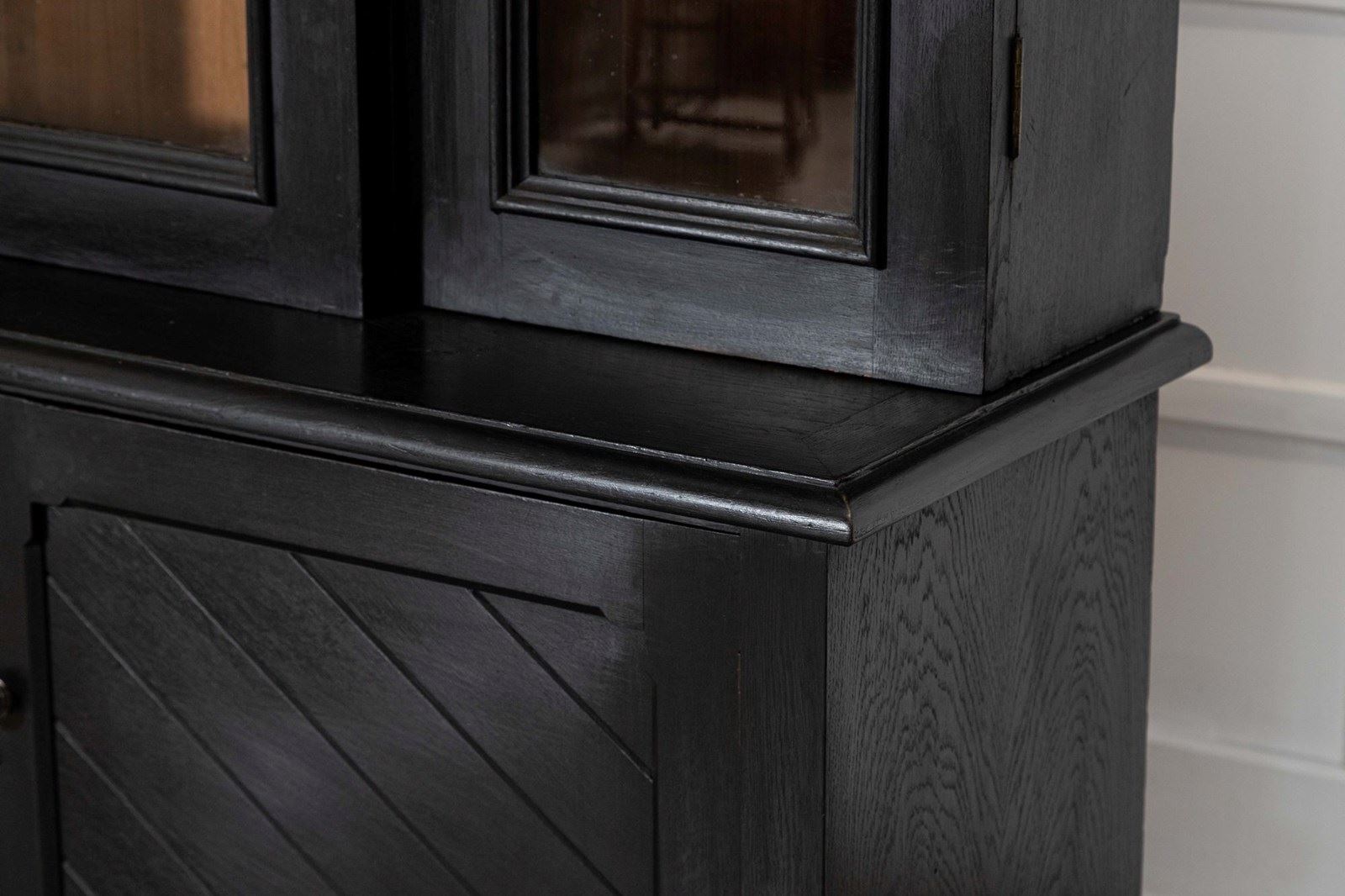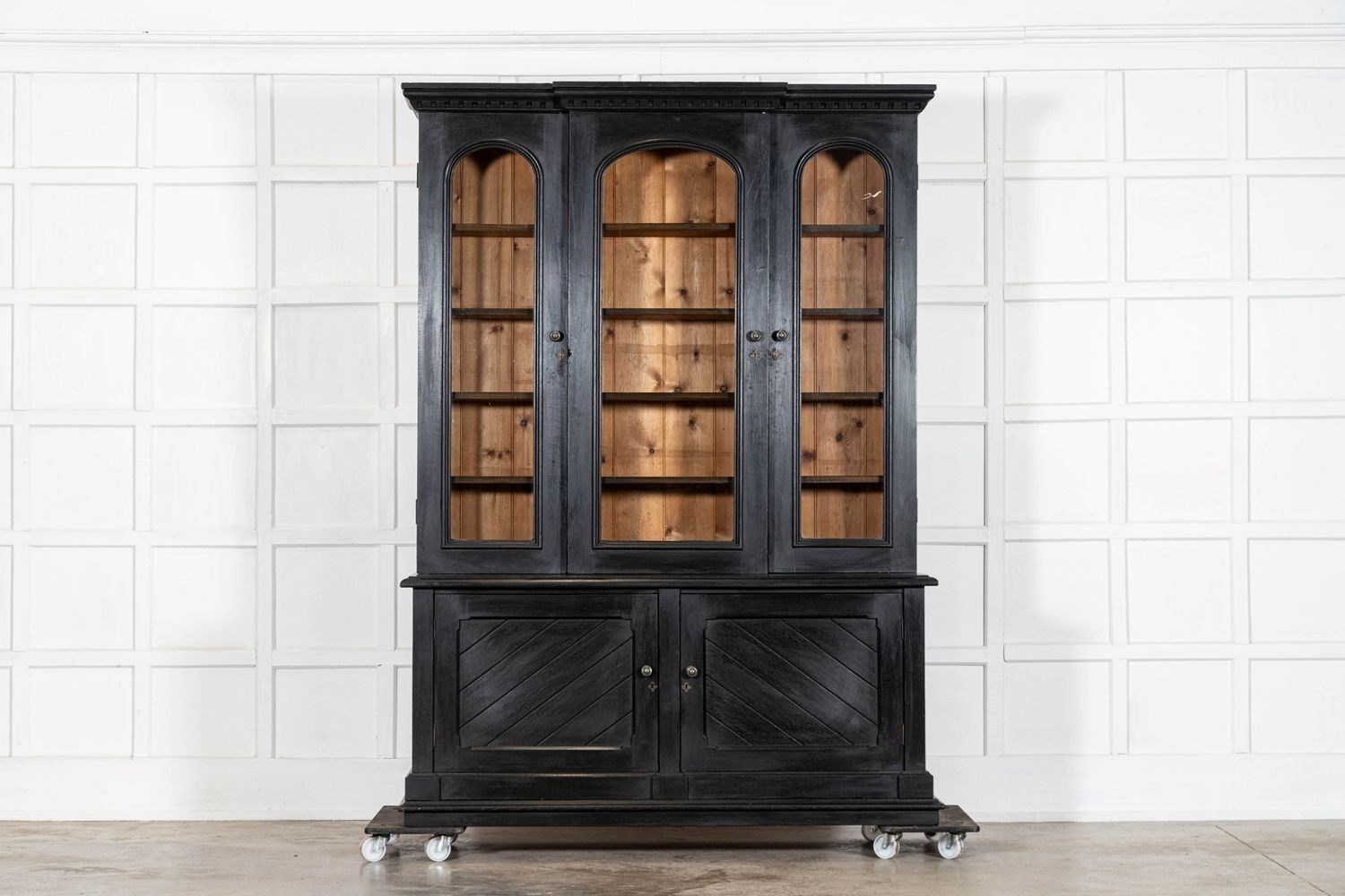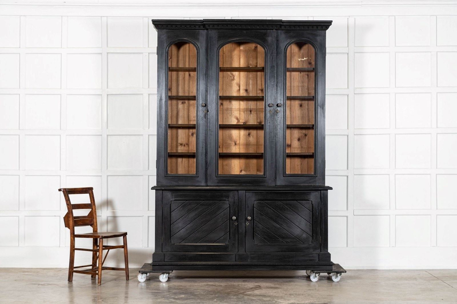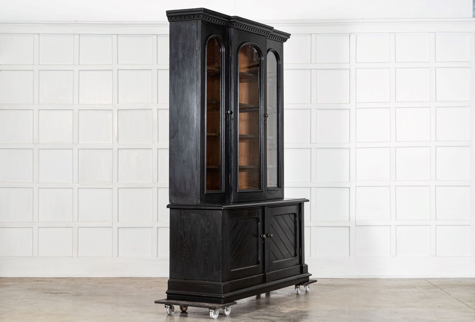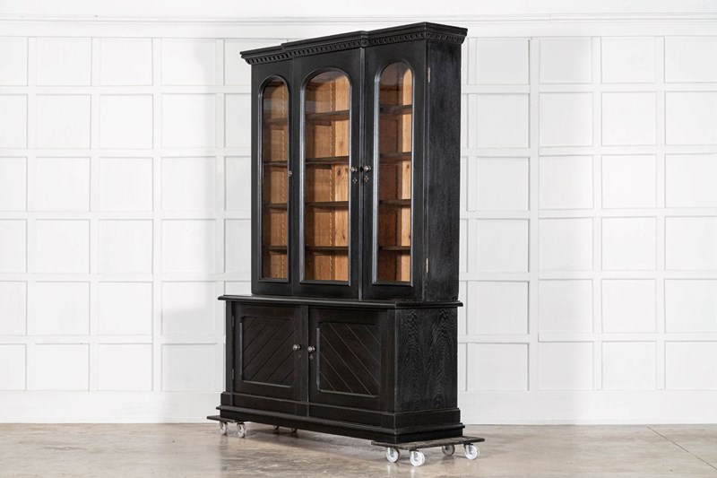 Large 19thC English Ebonised Oak Glazed Bookcase