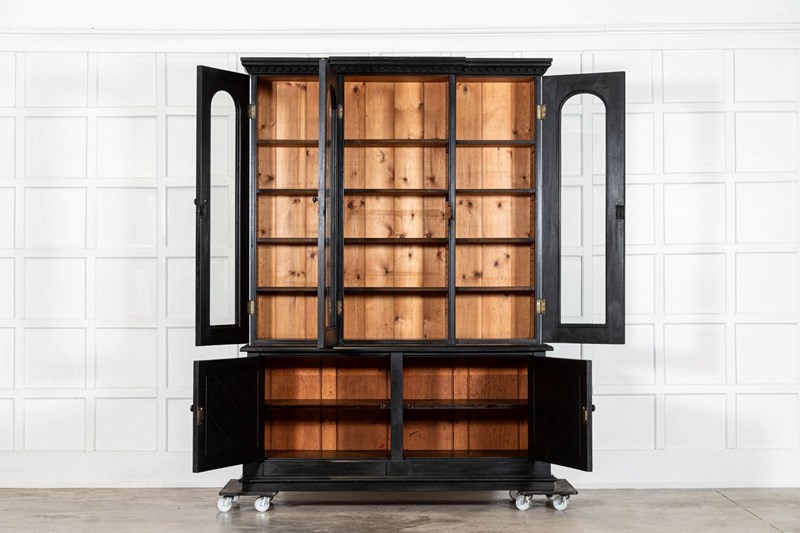 Large 19Thc English Ebonised Oak Glazed Bookcase