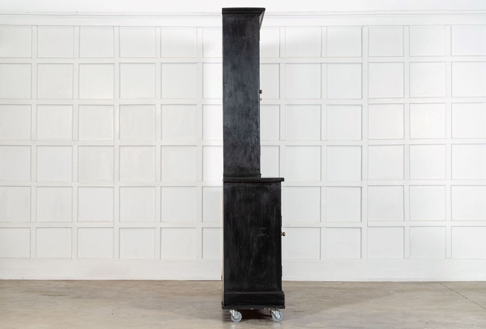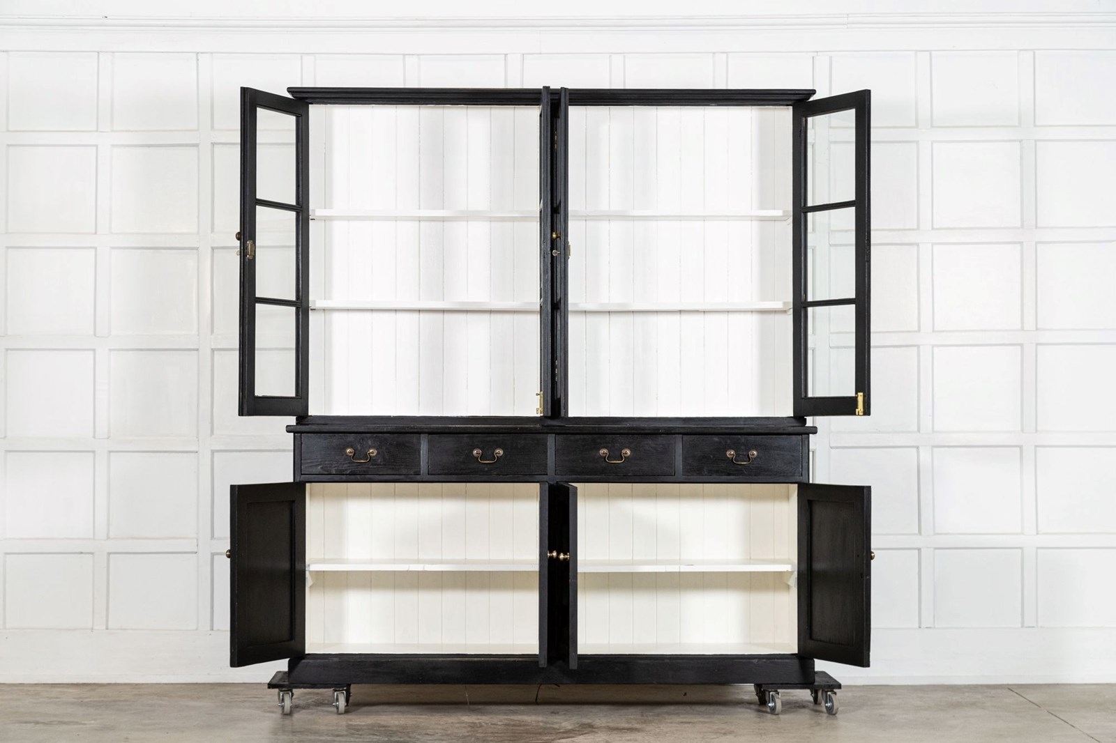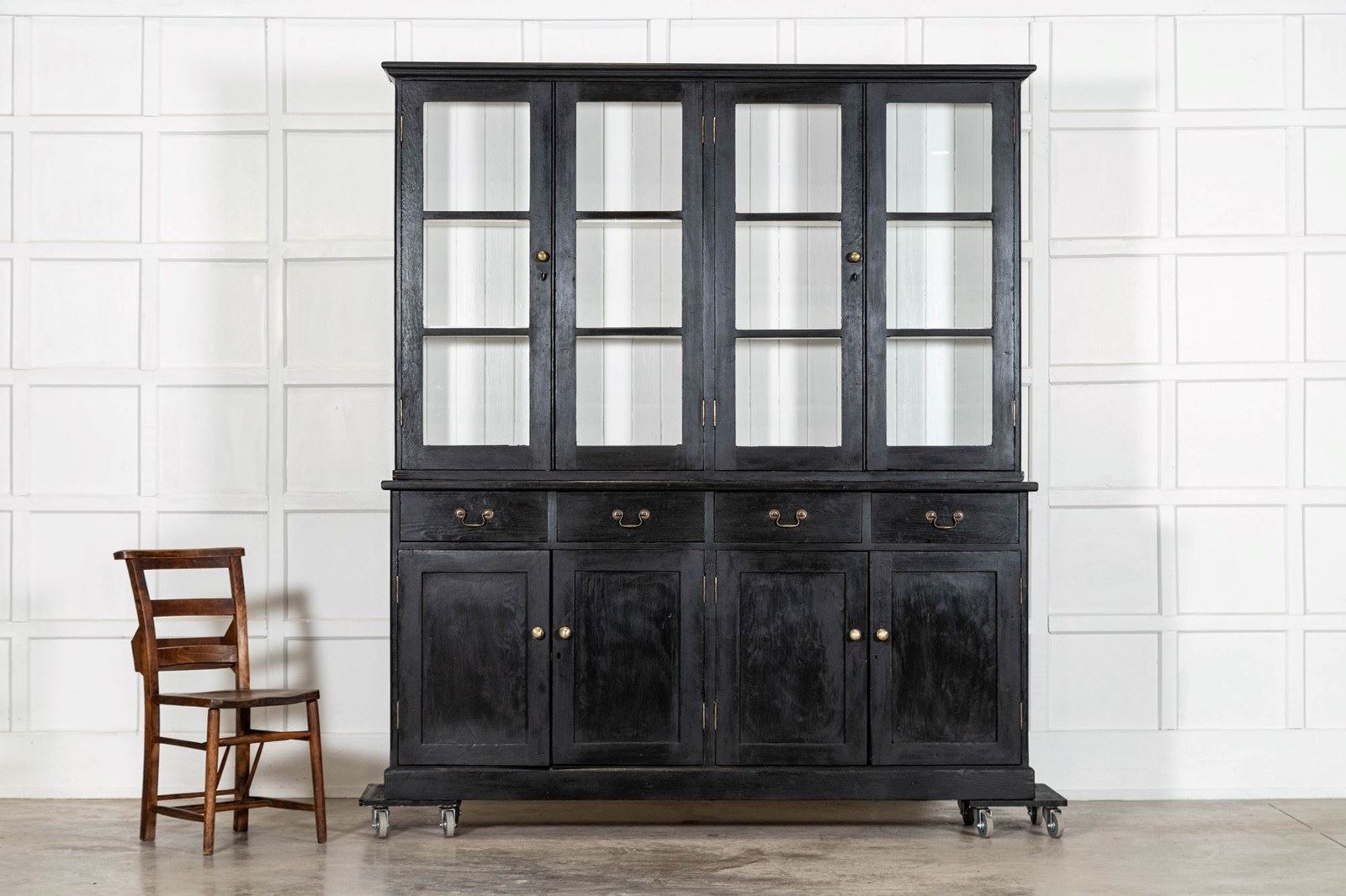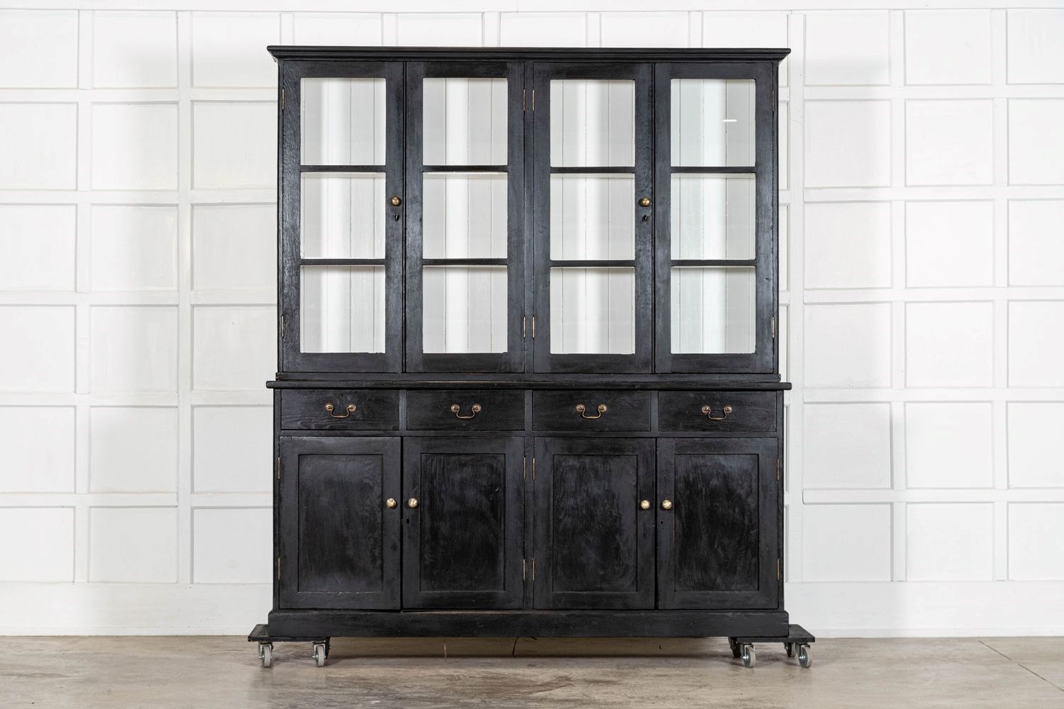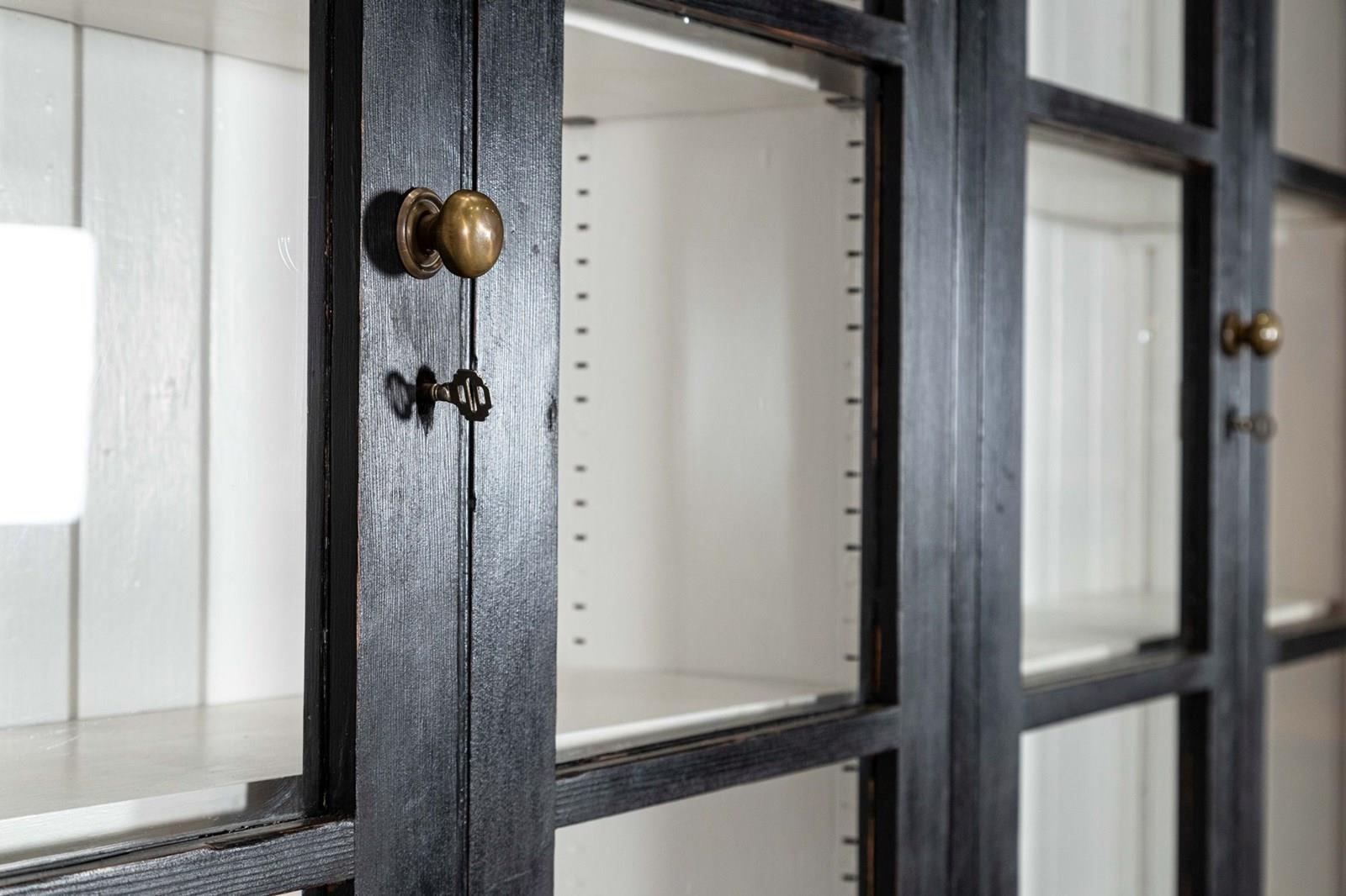 Large 19thC English Ebonised Pine Glazed Dresser