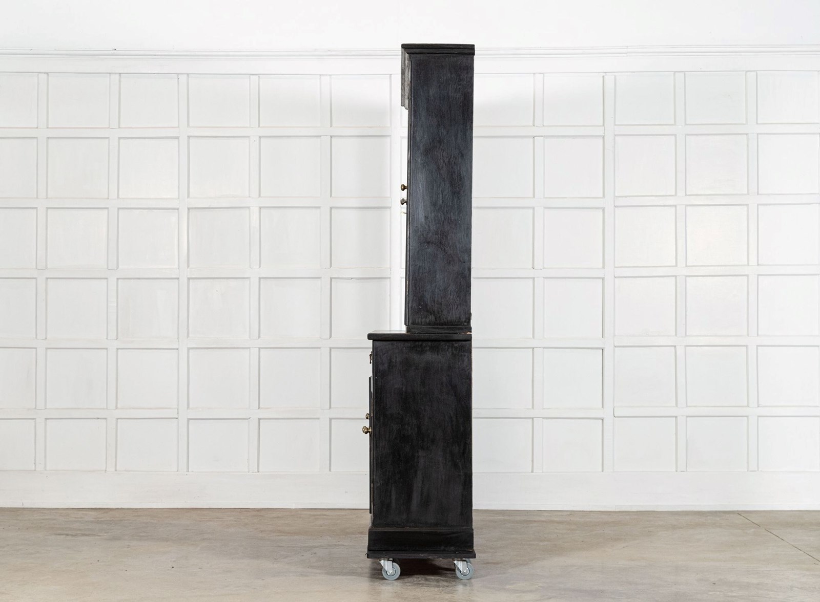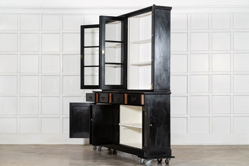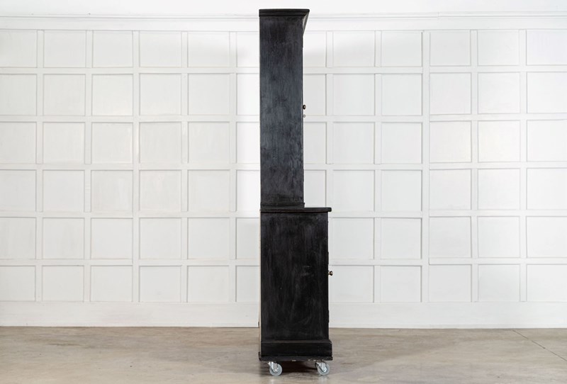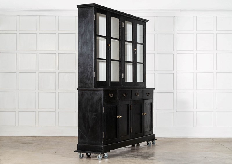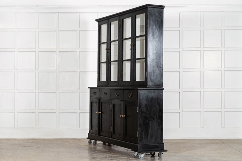 Large 19Thc English Ebonised Pine Glazed Dresser
