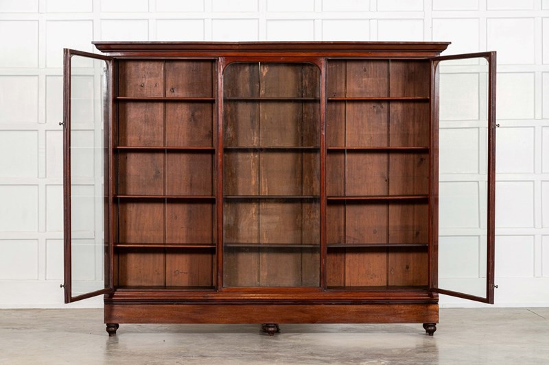 Large 19Thc English Mahogany Glazed Display Bookcase Cabinet