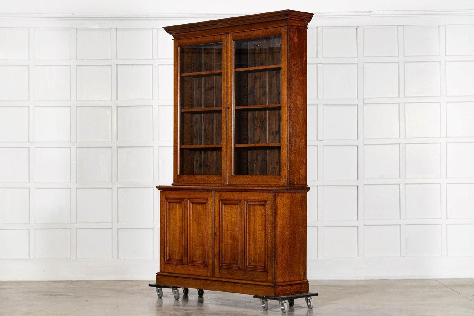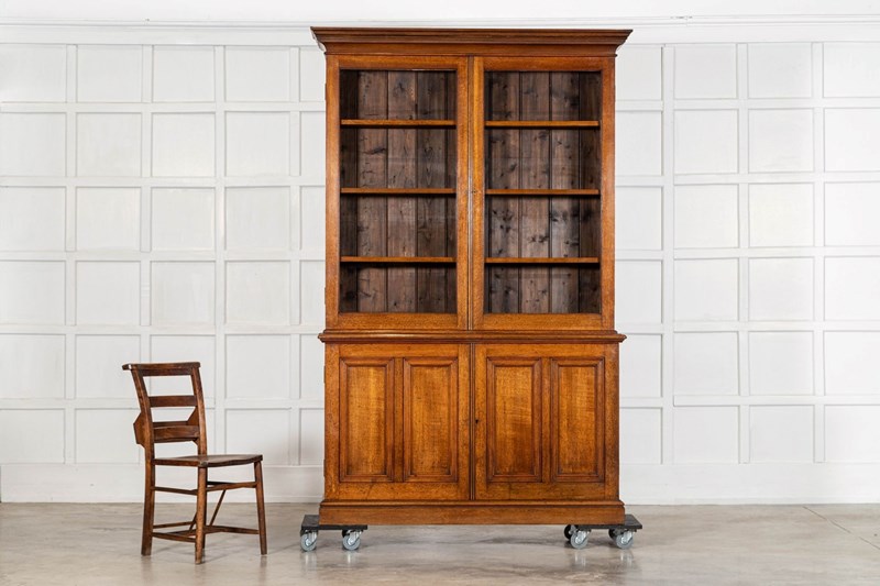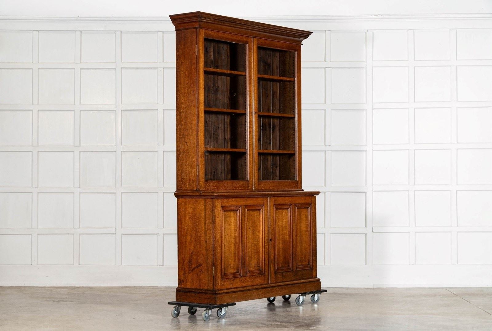 Large 19thC English Oak Glazed Bookcase Cabinet