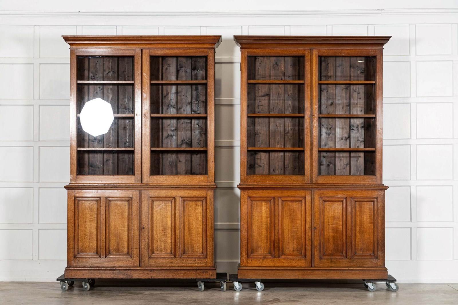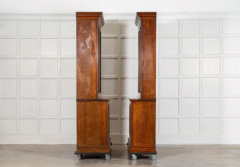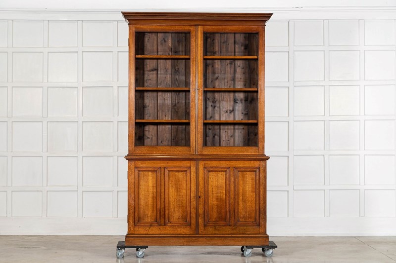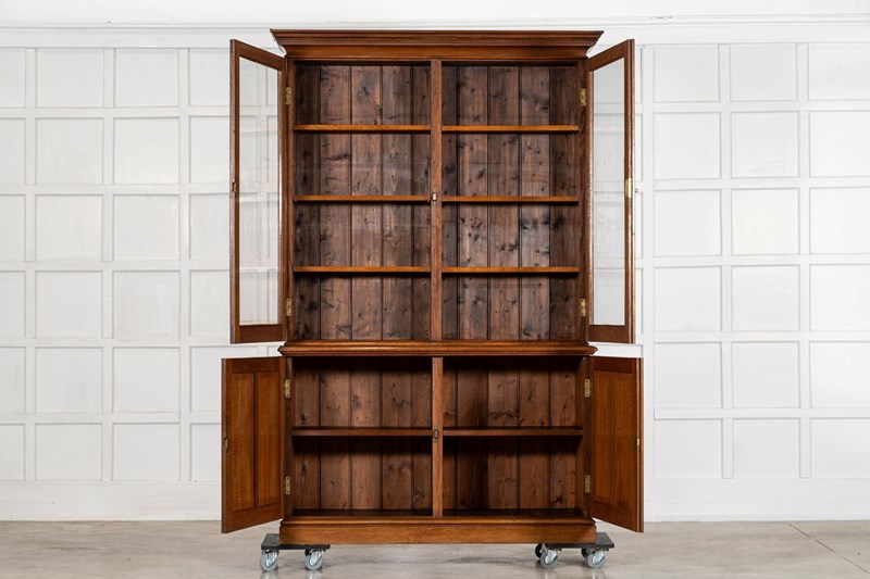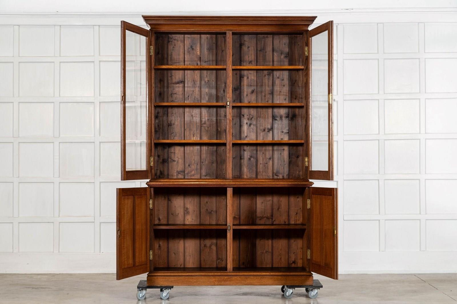 Large 19thC English Oak Glazed Bookcase Cabinet