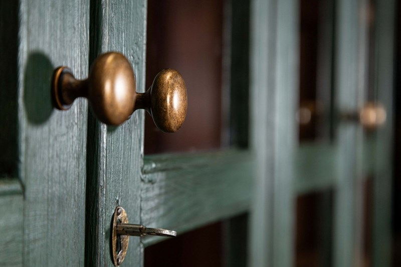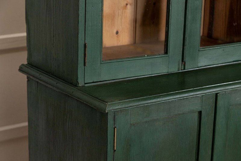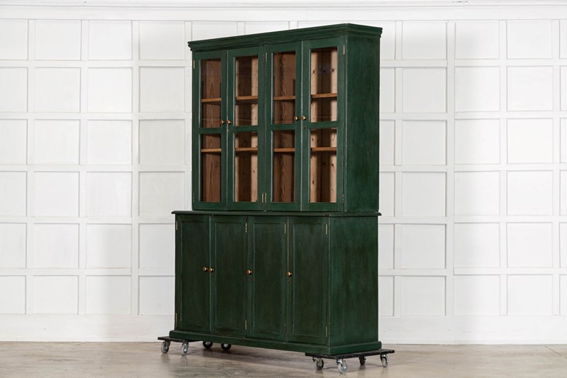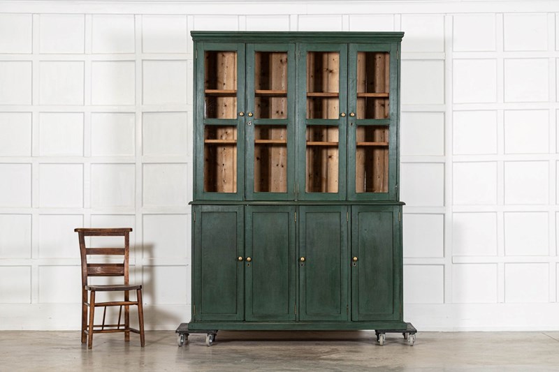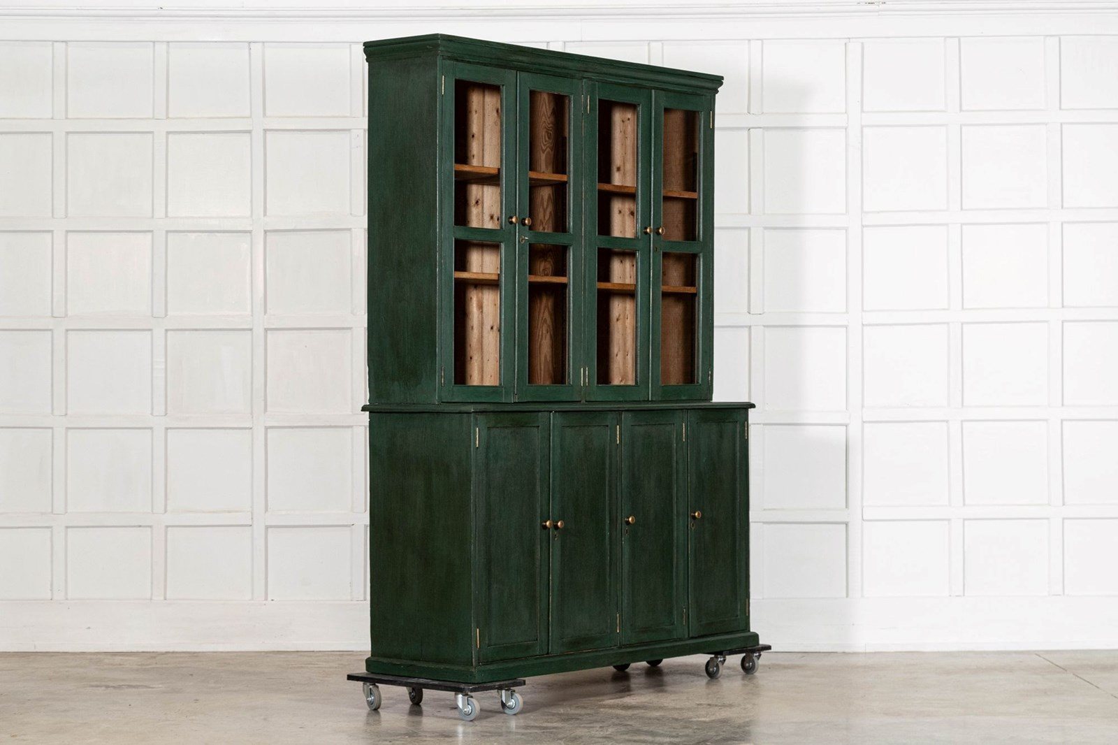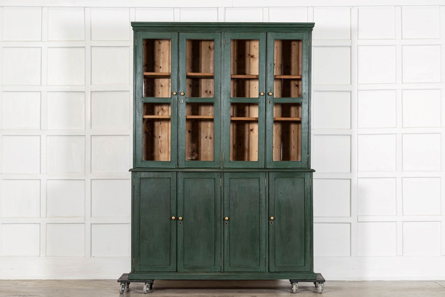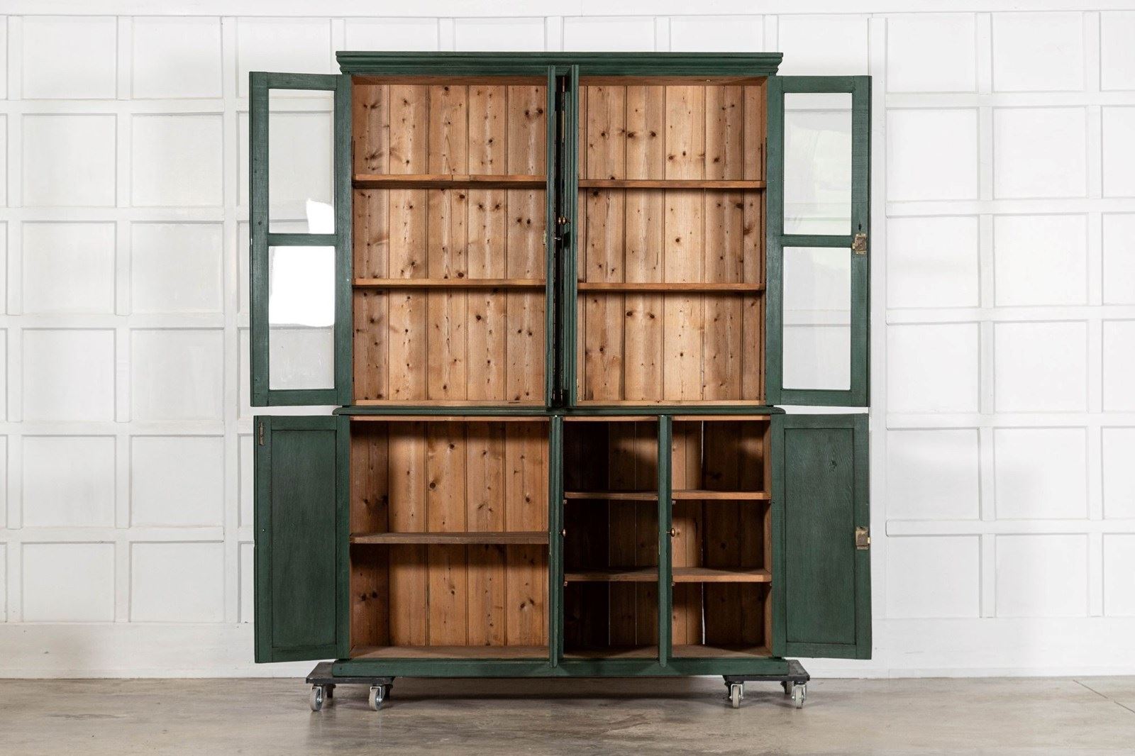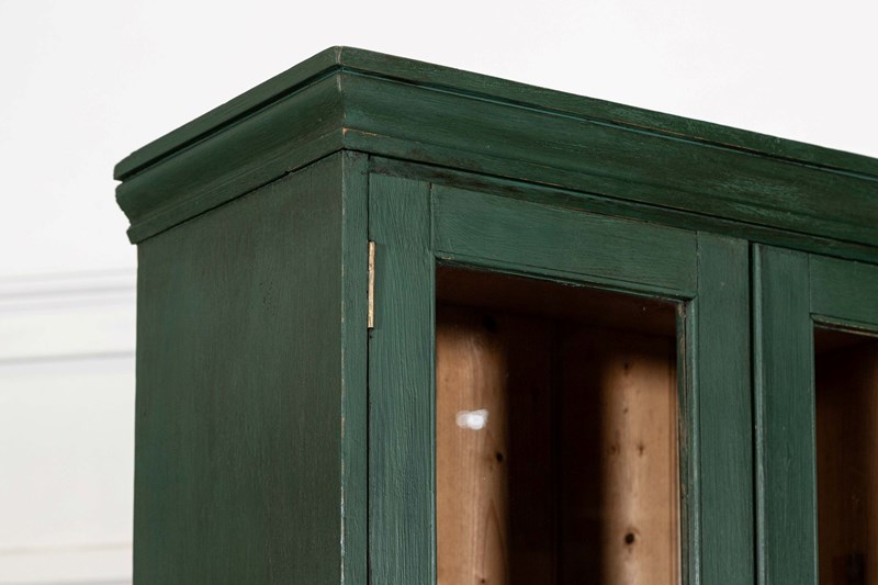 Large 19thC English Painted Pine Glazed Housekeepers Cabinet