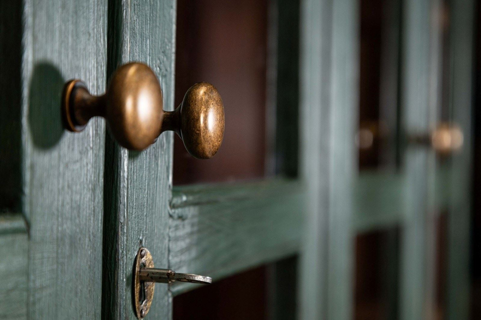 Large 19Thc English Painted Pine Glazed Housekeepers Cabinet
