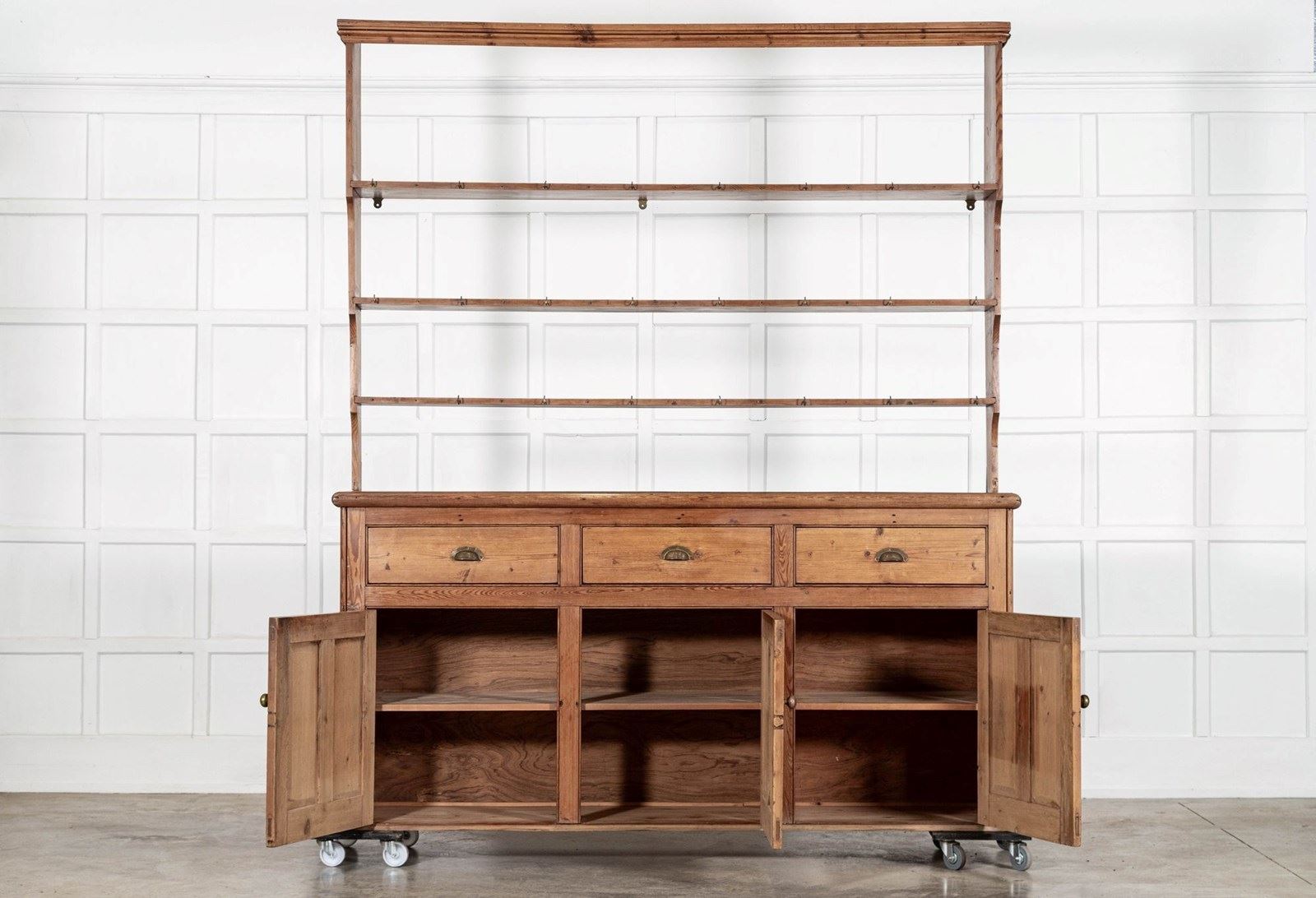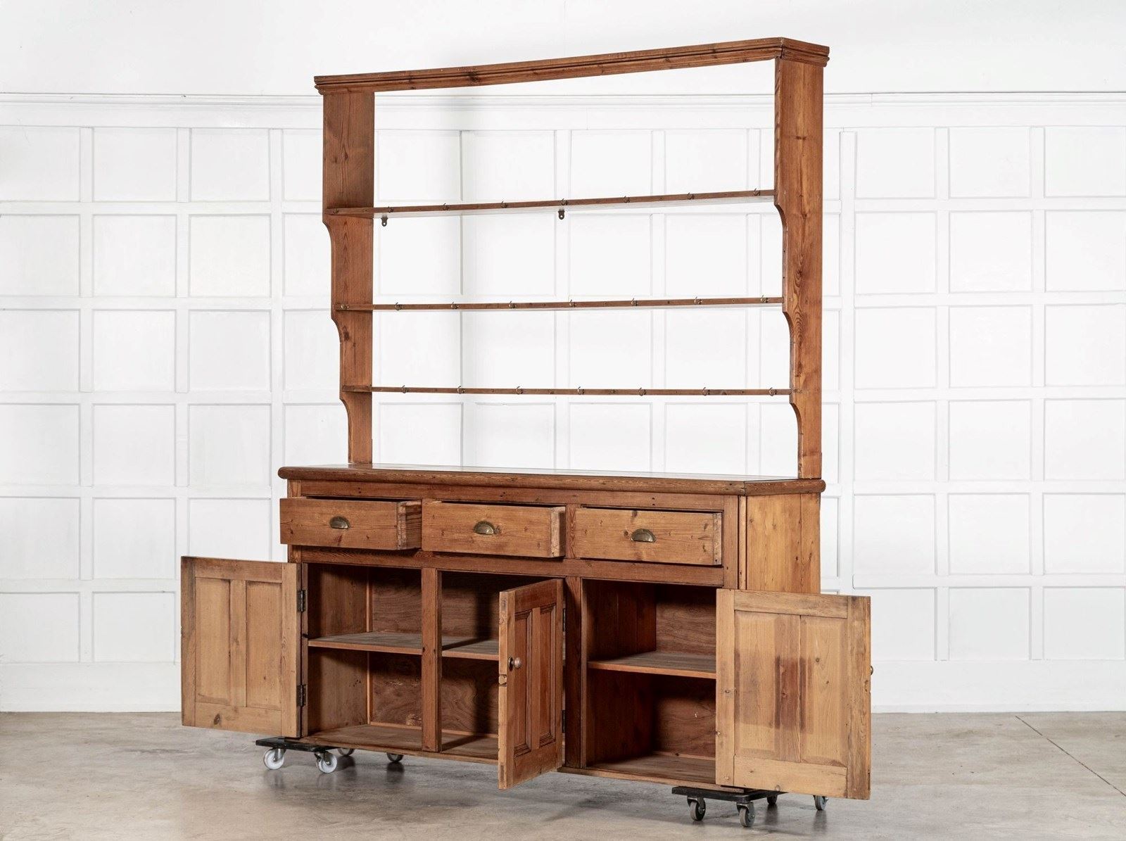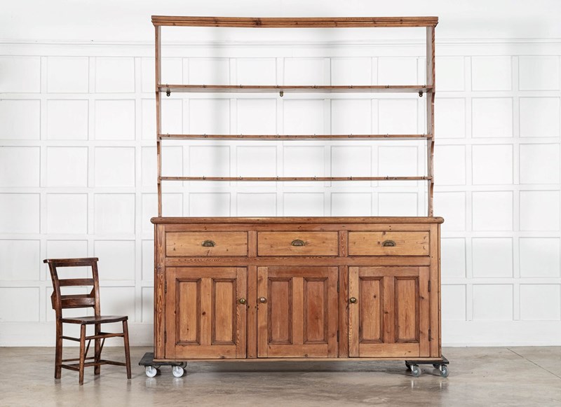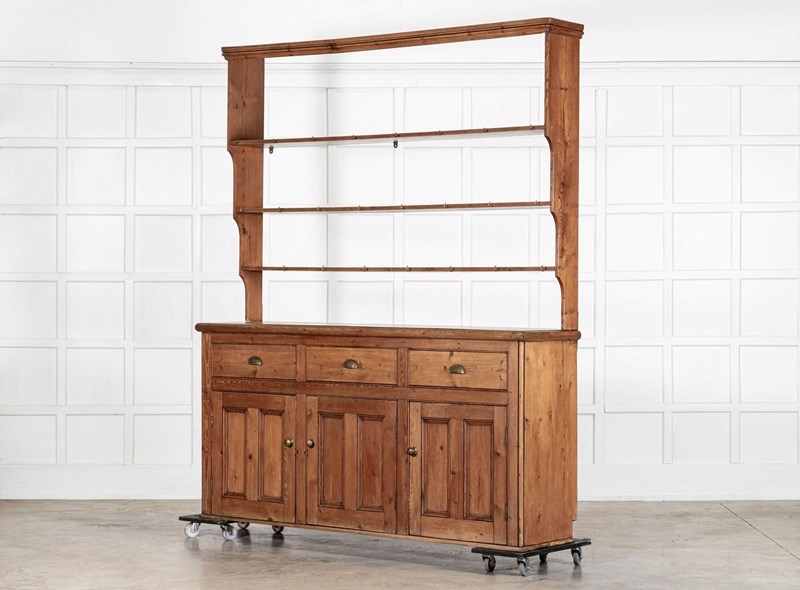 Large 19thC English Pine Waterfall Dresser