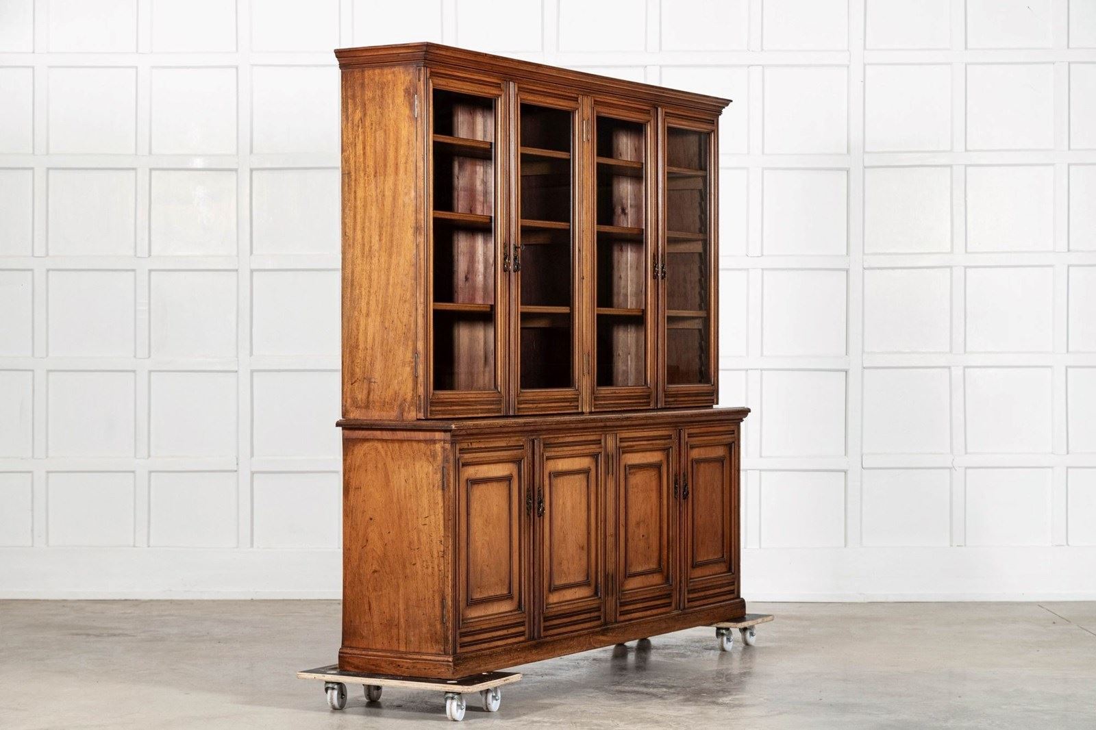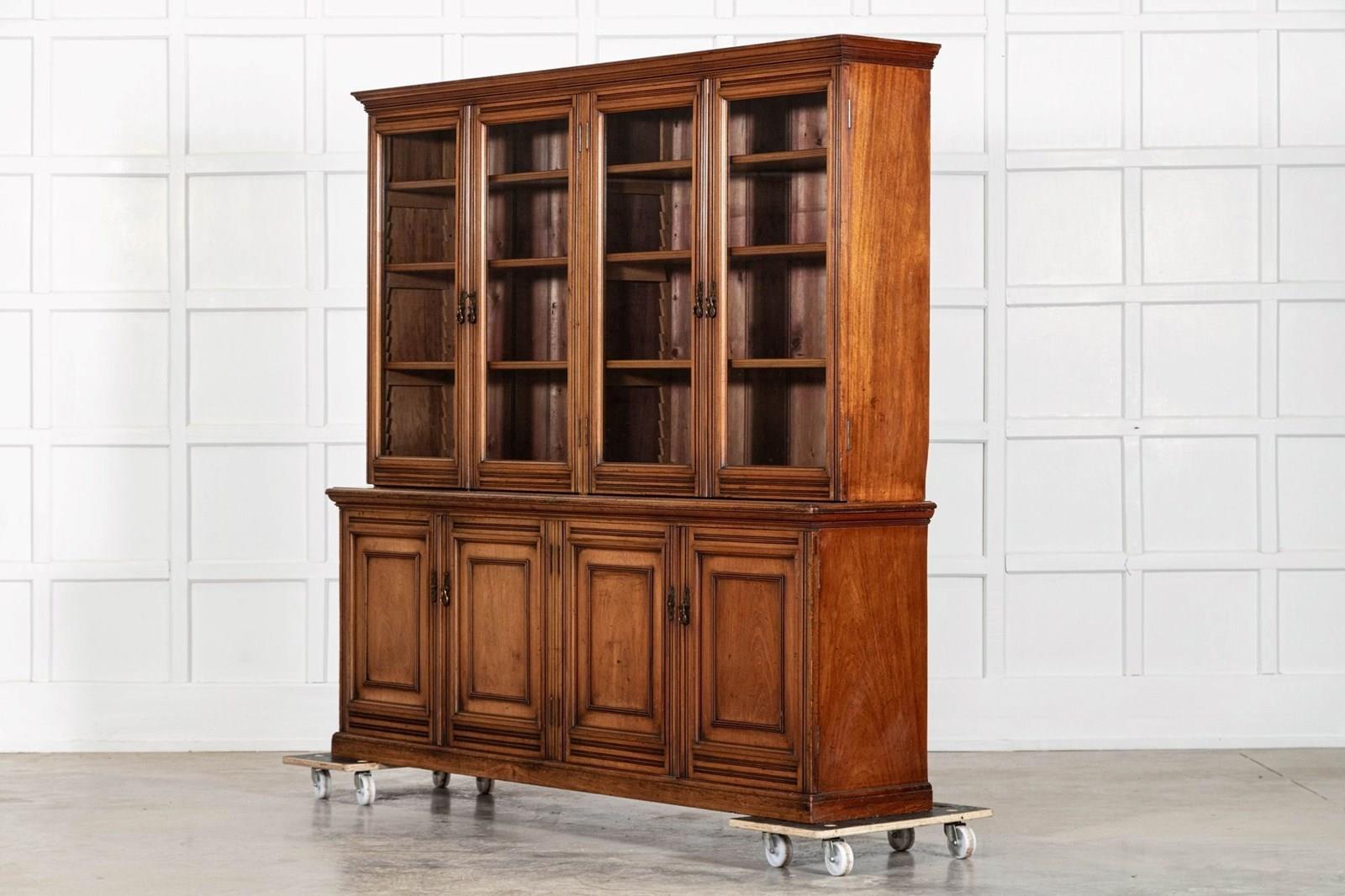 Large 19Thc English Walnut Glazed Bookcase