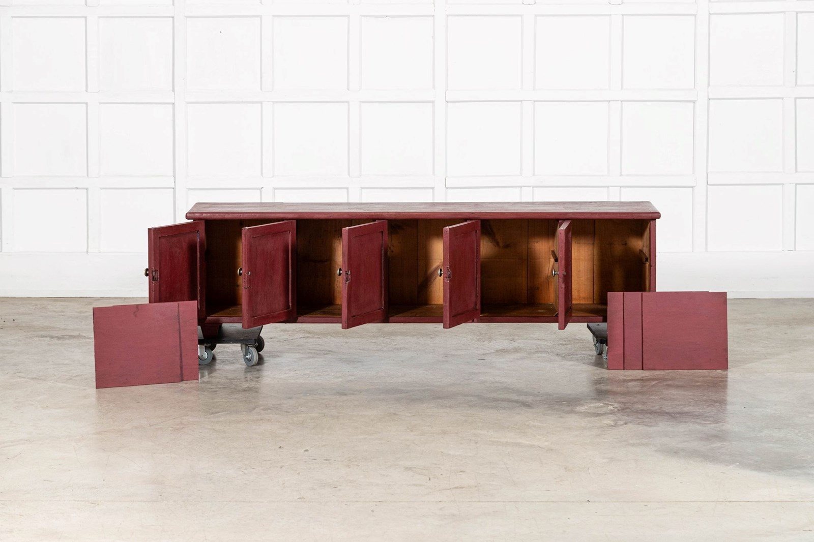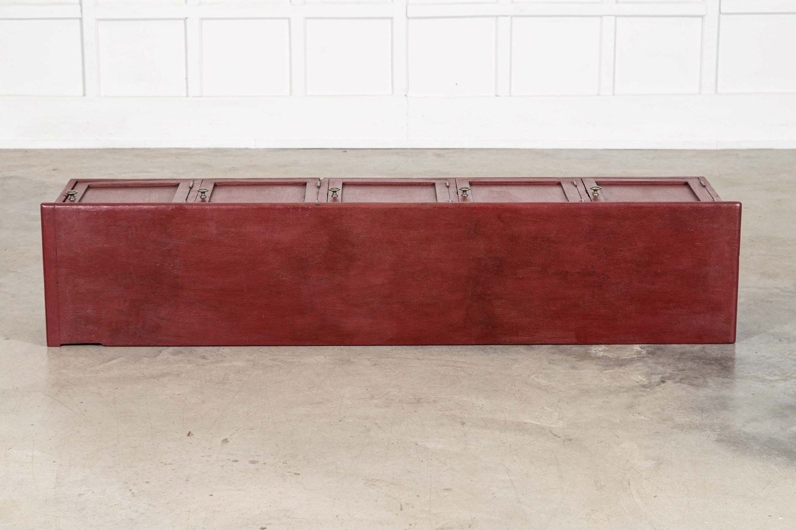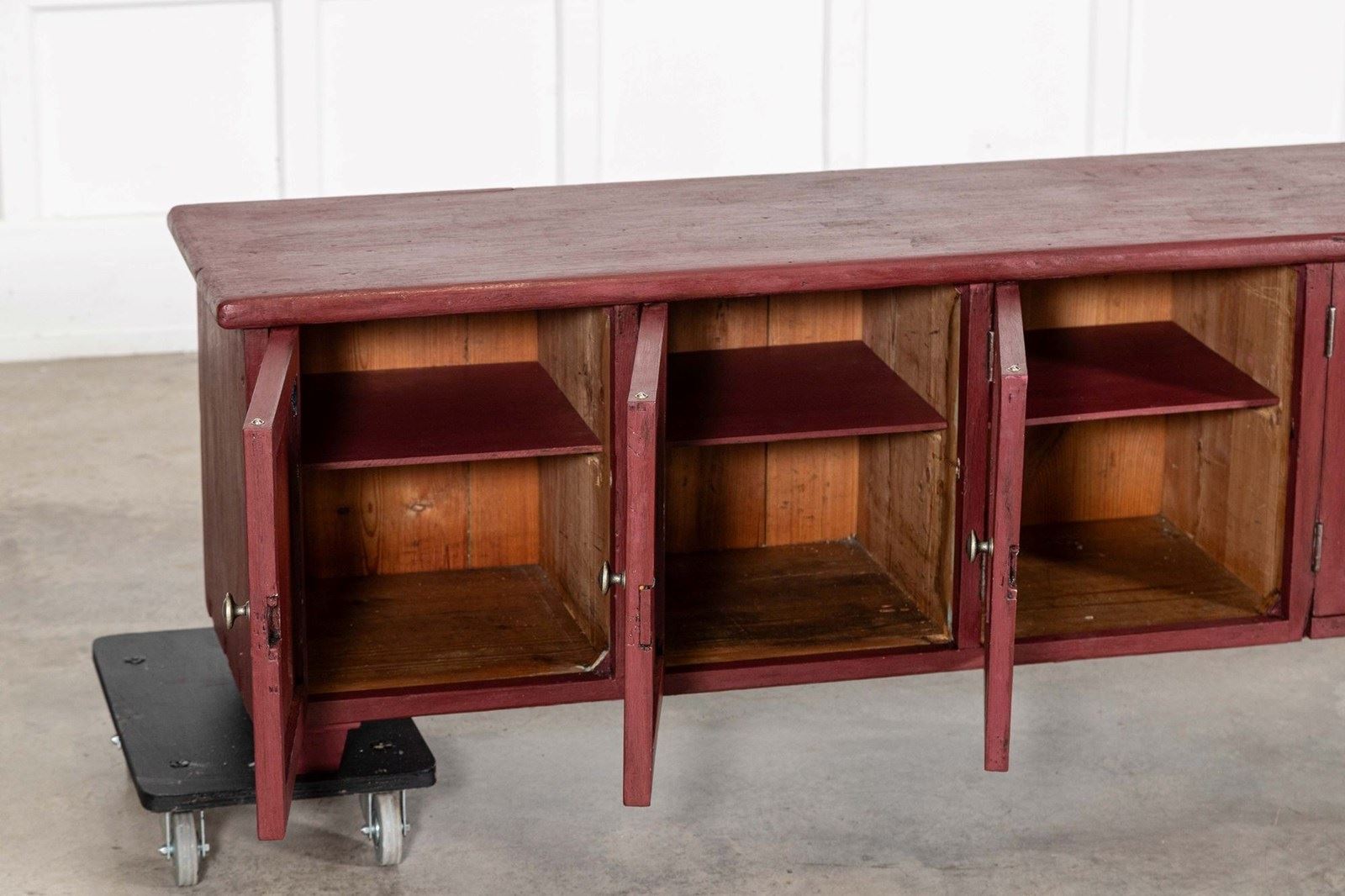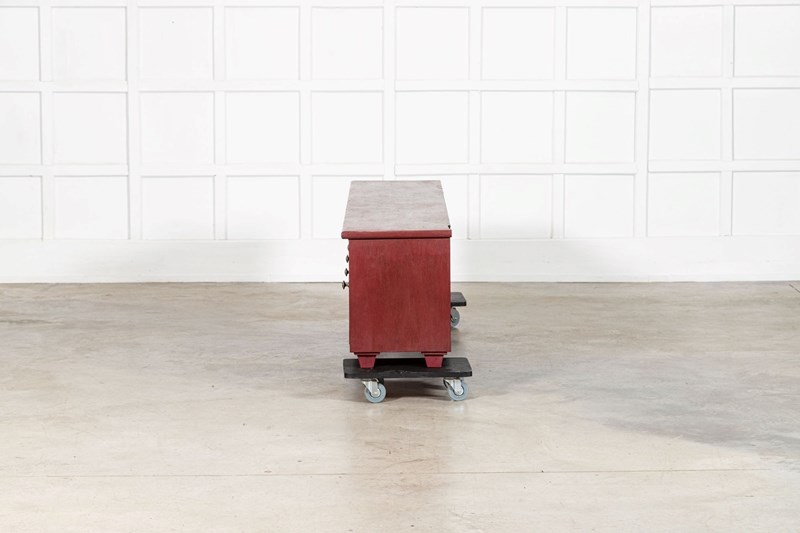 Large English 19Thc Painted Pine Locker Cabinet /Bench