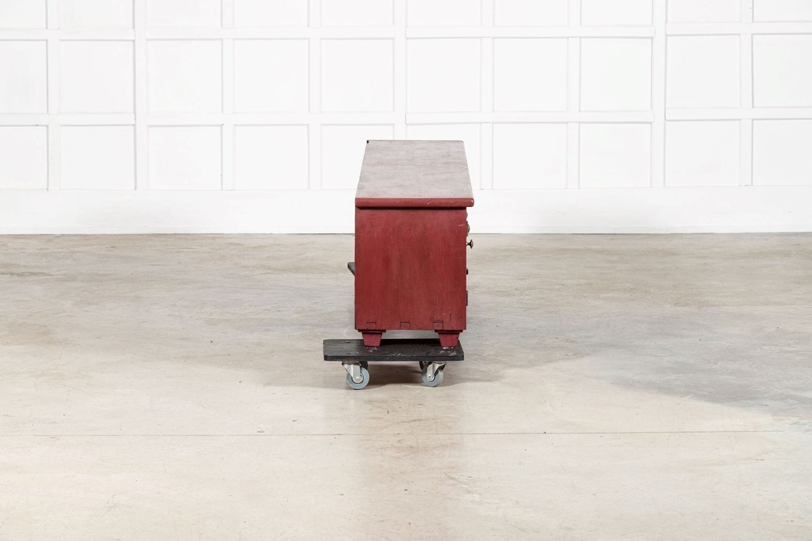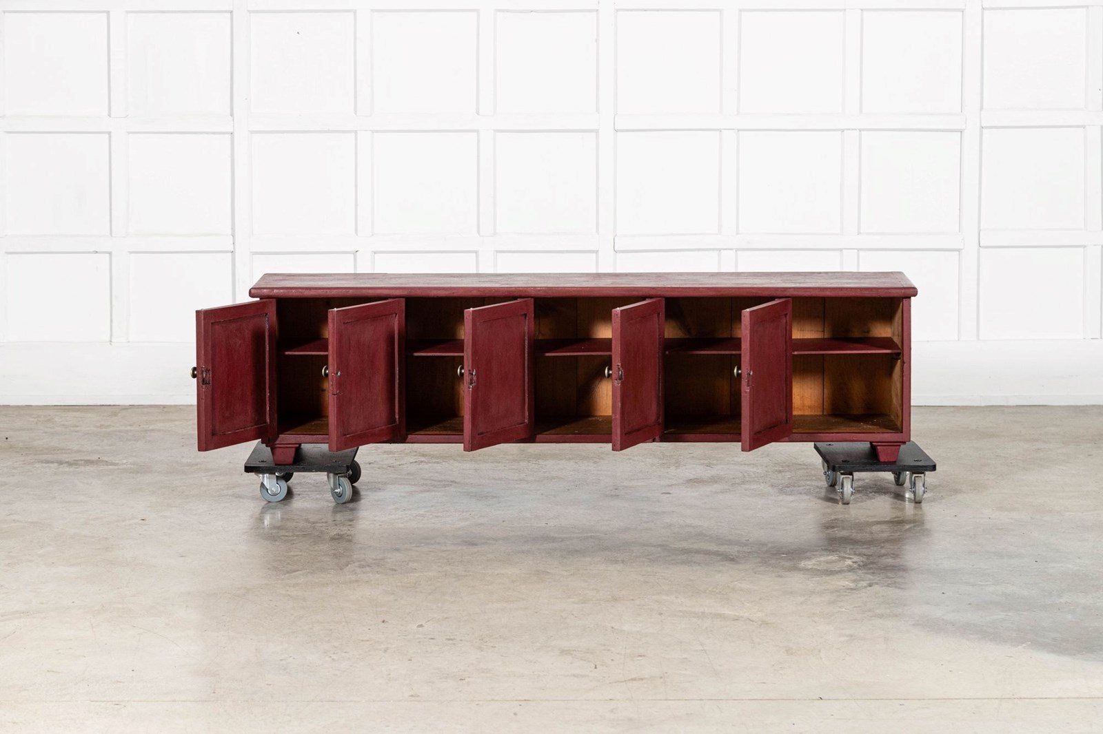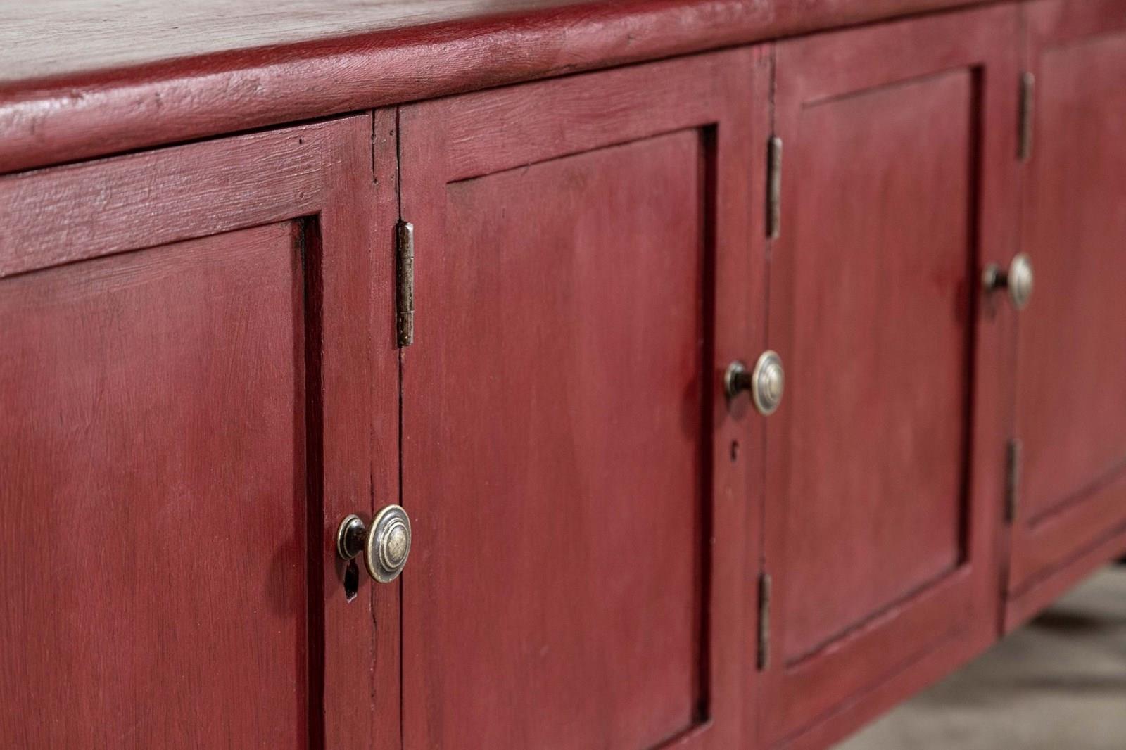 Large English 19Thc Painted Pine Locker Cabinet /Bench