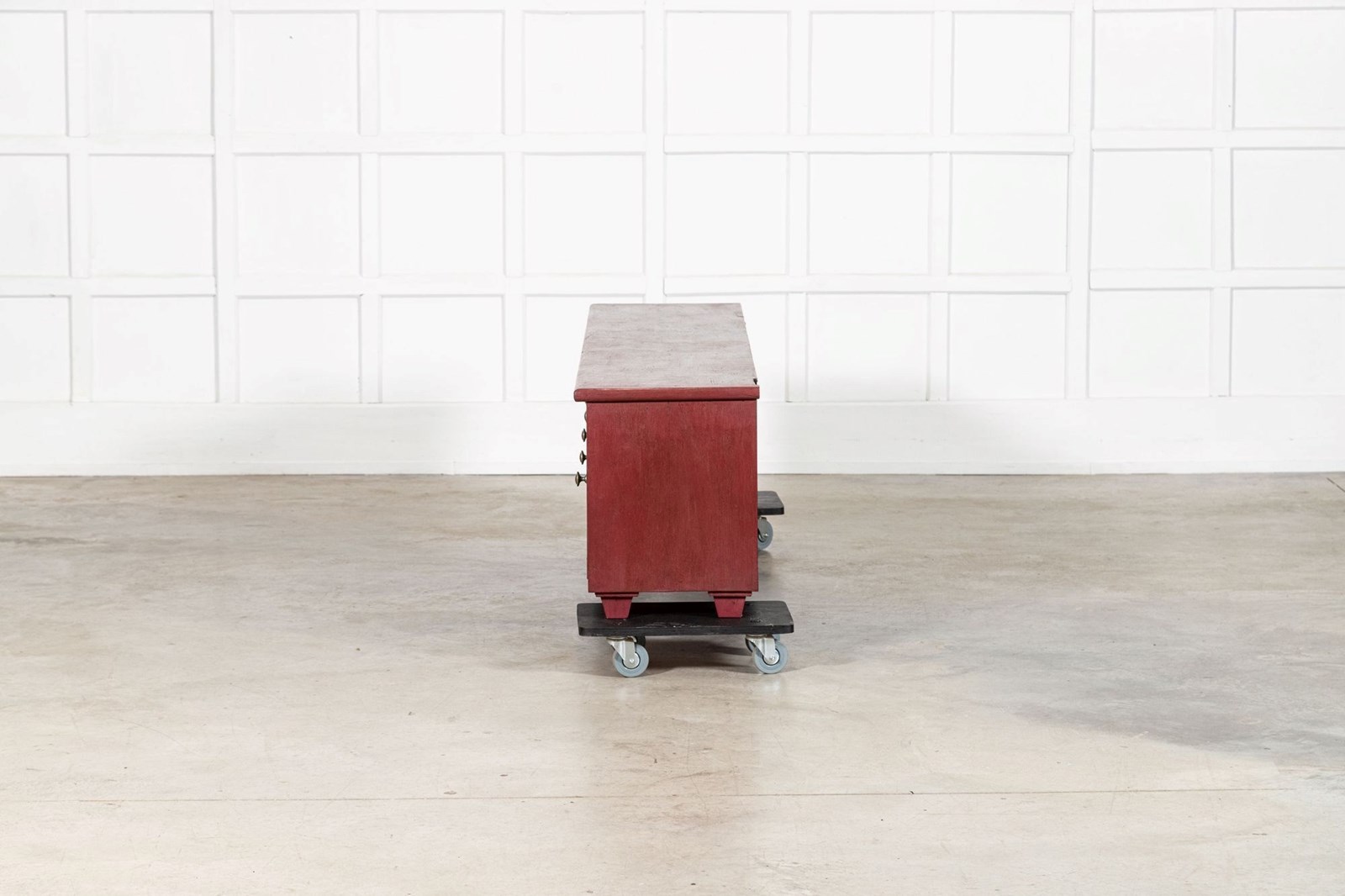 Large English 19thC Painted Pine Locker Cabinet / Bench