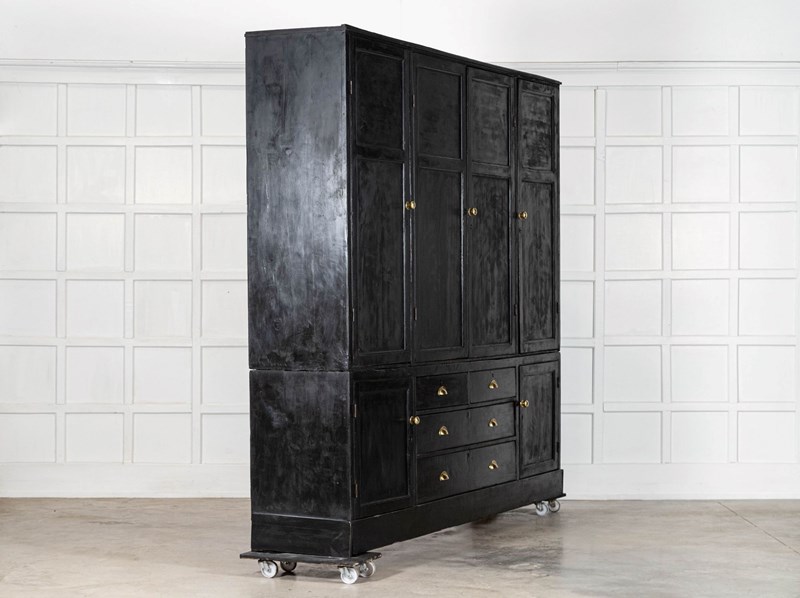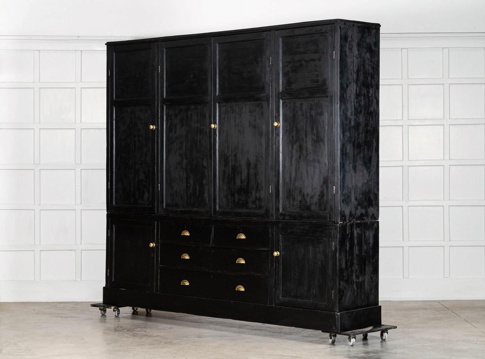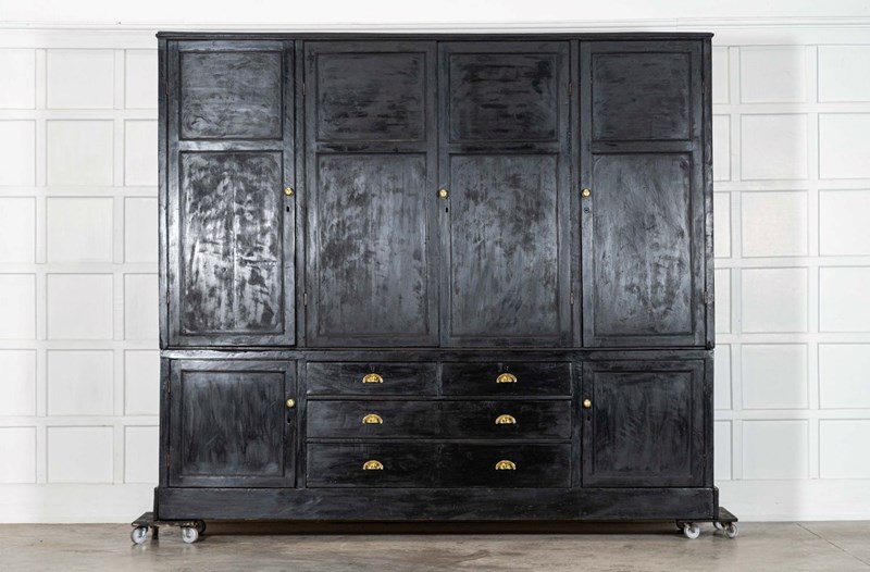 Monumental 19thC English Ebonised Pine Housekeepers Cupboard