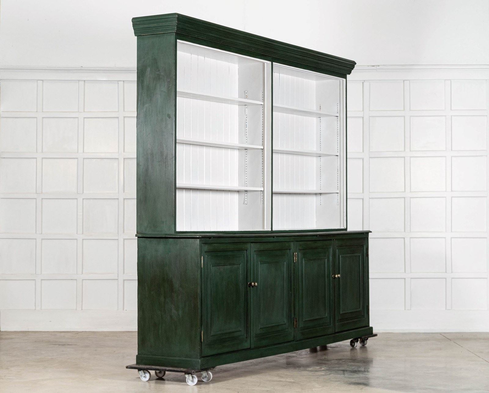 Monumental 19thC English Painted Pine Bookcase / Dresser